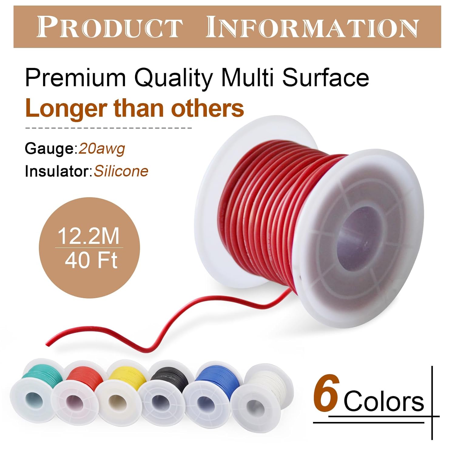 0.5mm² 20 AWG Silicone Electronic Wire Kit 240Ft In Total (6 Colors 12.2Meter/40Feet Each), Tinned Copper Wire Insulated Wires – 20 Gauge Stranded Hook Up Wires Kit For DIY