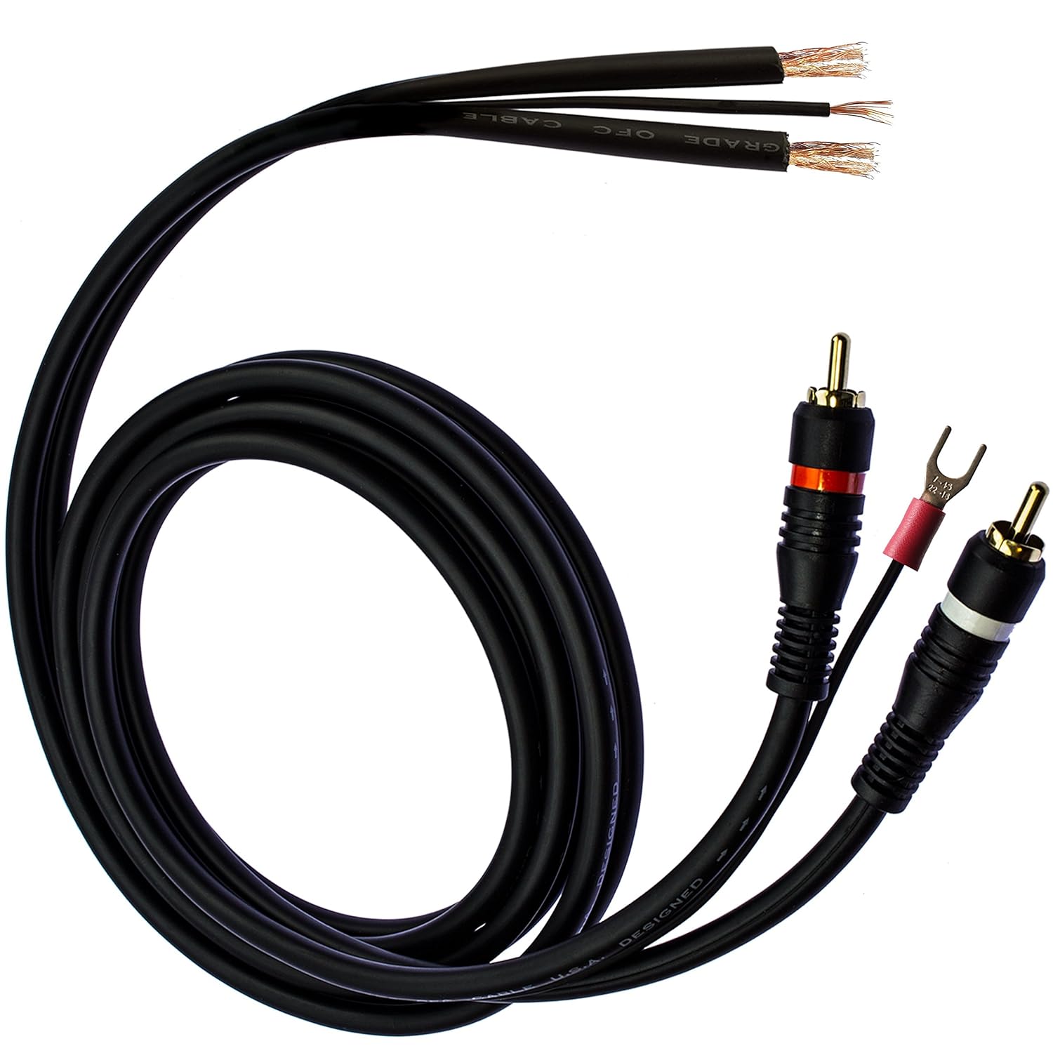 1.5m Twin Red + White Moulded RCA Plugs to Bare Wire Ends for Vinyl Player Shielded OFC + Earth Conductors stops Hum Humming Buzz Buzzing Feedback Noise from Amp – HiFi speakers (1.5 Metre)