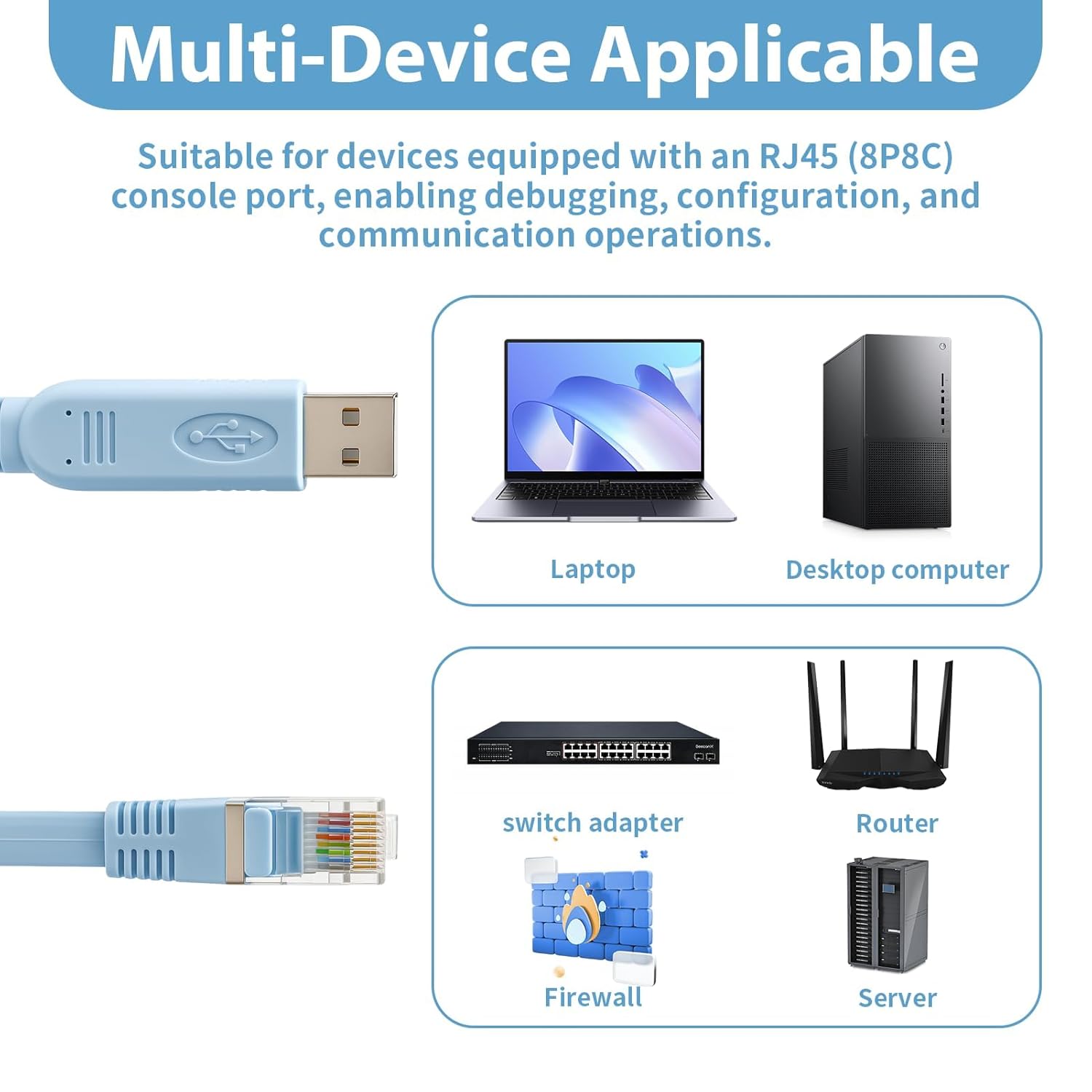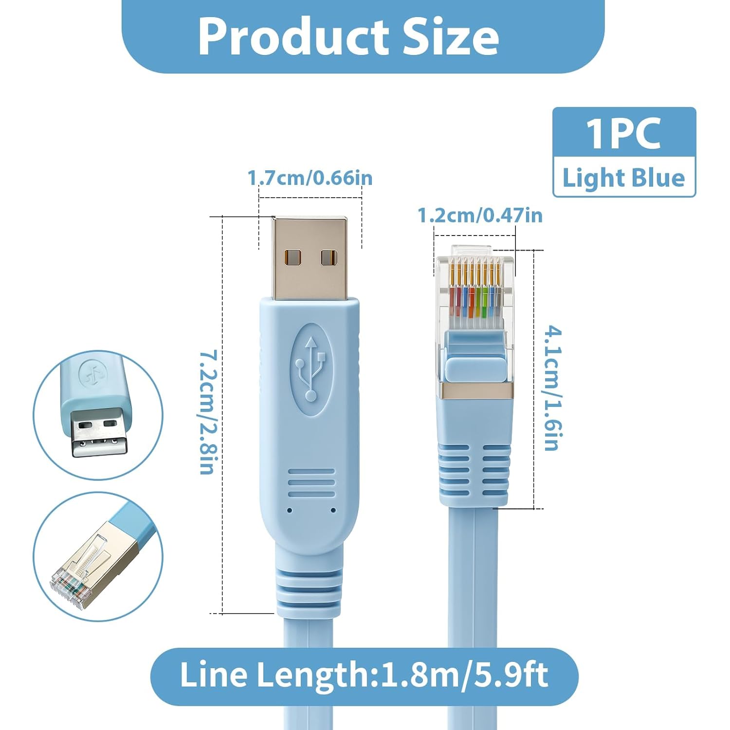 1.8m USB to Ethernet Cable, USB 2.0 to Console Cable RJ45 Adapter RS232 Router Switch Console Network Patch Cord Computer Accessories for Cisco, Windows, Vista, MAC, Linux