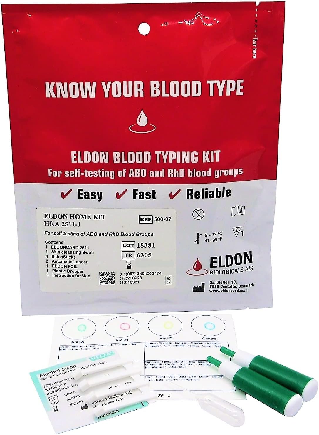 1 x Blood Type Test Kit – Group A, B, RHD Testing – Home EldonCard Tests