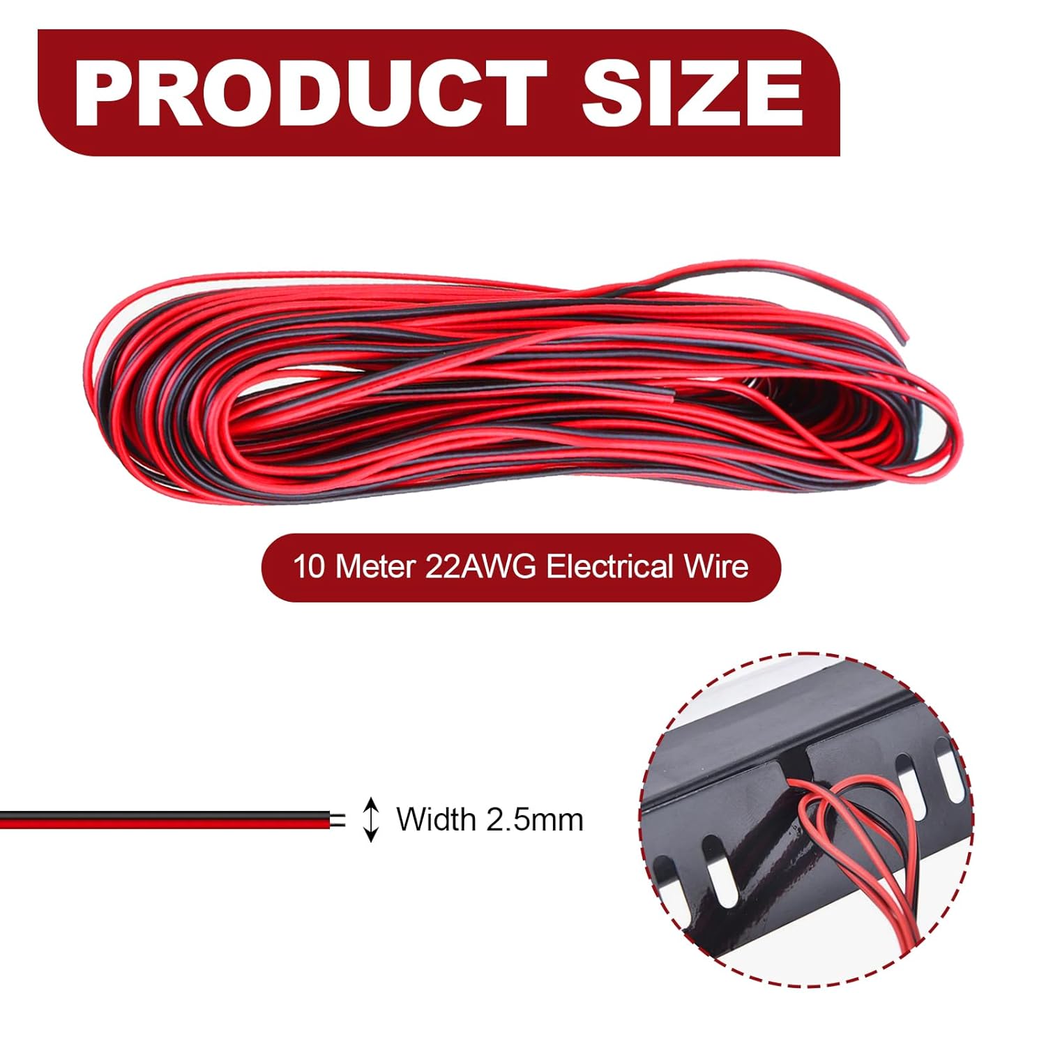 10 Meter 22AWG Electrical Wire,22AWG Electrical Wire 2 Core Black Red Wire Cable,High Temperature Wear-Resistant Oxidation Flexible Extension Twin Earth Cable for Car LED Strip Light(10 Mete)