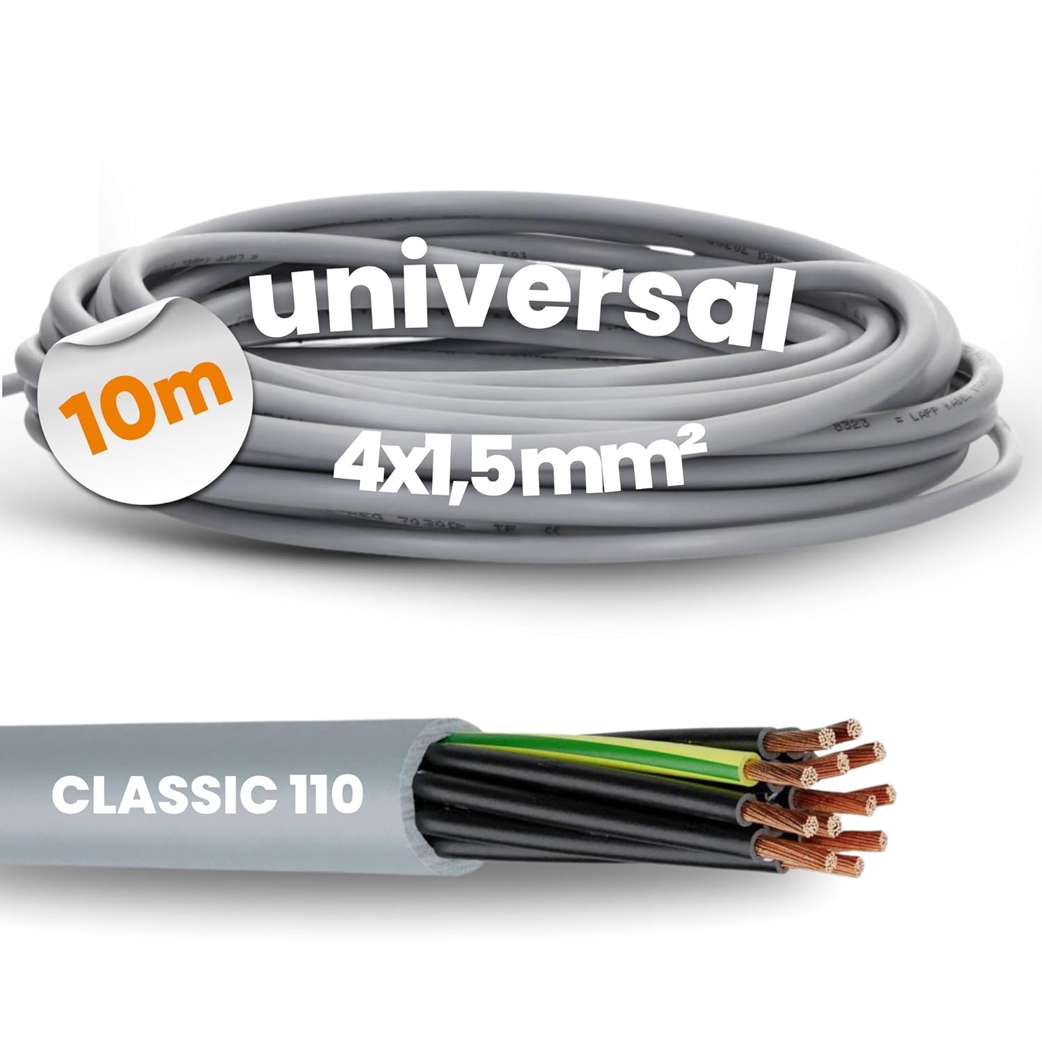 10 metres Lapp 1119304 Ölflex Classic 110 PVC control cable 4×1.5 mm² with green/yellow protective conductor 4G1.5 mm² I Control cable 4 core I Cable 4 core