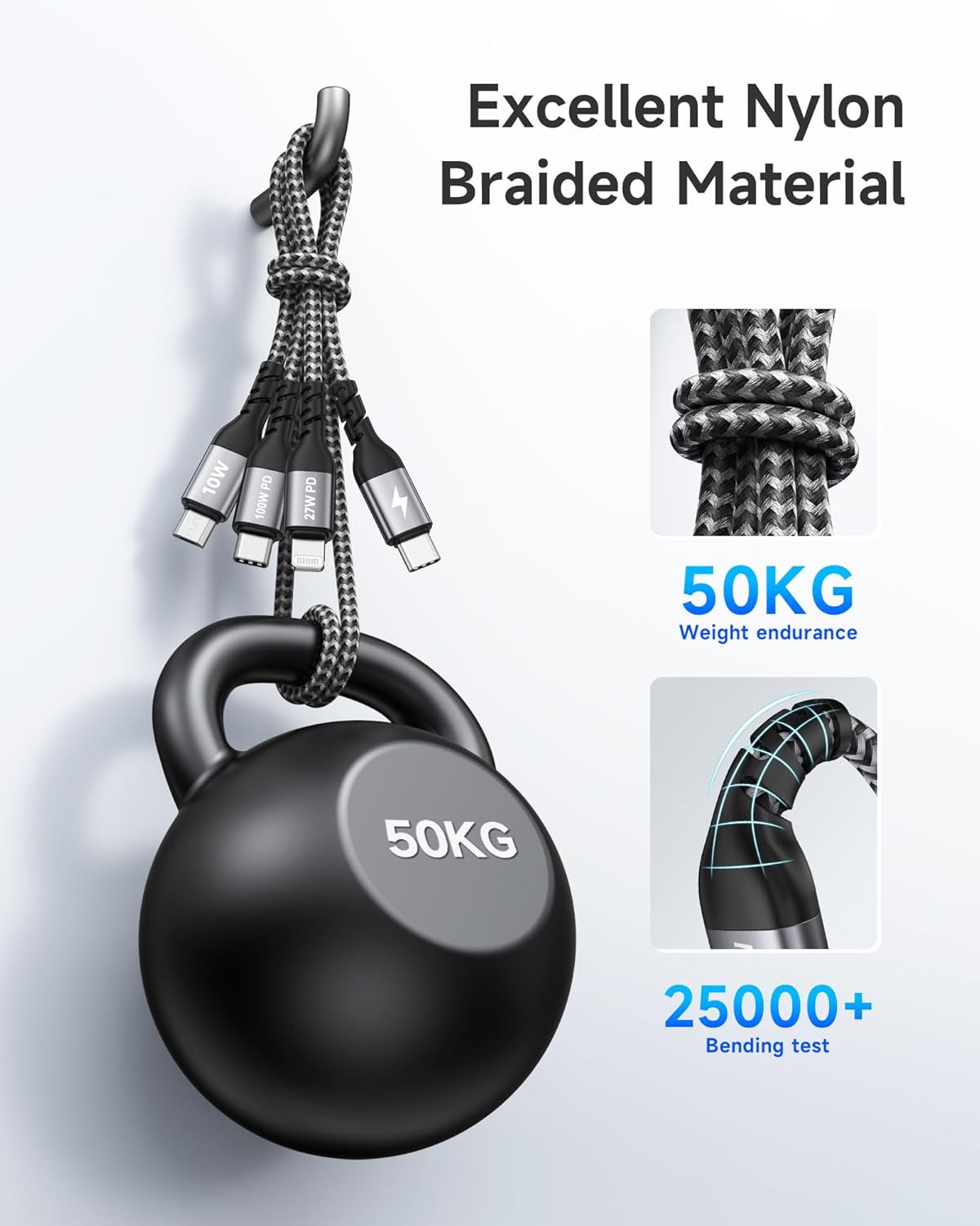 100W USB C Multi Charger Cable [1.2M] 3 in 1 Charging Cable Multi USB Charger Lead with USB C PD [100W]+Lightning[27W]+Micro[10W] for iPhone 15/14, Samsung S24, Huawei, MacBook, Pad Pro, LG