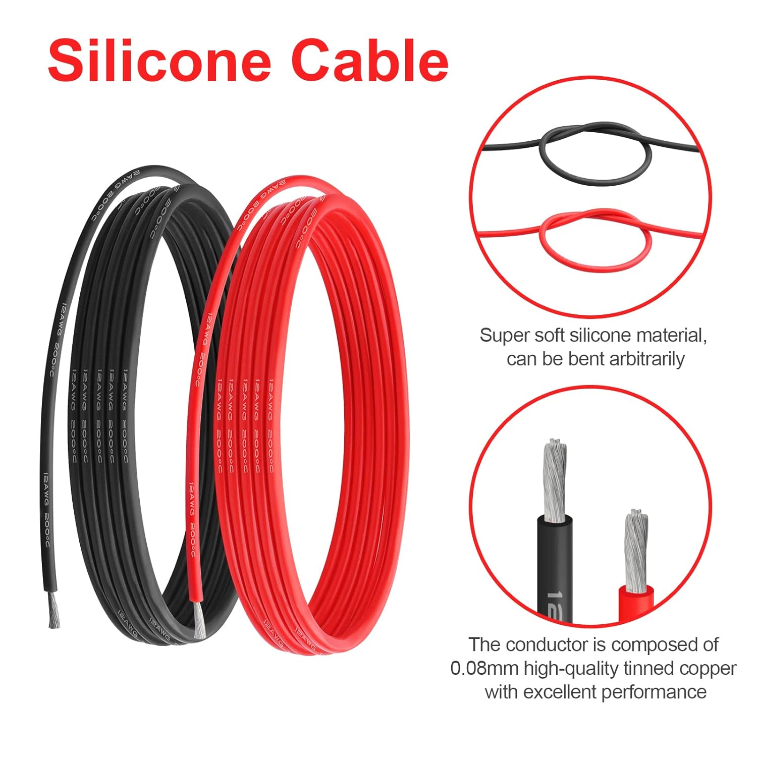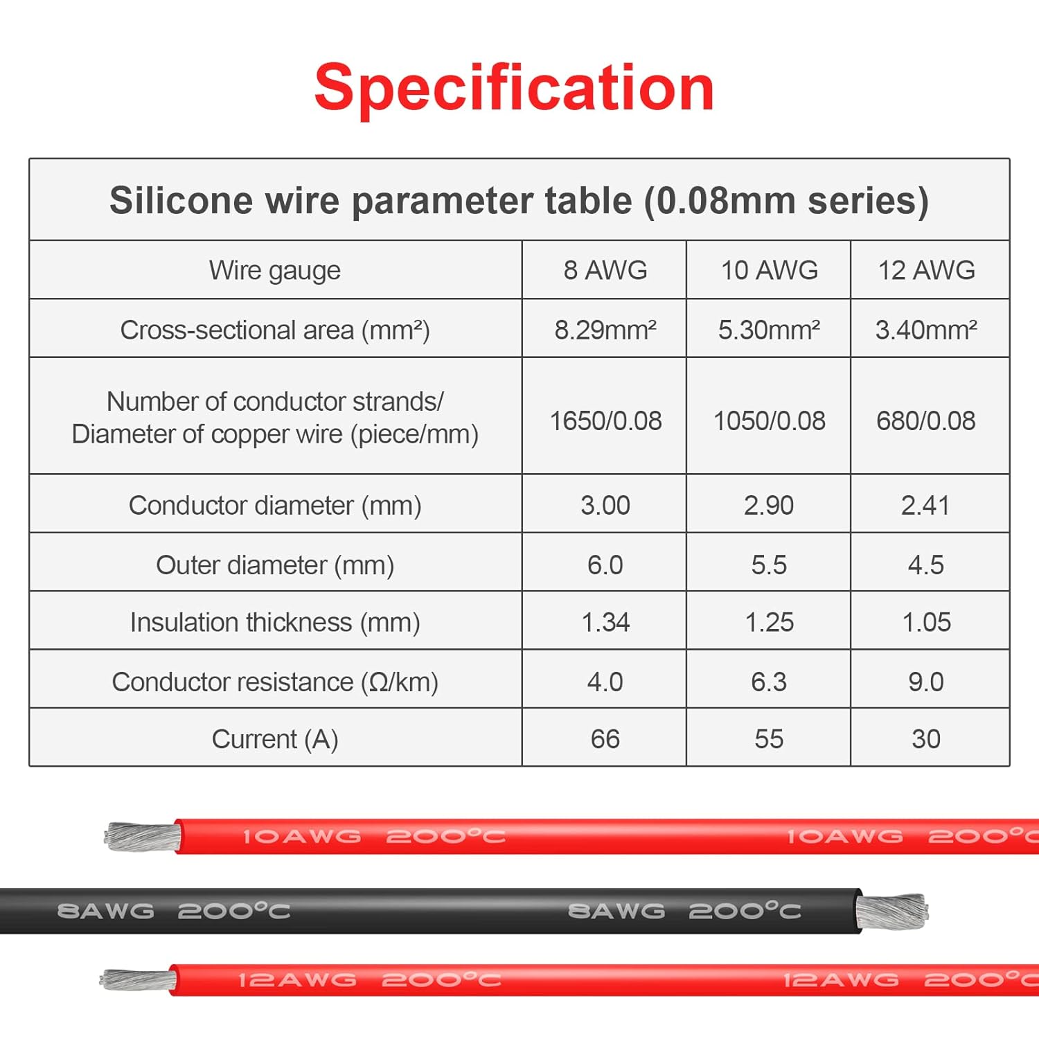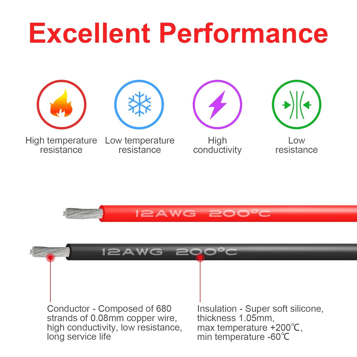 12 Gauge Silicone Wire, 12 AWG Electrical Cable 5M(2.5m Red & 2.5m Black)Soft & Flexible 680 Strands of 0.08 mm Tinned Copper High Temperature Wire for Arduino Projects/RC Cars/Boat/Drones