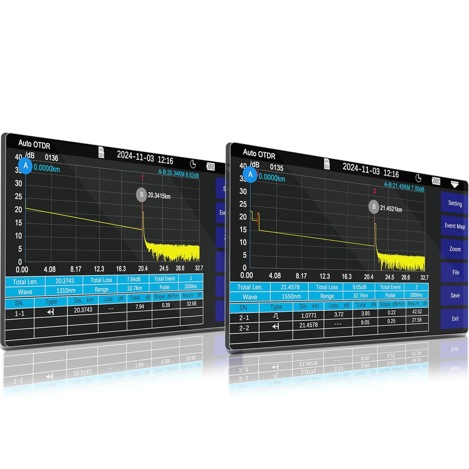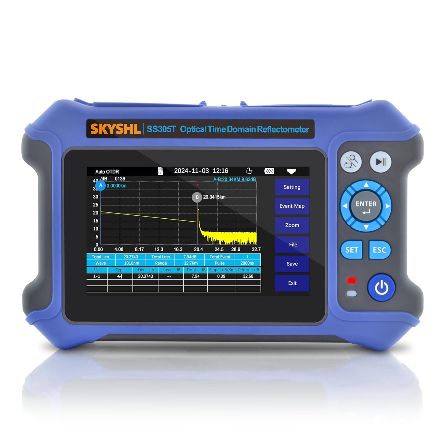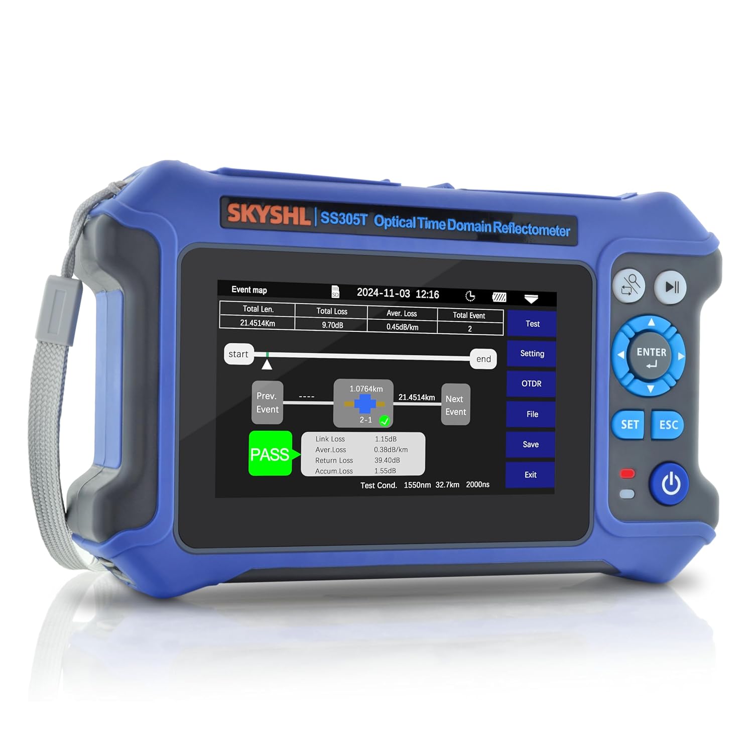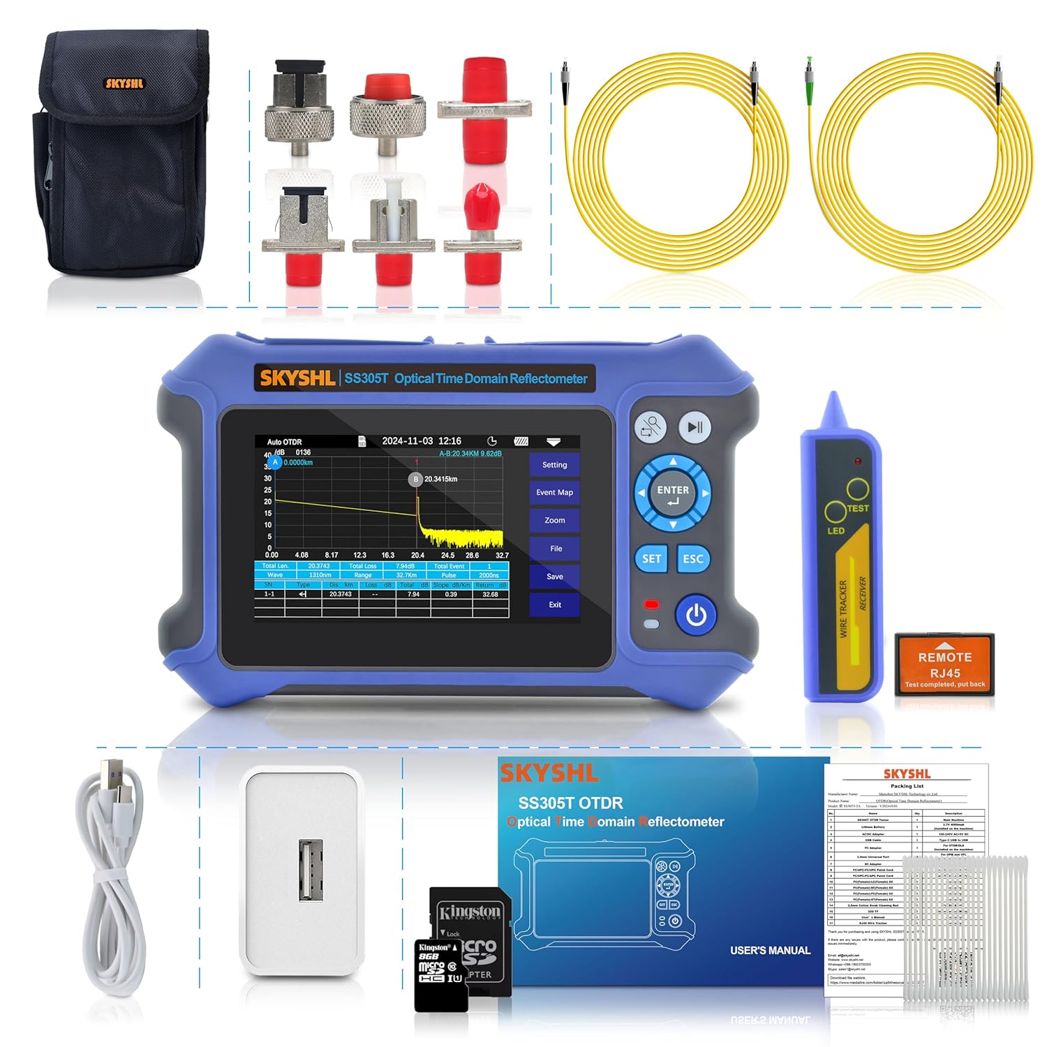 1310nm/28dB+1550nm/26dB SM OTDR Testing and OPM+10G OPM+OLS+VFL+Event Map+Optical Loss Tester+Multi-fiber Testing+RJ45 Cable Test Fiber Tester Compatible with APC&UPC SC+FC+ST+LC-SS305T-2A1