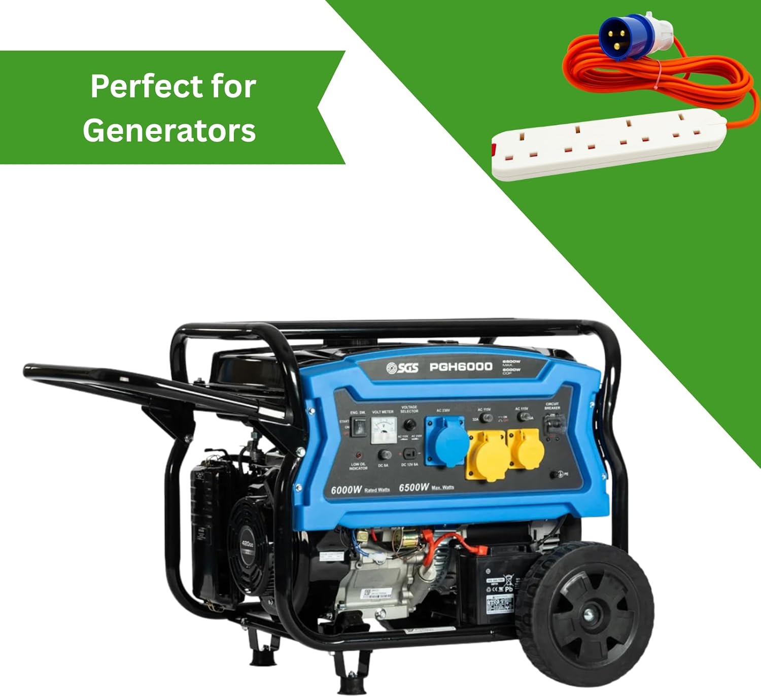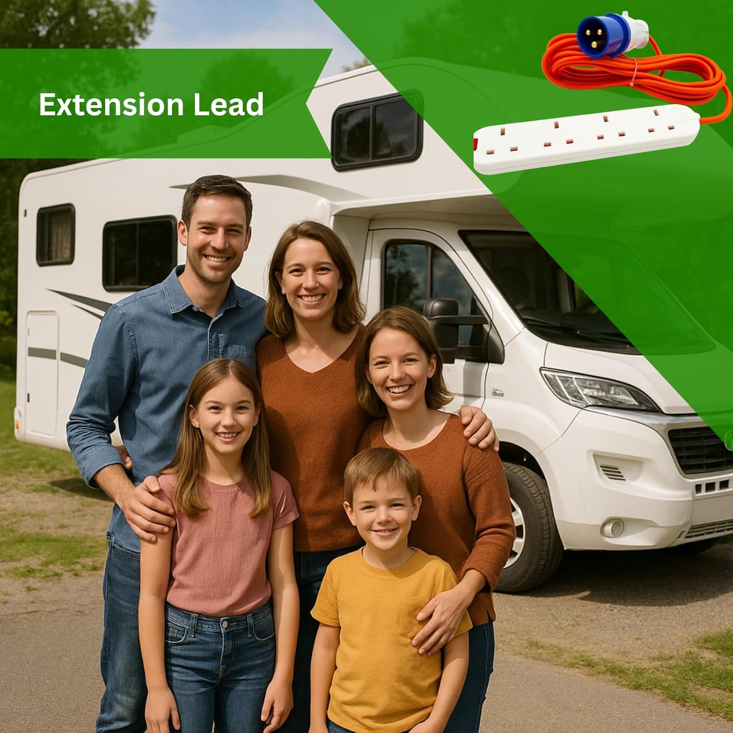 16A to 13A Extension Lead 5 Metres – Camping Electric Hook Up Cable with UK 3-Pin Plug Sockets – 240V Mains Lead for Caravans, Motorhomes, Catering Trailers & Generators – 3-Pin Blue Plug