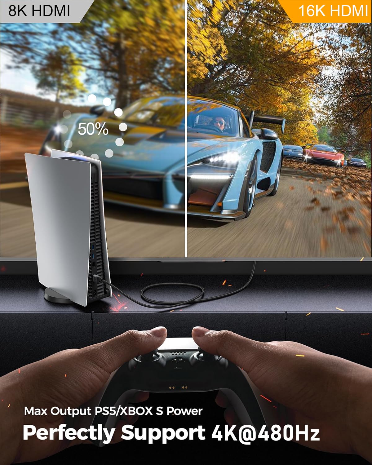 16K 10K 8K HDMI 2.2 Cable 96Gbps 3m, Ultra High Speed HDMI Braided Cord Support 4K@480Hz 8K@240Hz, HDCP 2.2&2.3, Dynamic HDR, eARC,DTS:X, Compatible with Roku TV/HDTV/PS5/Blu-ray