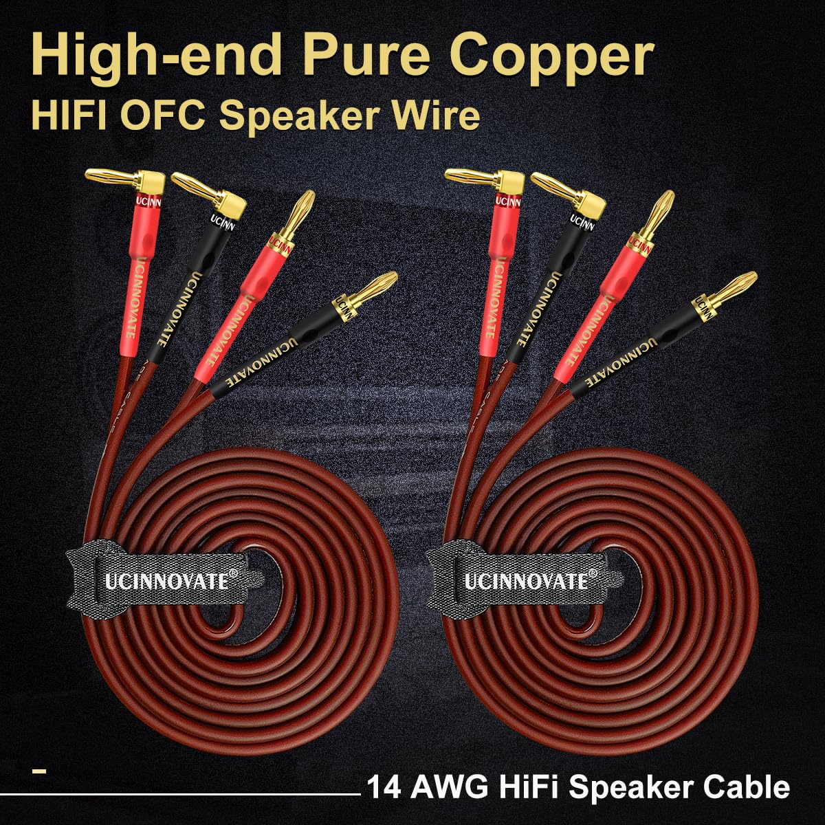 2 Pack 14 AWG Speaker Wire with Banana Plugs, 2x 3m HiFi OFC Speaker Cable with Gold-Plated Right Angle to Banana Plugs Audio Cable Cord for Audiophile (3m / 9.8FT)