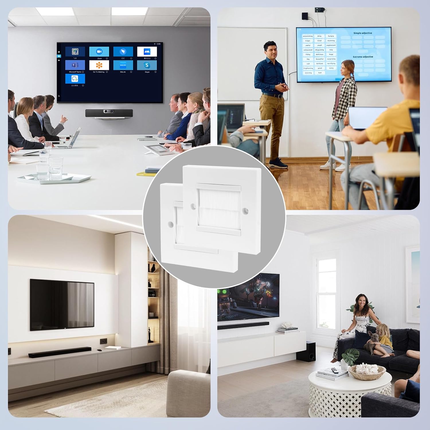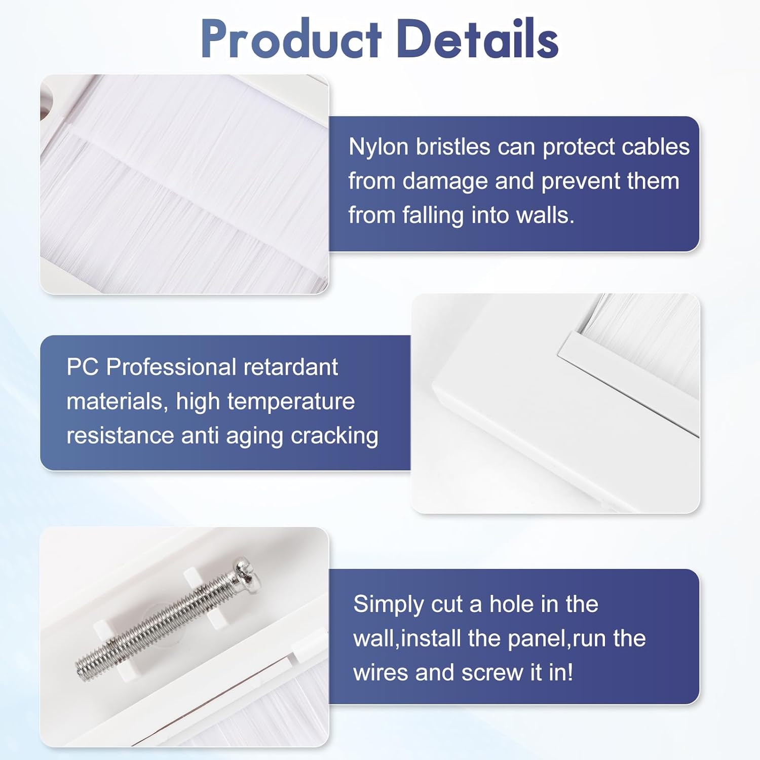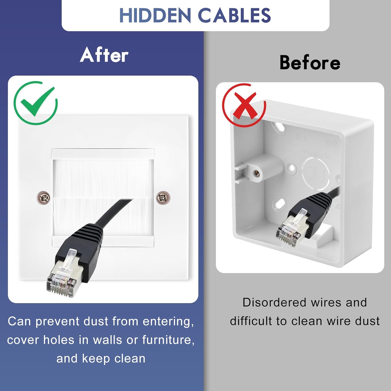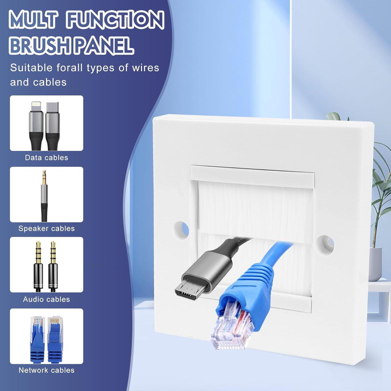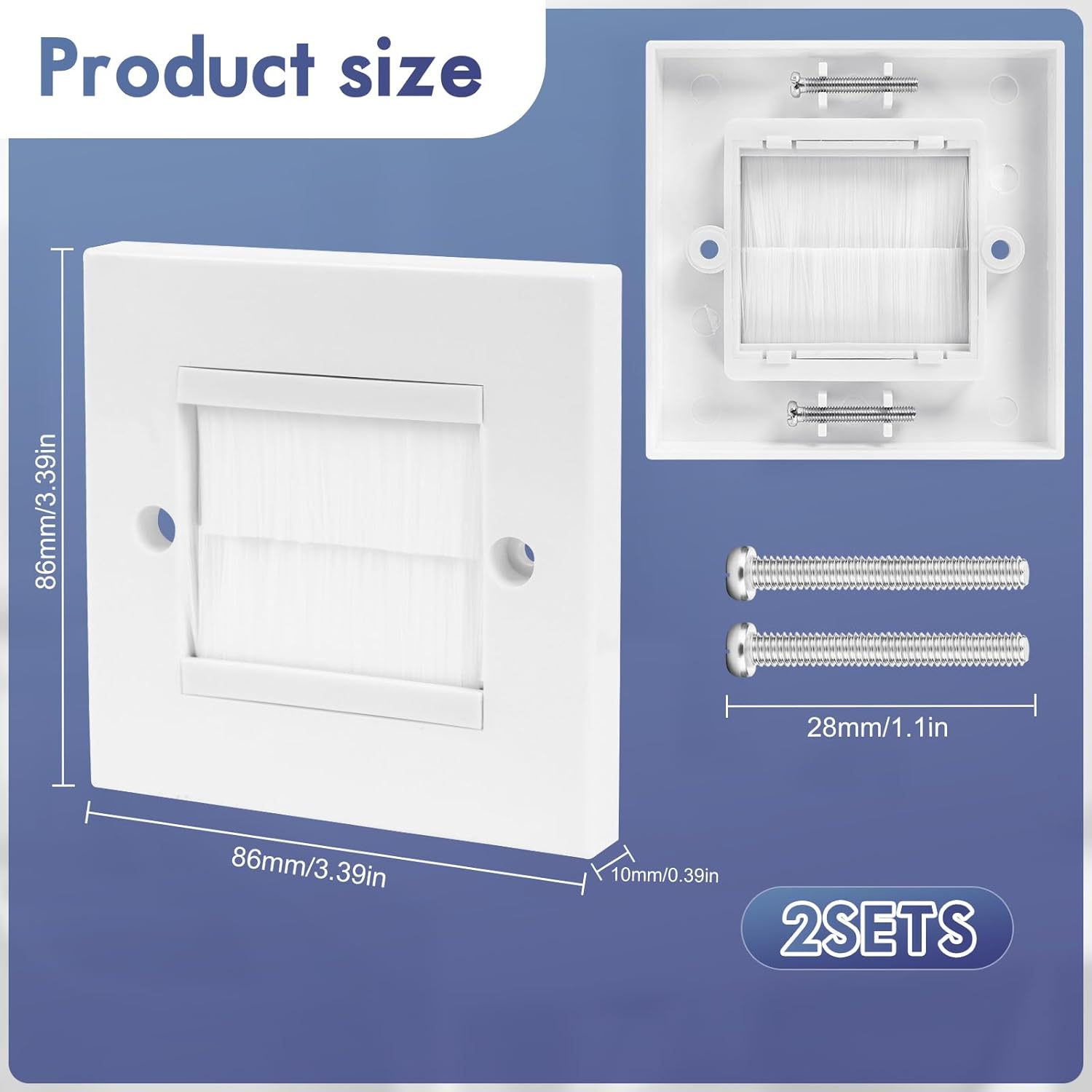 2 Pack Cable Brush Plate, Brush Wall Plate, Cable Entry Cover, Single Gang Brush Panel for Covering Outlets, Cables Pass Through Insert for Wires, Receptacles and Tidying Cords