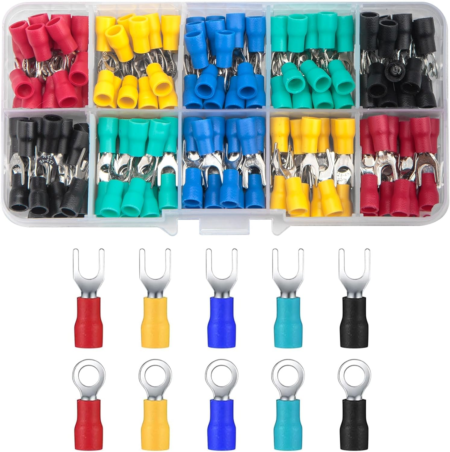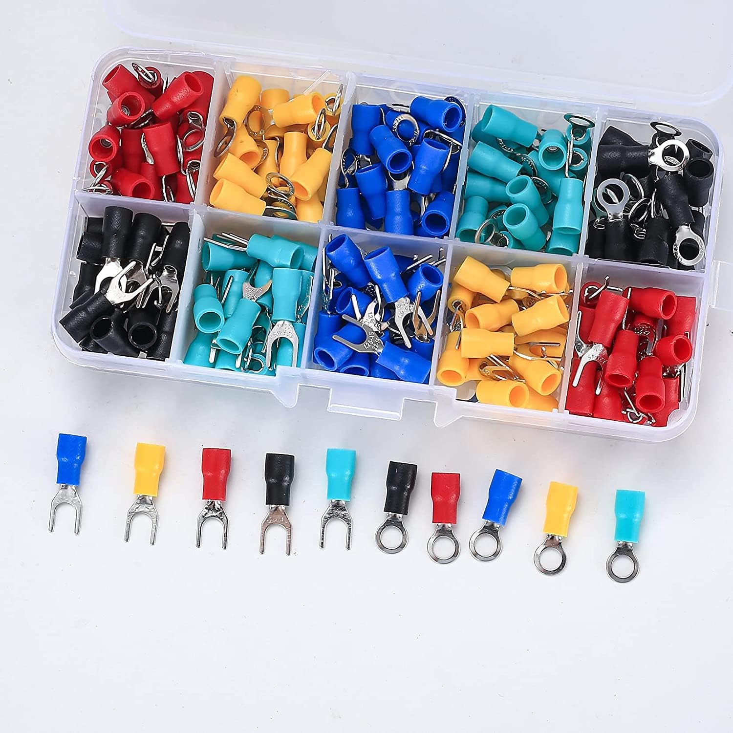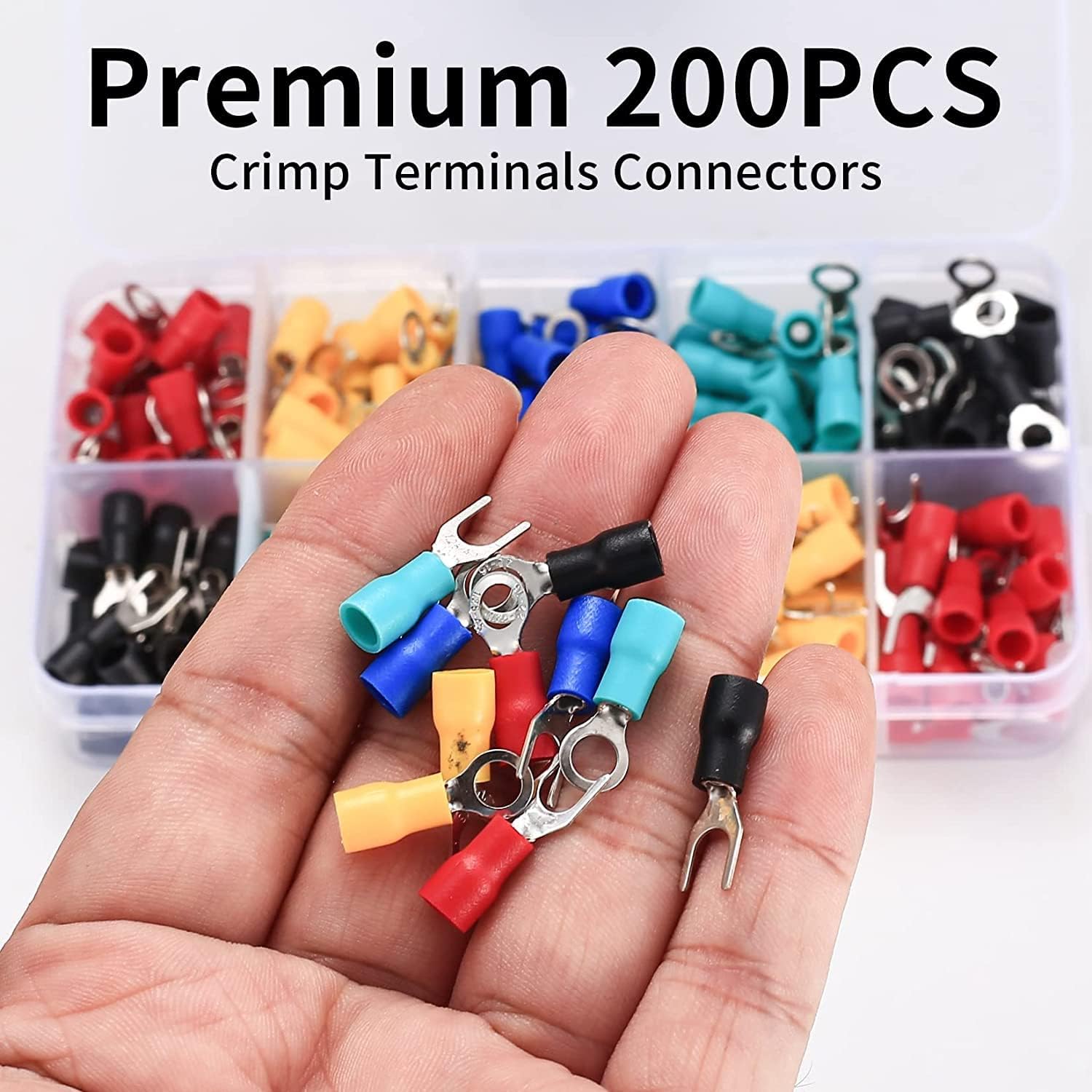 200 Pcs Electrical Insulated Wire Connectors Kit, Wire Terminals Lug Set, Mixed Ring Spade Butt Forks Quick Disconnect Crimp Cable Terminals Connectors for Home Automotive Wiring (Five 200)