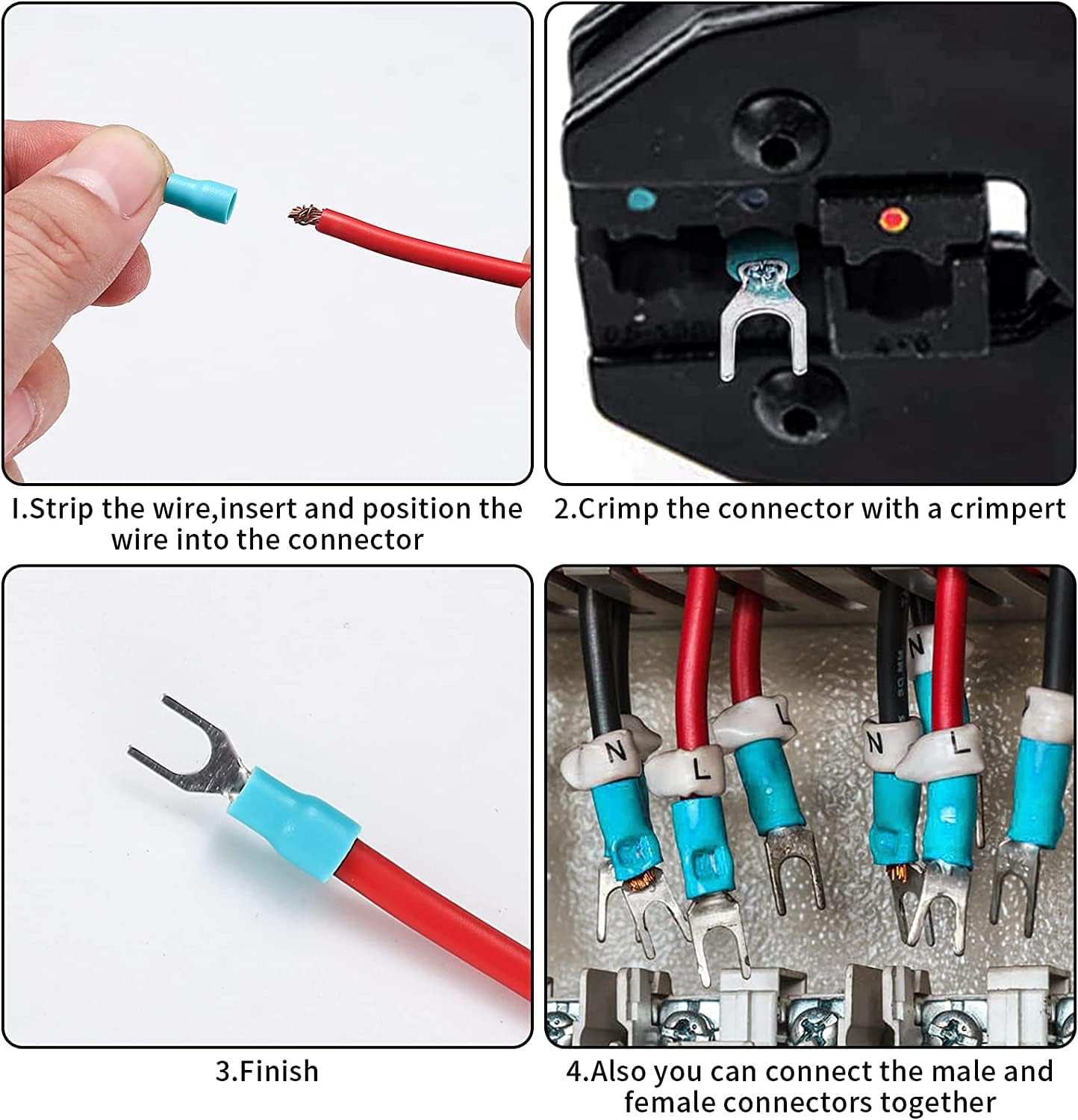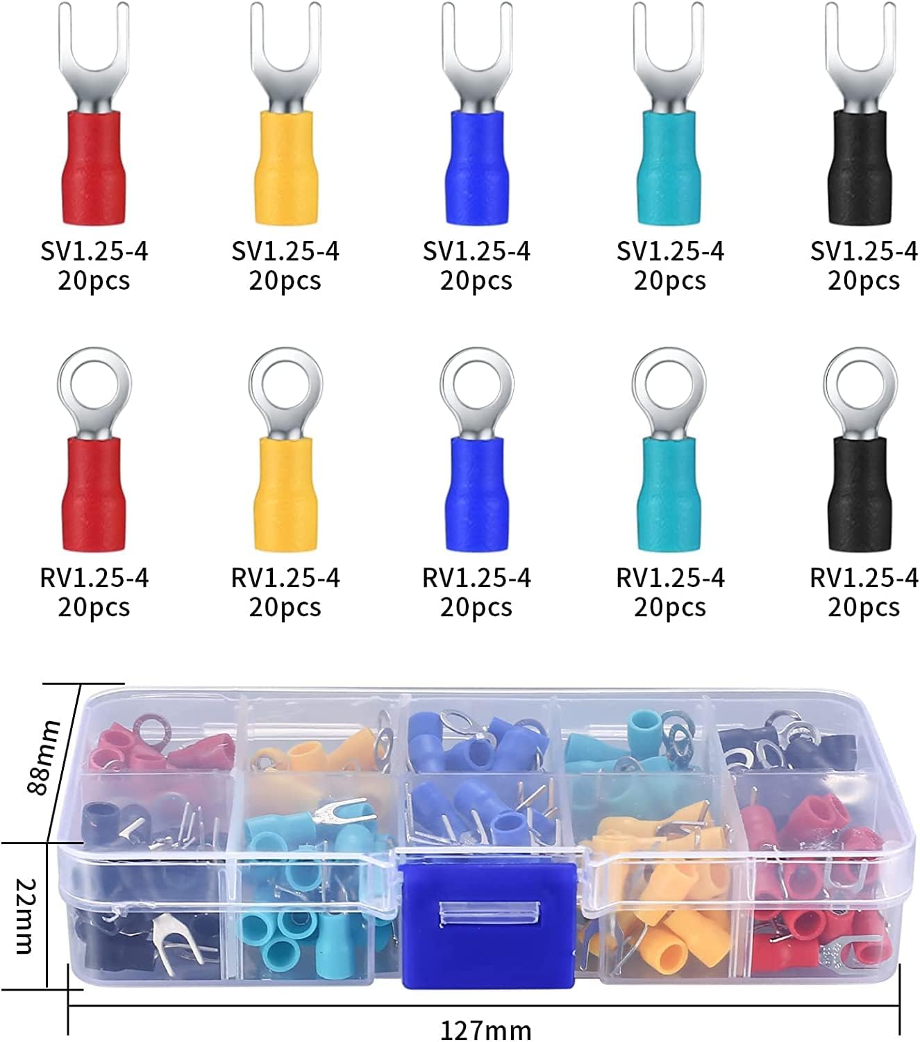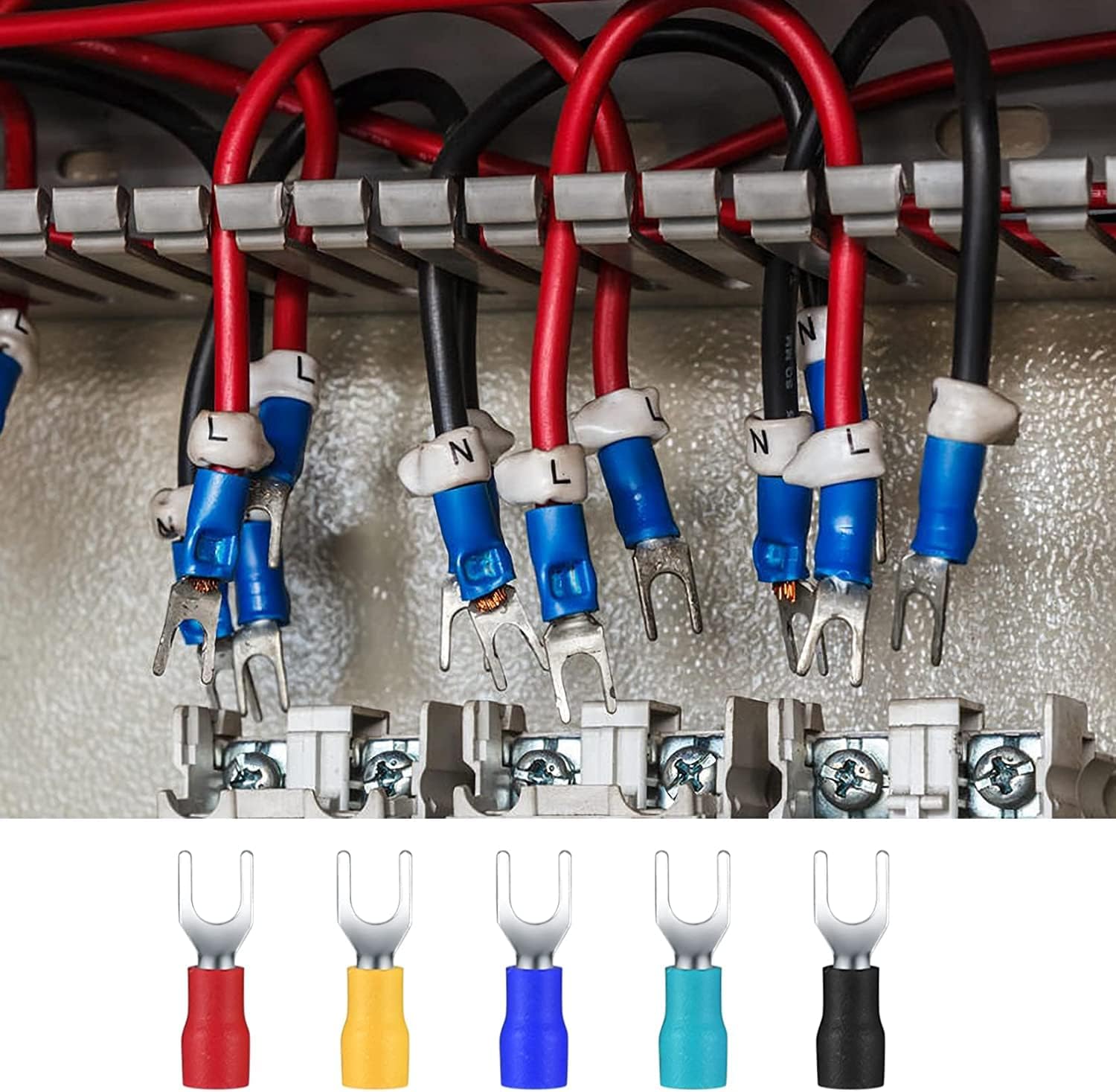 200 Pcs Electrical Insulated Wire Connectors Kit, Wire Terminals Lug Set, Mixed Ring Spade Butt Forks Quick Disconnect Crimp Cable Terminals Connectors for Home Automotive Wiring (Five 200)