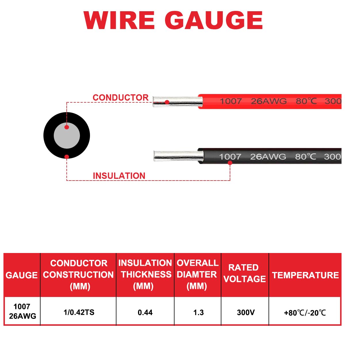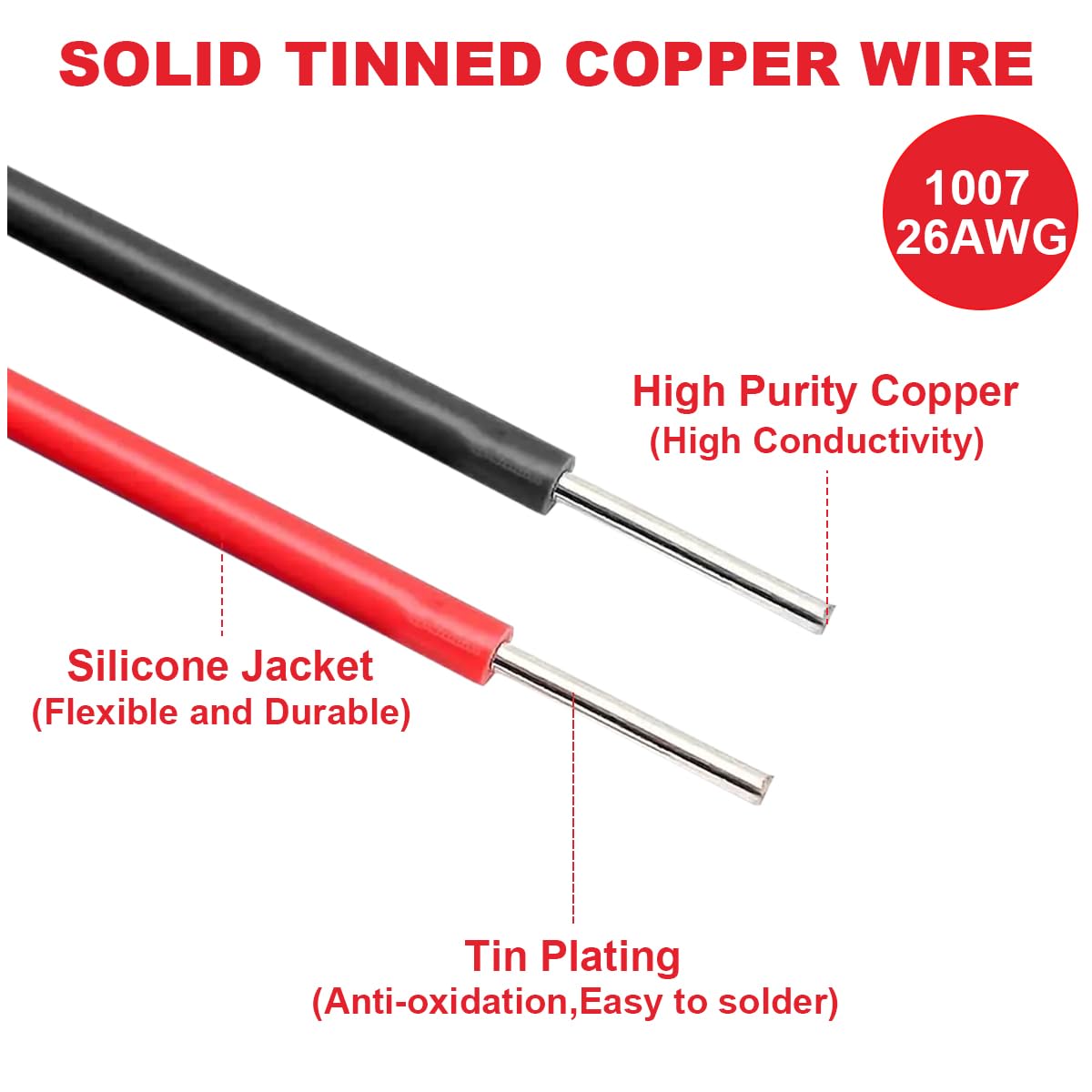 26 Gauge Solid Copper Wire 300V PVC Electrical Hook Up Cable – Red/Black 5m/16.4ft Each with Cable Ties for Electronics DIY
