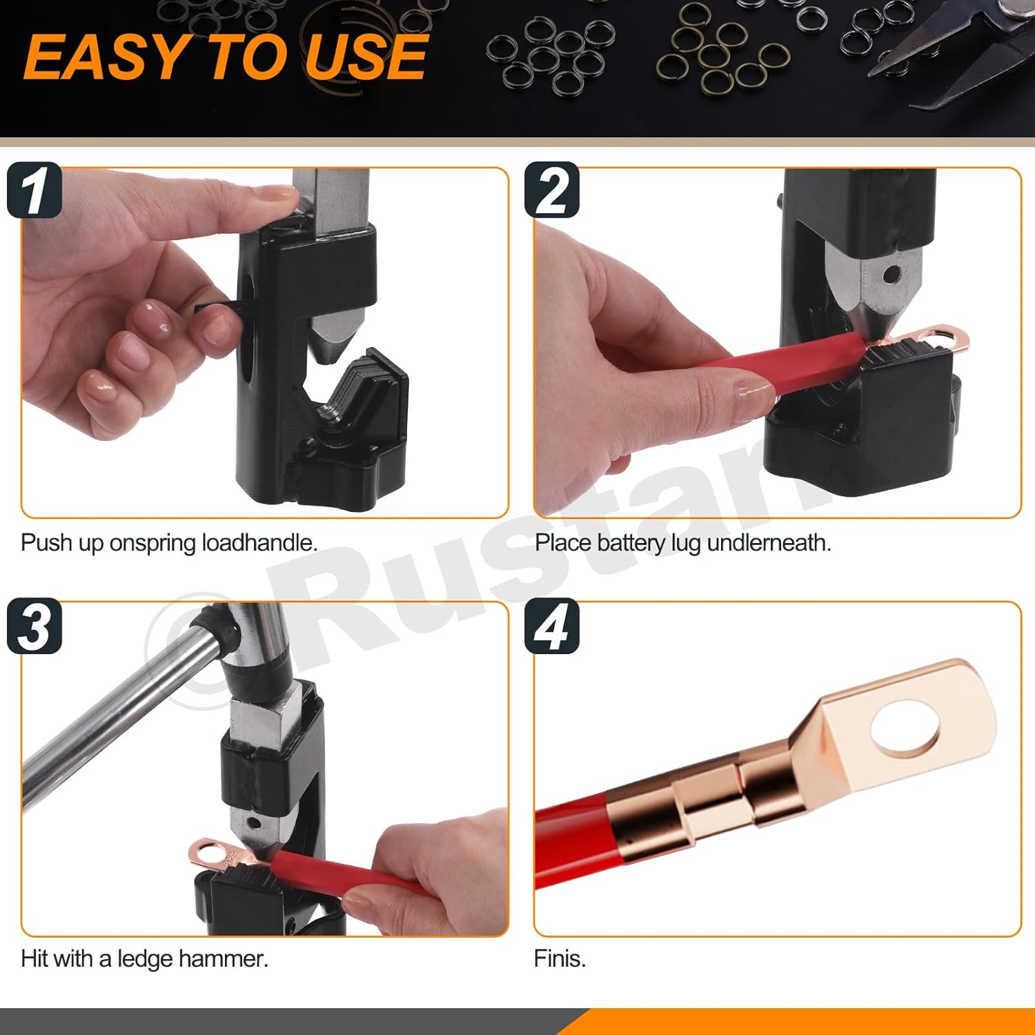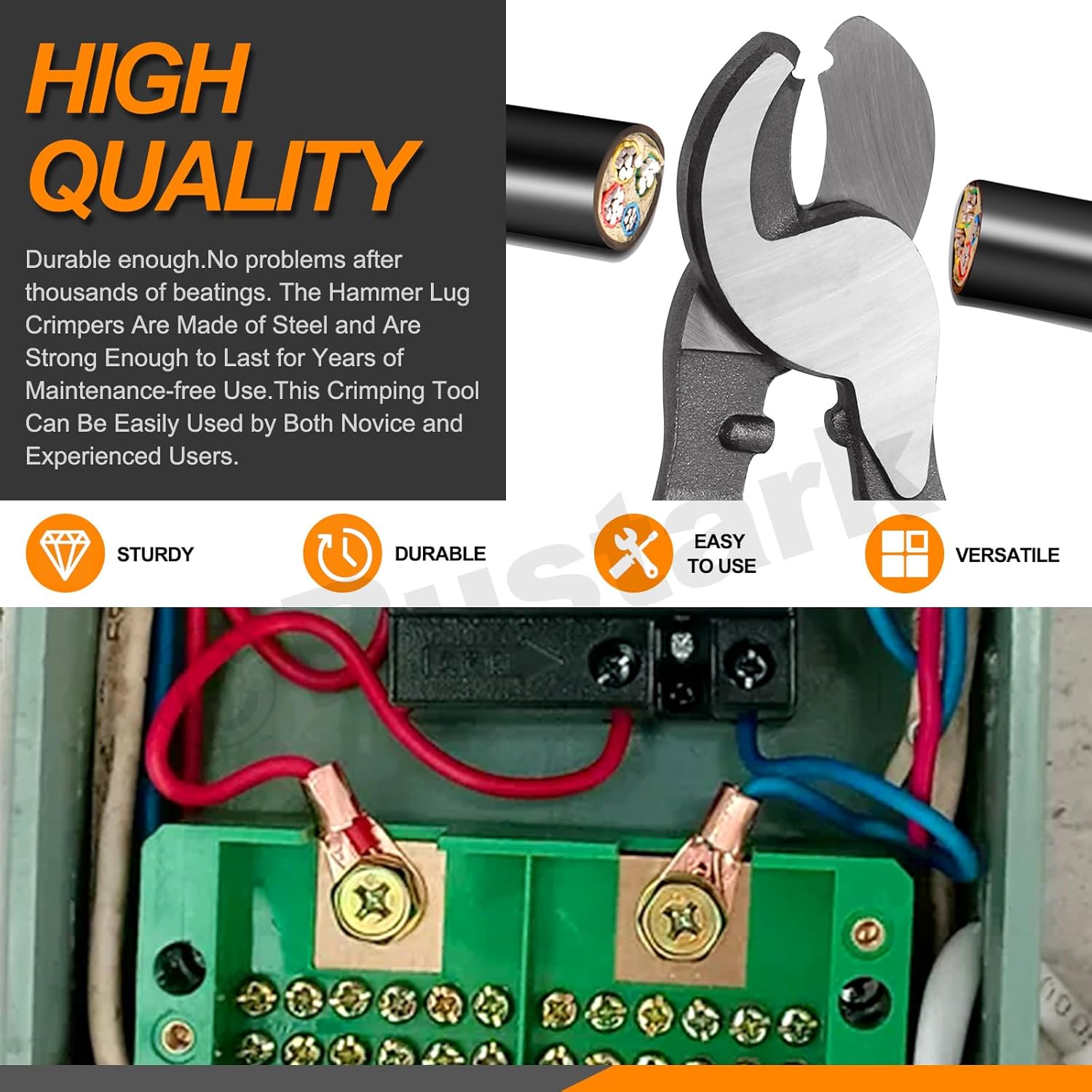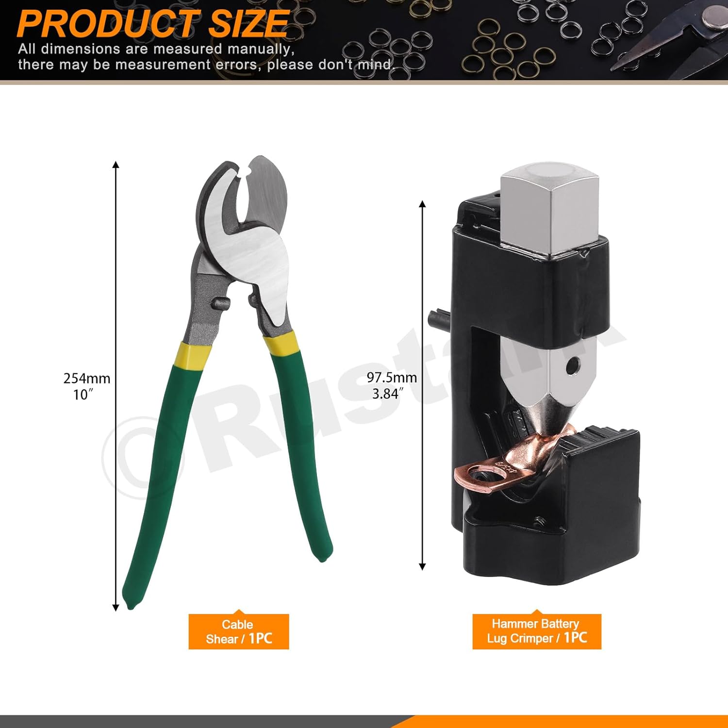 2Pcs Battery Cable Lug Crimping Tool Set Includes Hammer Lug Crimper Tool and 10 Inches Cable Cutter for Electrical Battery and Welding Cables