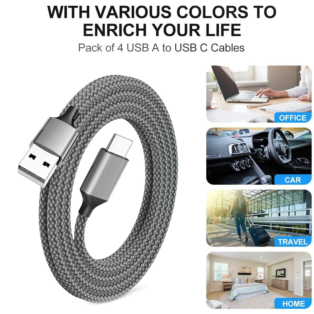3 Pack, 6FT USB A to USB C Charger Cable, Fast Charging, Braided, Compatible with Samsung Galaxy, Google Pixel, HTC, Sony XZ, oppo and More