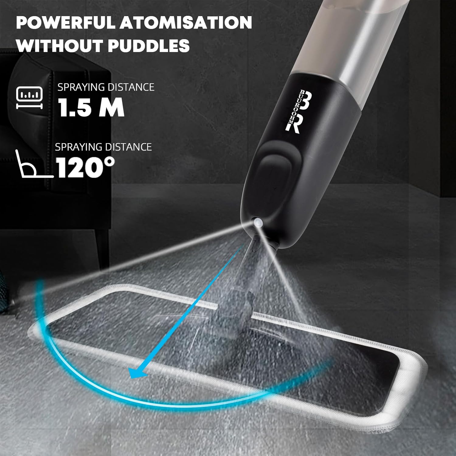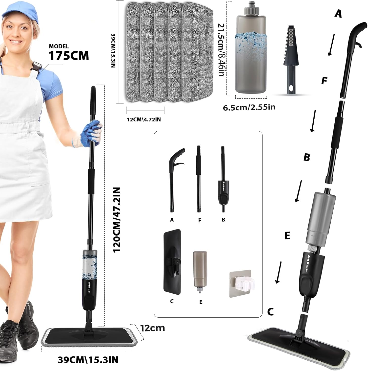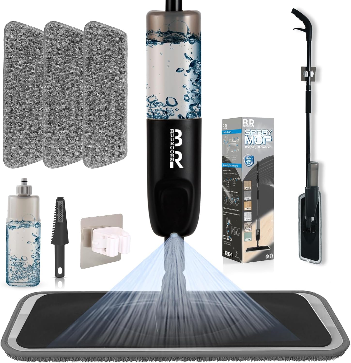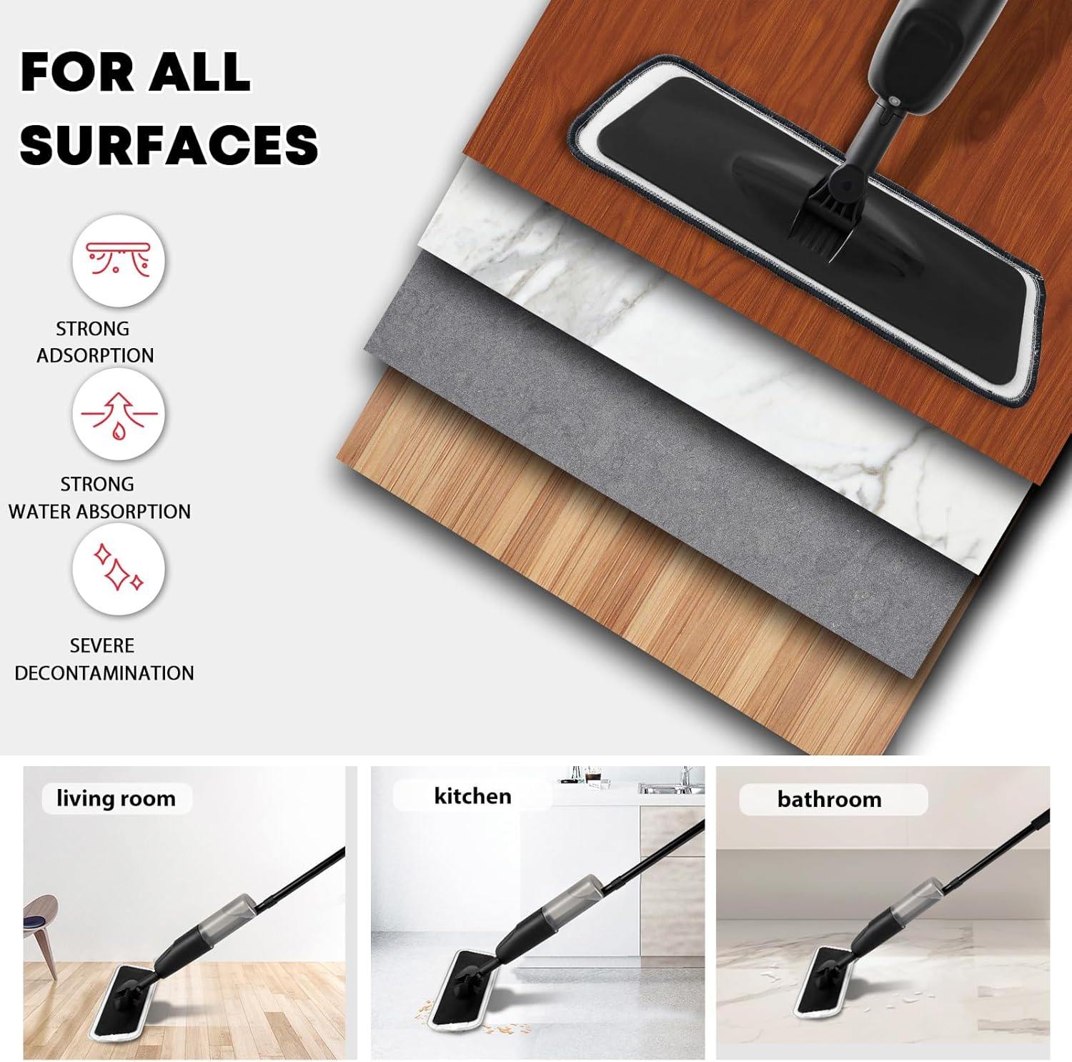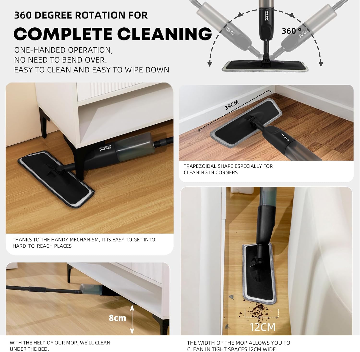 360° 3-in-1 Microfiber Spray Mop for Floor Cleaning Dry Wet Dust Mop for Hardwood, Laminate, Tile & Wood Floors Large Capacity Bottle 3 Reusable Pads Scraper Holder Kitchen Multi-Surface