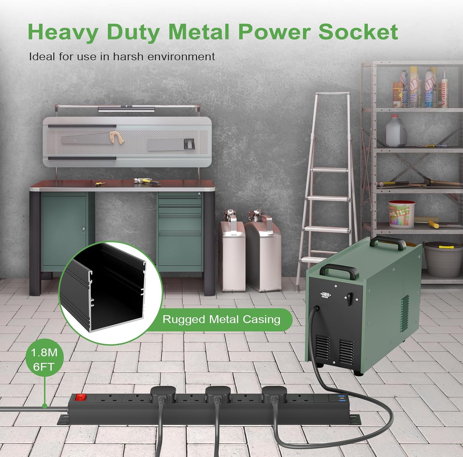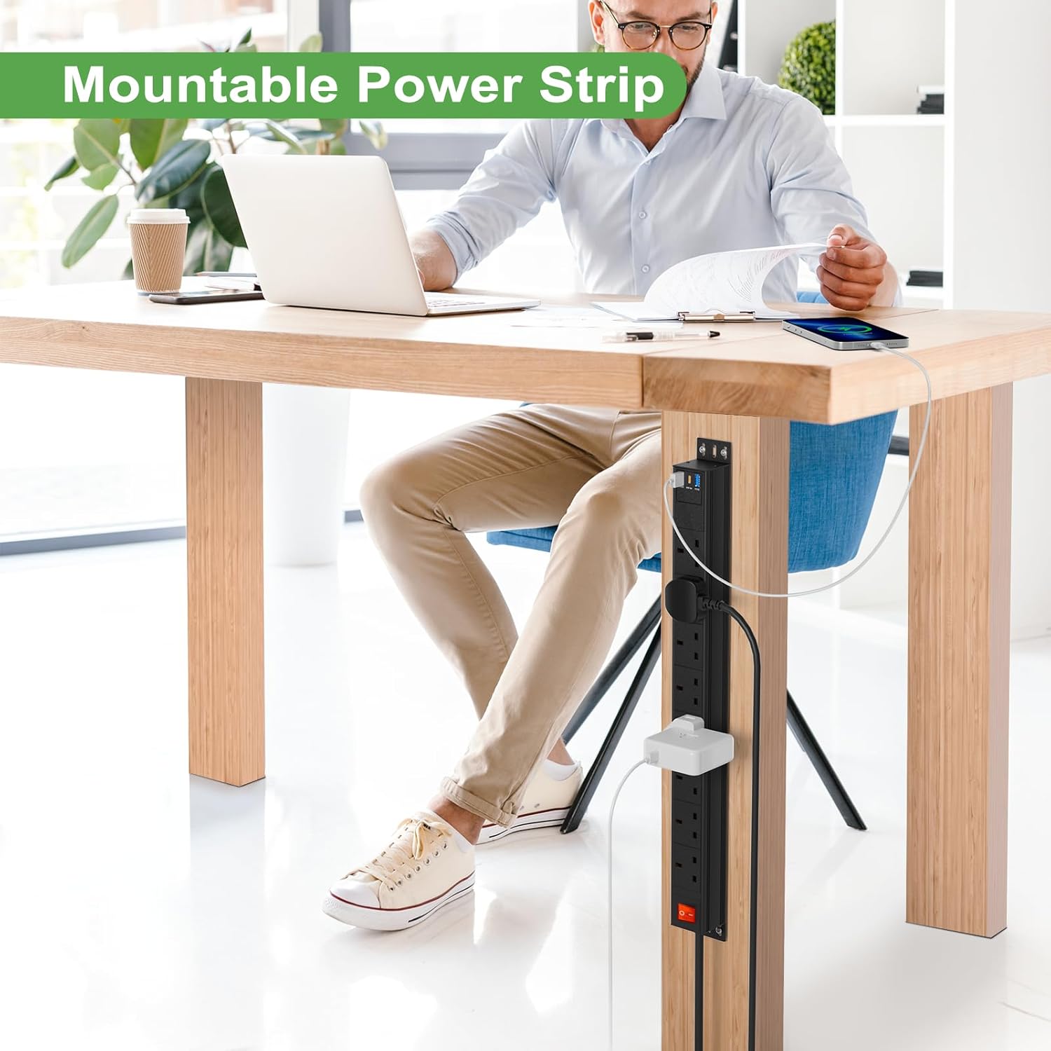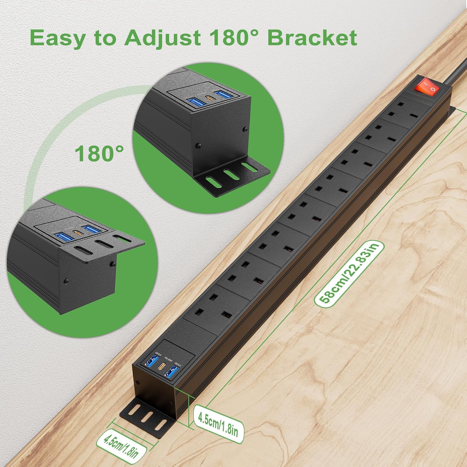 3m Cable 8 Way Power Strip Surge Protector, 8 Way Extension Lead USB C PD20W with Switches, Wall Mount Power Strip with Metal Casing for Home Office Industrial Use, Black, 13A