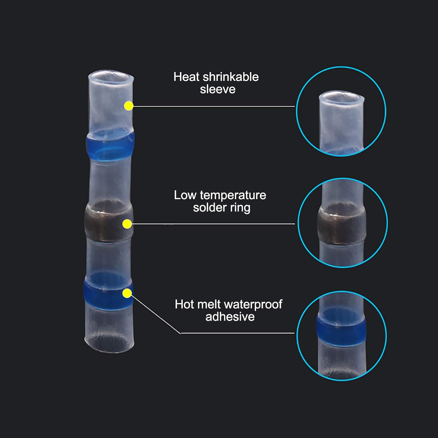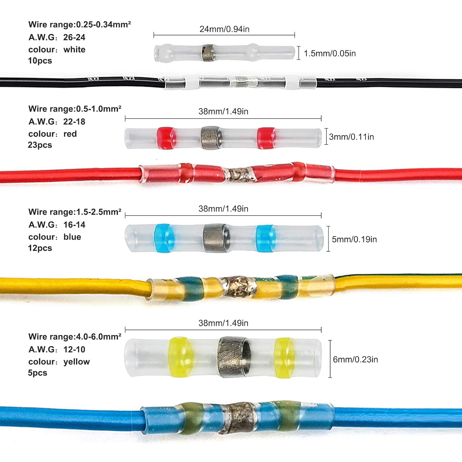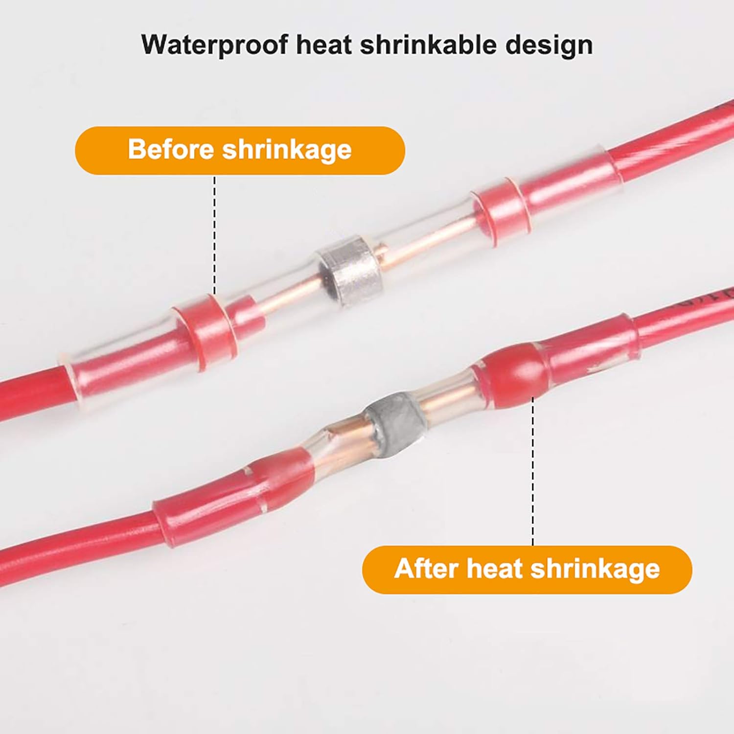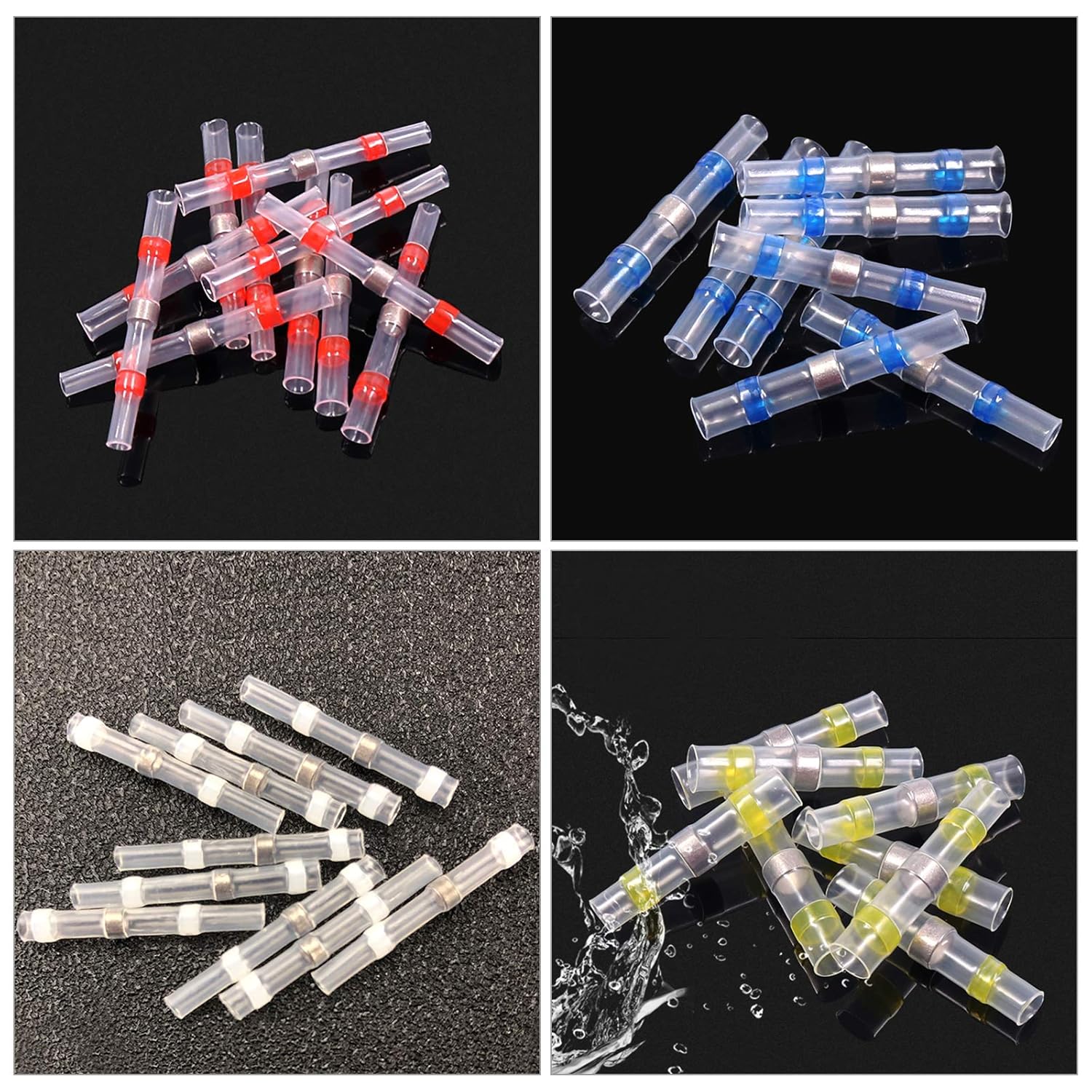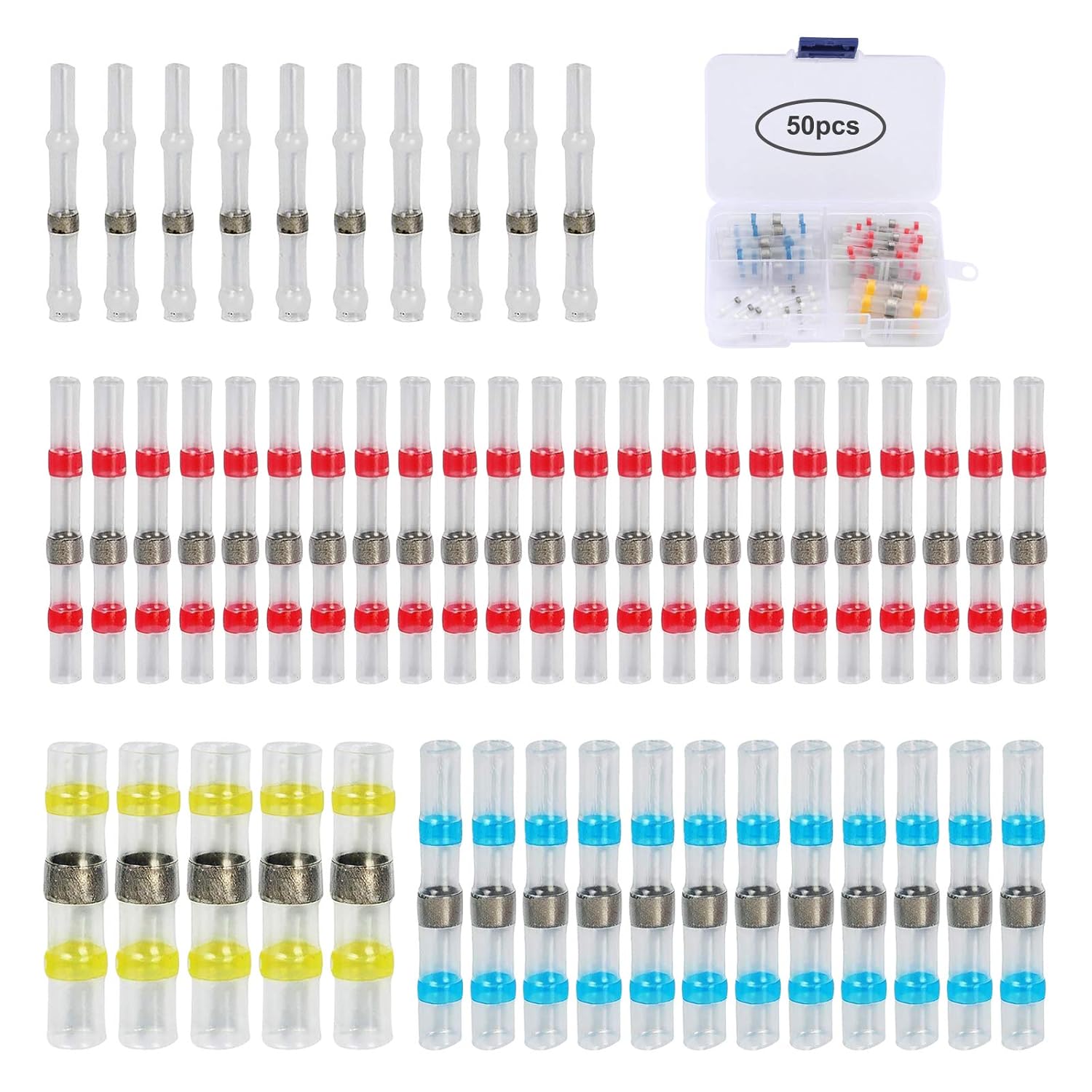 50pcs Solder Seal Wire Connectors Waterproof Heat Shrink Electrical Wire Butt Terminals Non Slip Assorted Insulated Wire Connectors for Marine Vehicle Electrical Engineering (50 pcs)