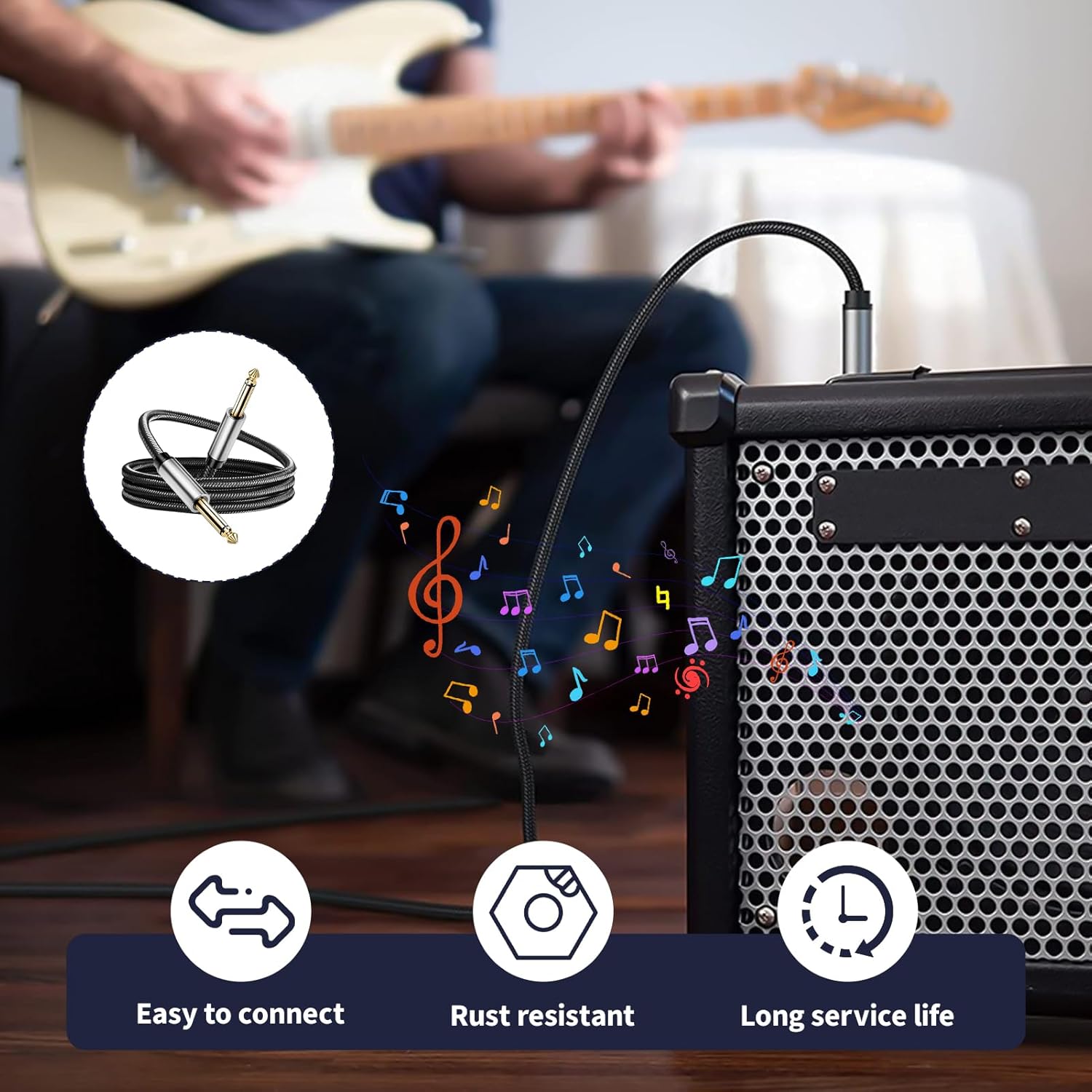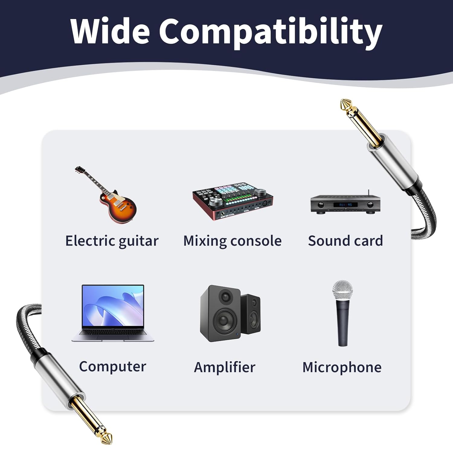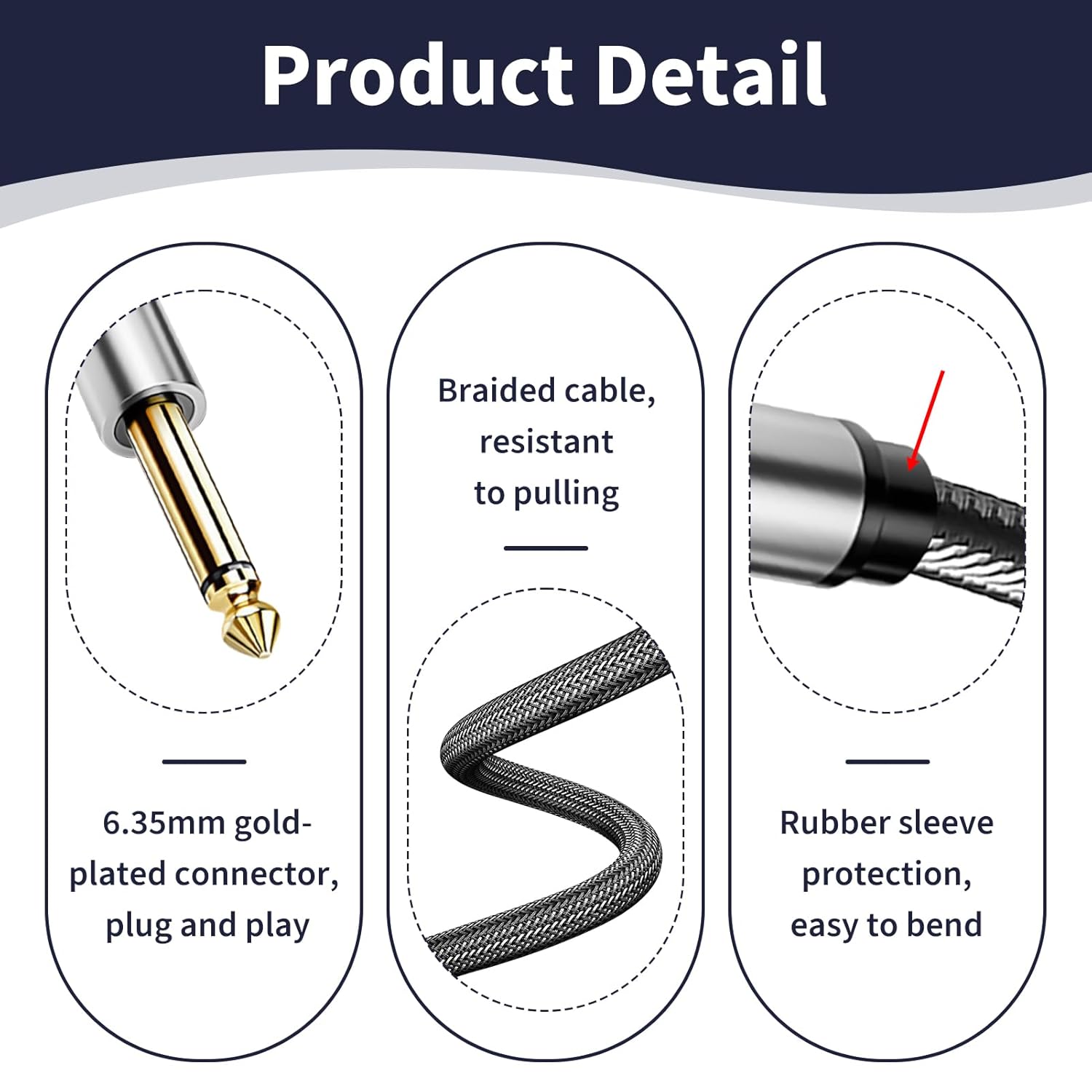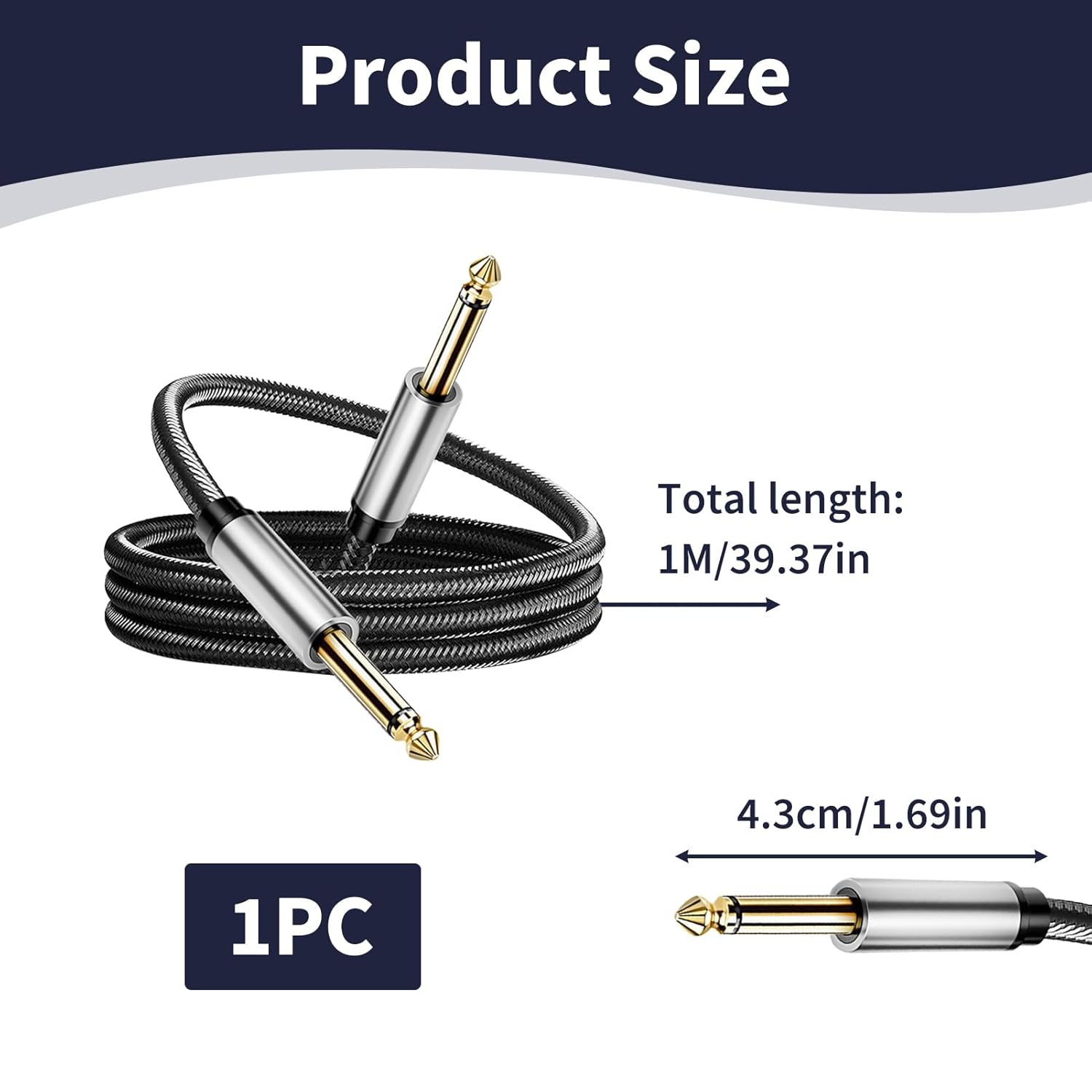 6.35mm to 6.35mm Cable, 1/4 Inch TRS Stereo Audio Cable 1M Male to Male Guitar, Professional Balanced Line for Electric Guitar, Bass, Keyboard, Studio Monitors, Mixer, DJ Equipment