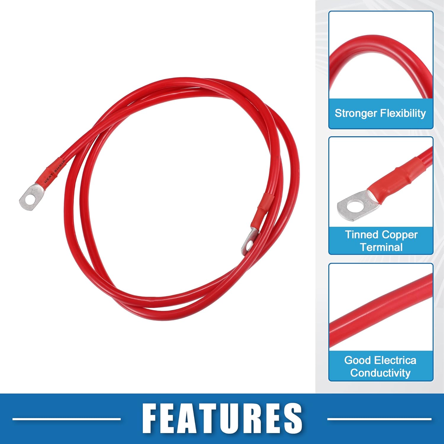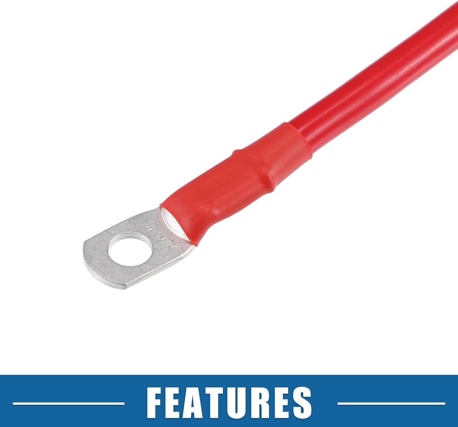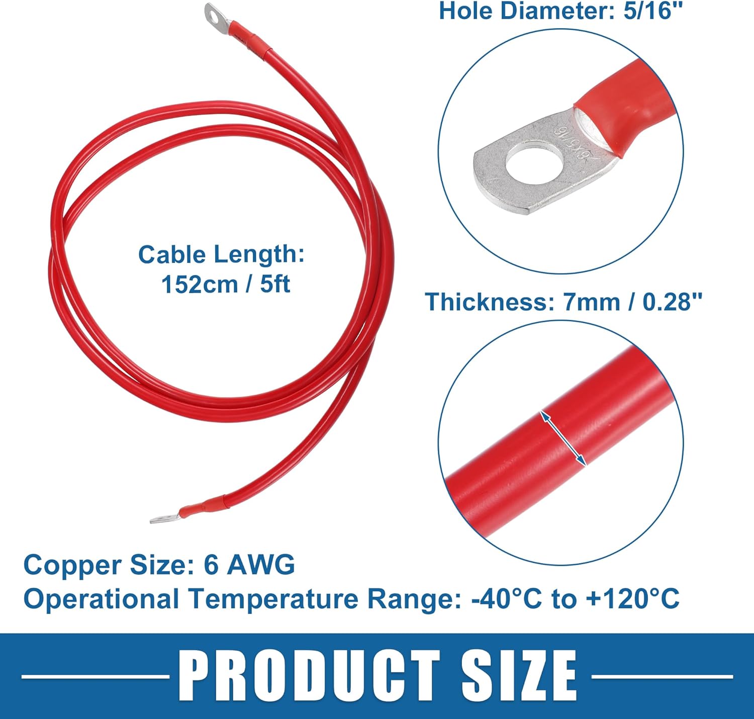 6 AWG Battery Cable Stronger 152cm 5FT 6 AWG Gauge Car Battery Inverter Cable with 5/16 Inch Lugs Pure Copper Red