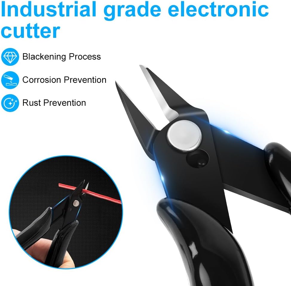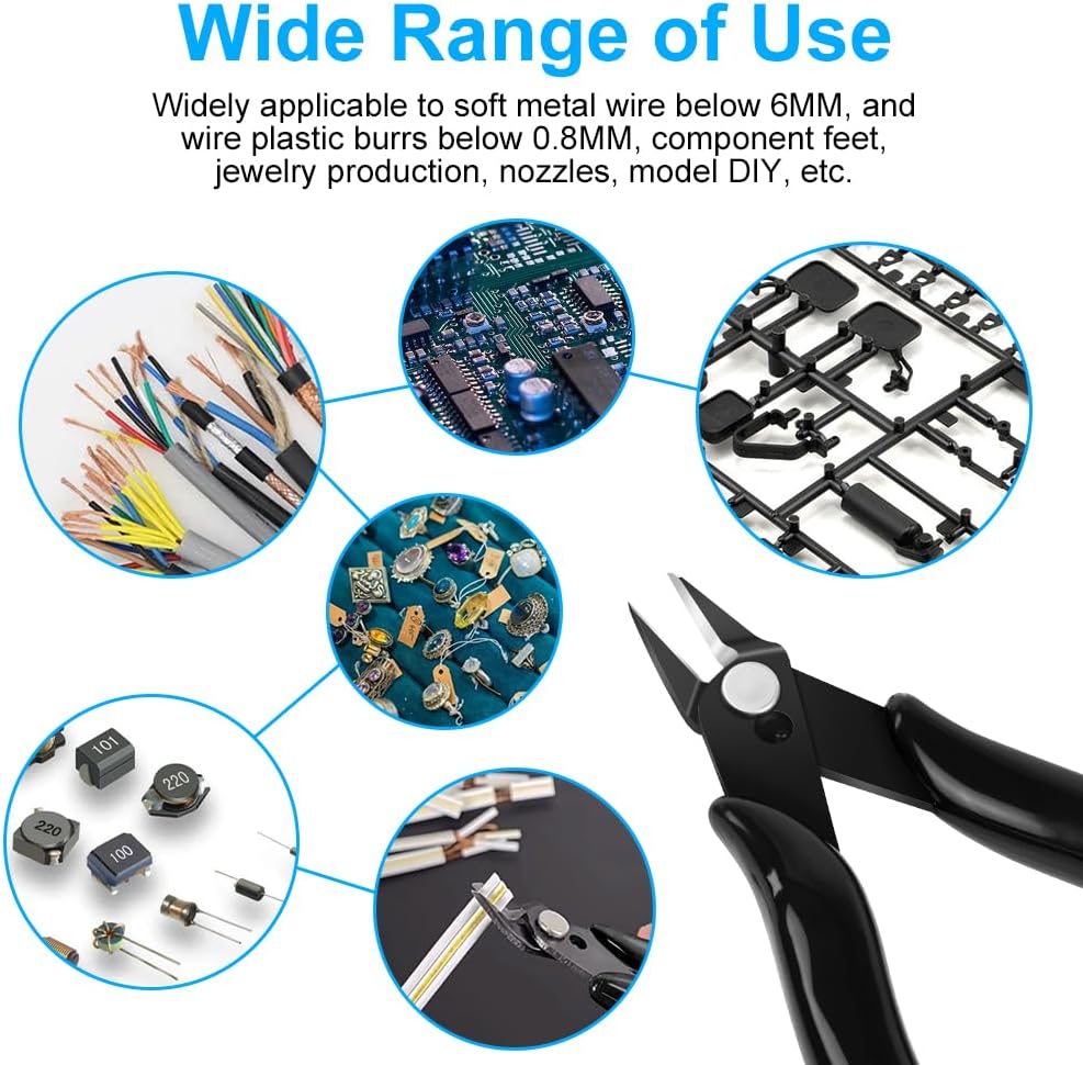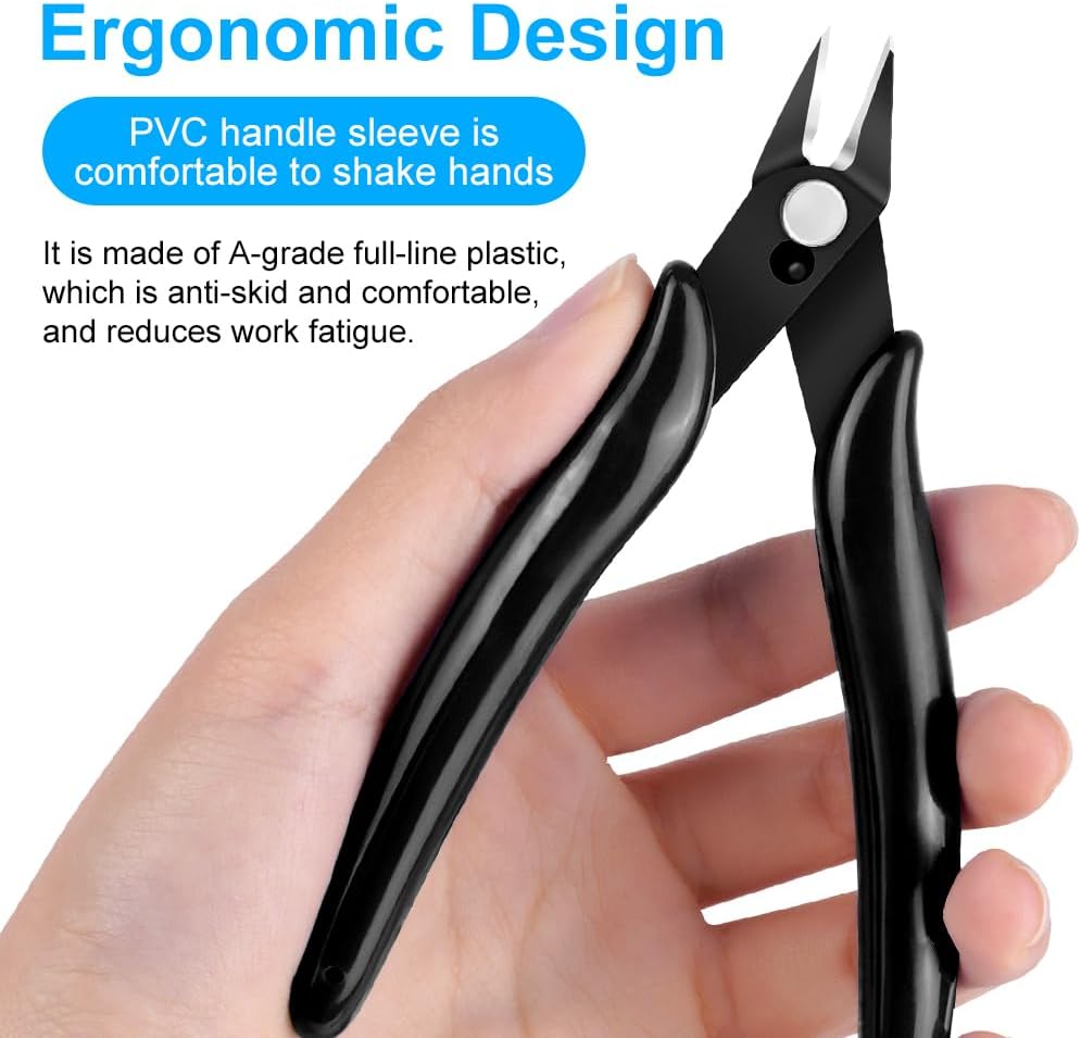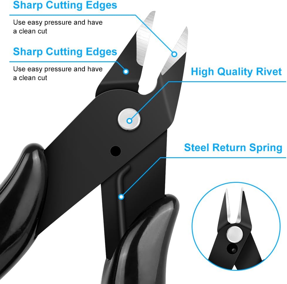 Ainiv 1PC Micro Wire Cutter, Spring-Loaded Side Cutting Pliers Flush Cutters, Precision Diagonal Cutting Pliers in CRV Steel, Wire Snips for Electrical, Homes, Craft, Jewellery, 3D Print Models-Black