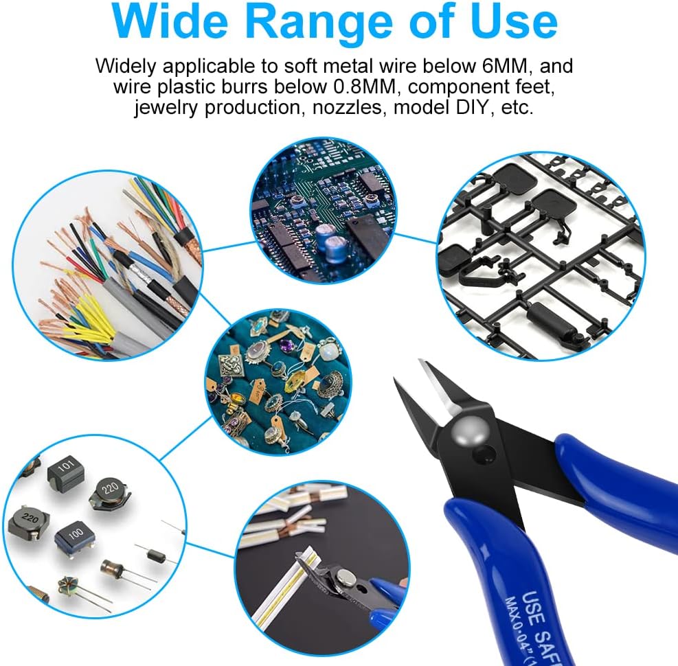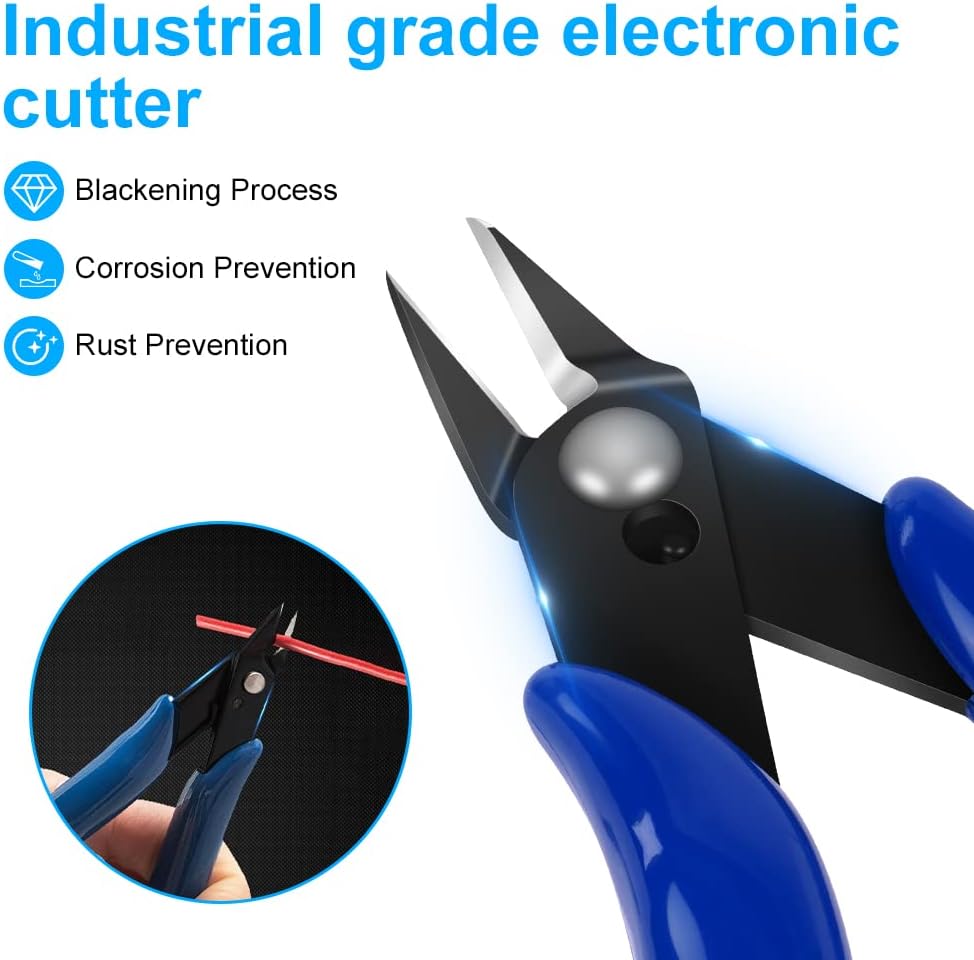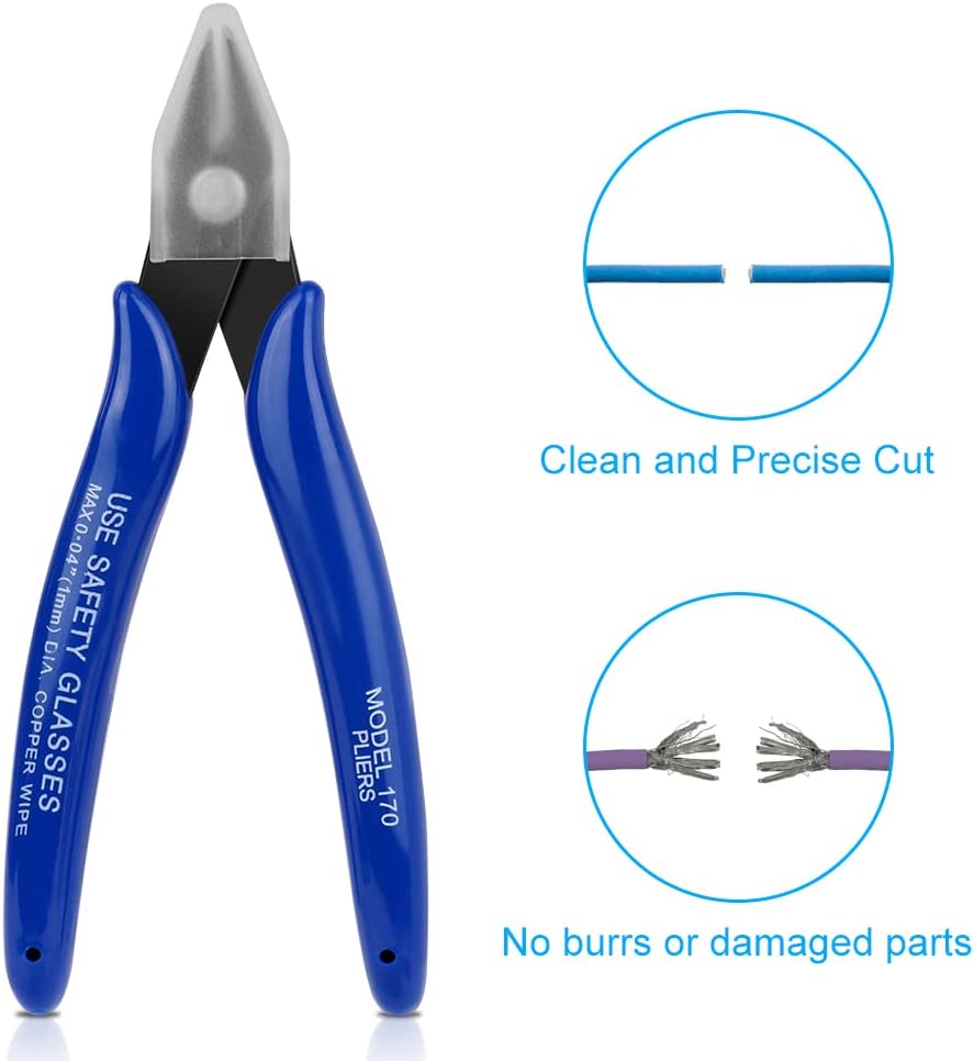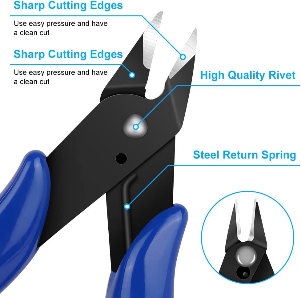 Ainiv 2PCS Micro Wire Cutter, Spring-Loaded Side Cutting Pliers Flush Cutters, Precision Diagonal Cutting Pliers in CRV Steel, Wire Snips for Electrical, Homes, Craft, Jewellery, 3D Print Models-Blue