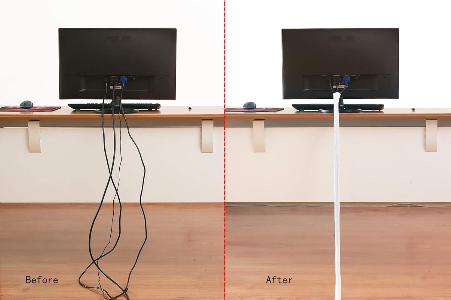 Alex Tech 10ft – 1/2 inch Cord Protector Wire Loom Tubing Cable Sleeve Split Sleeving for USB Cable Power Cord Audio Video Cable – Protect Cat from Chewing Cords – White