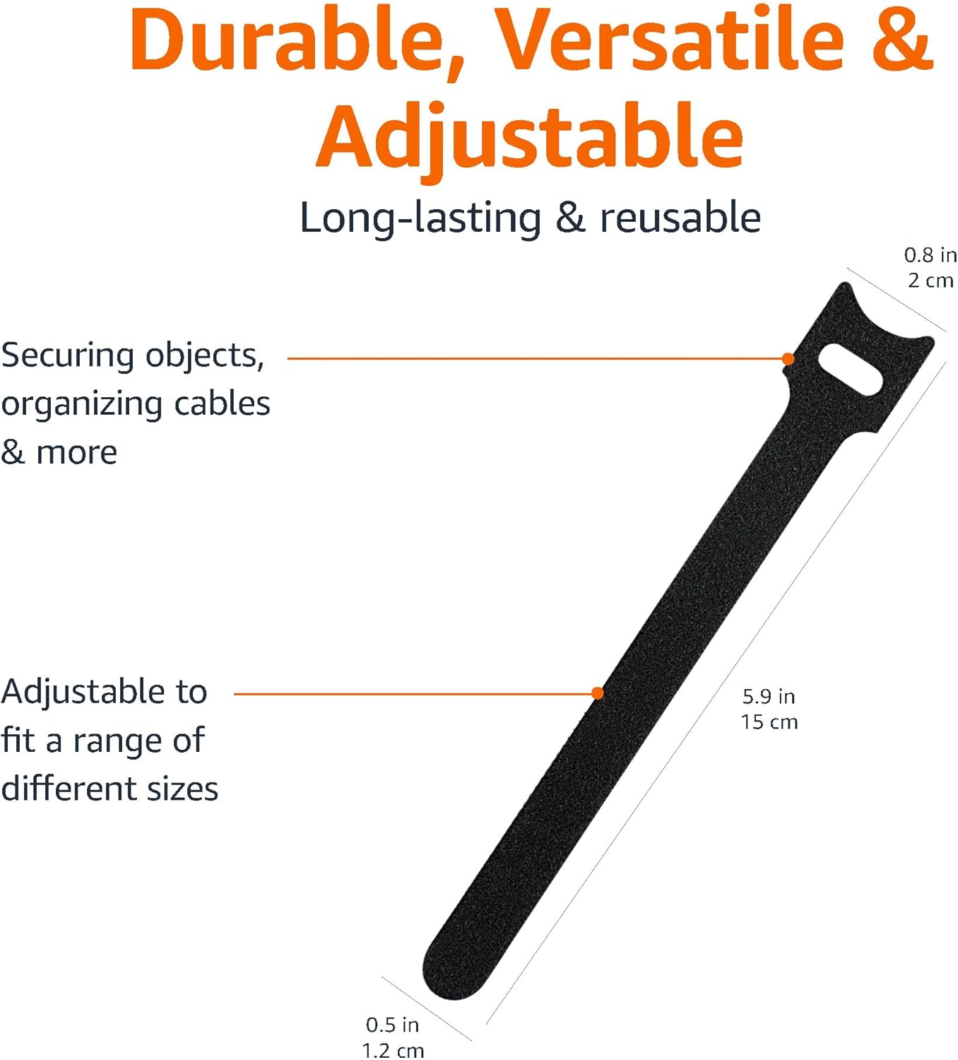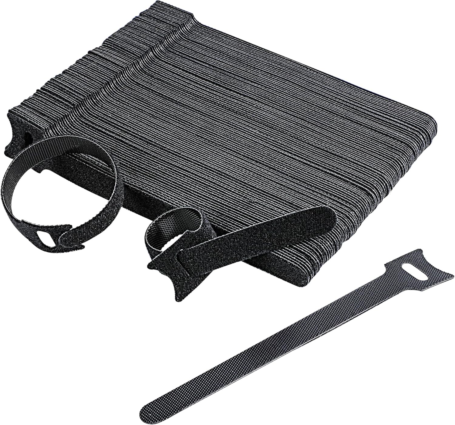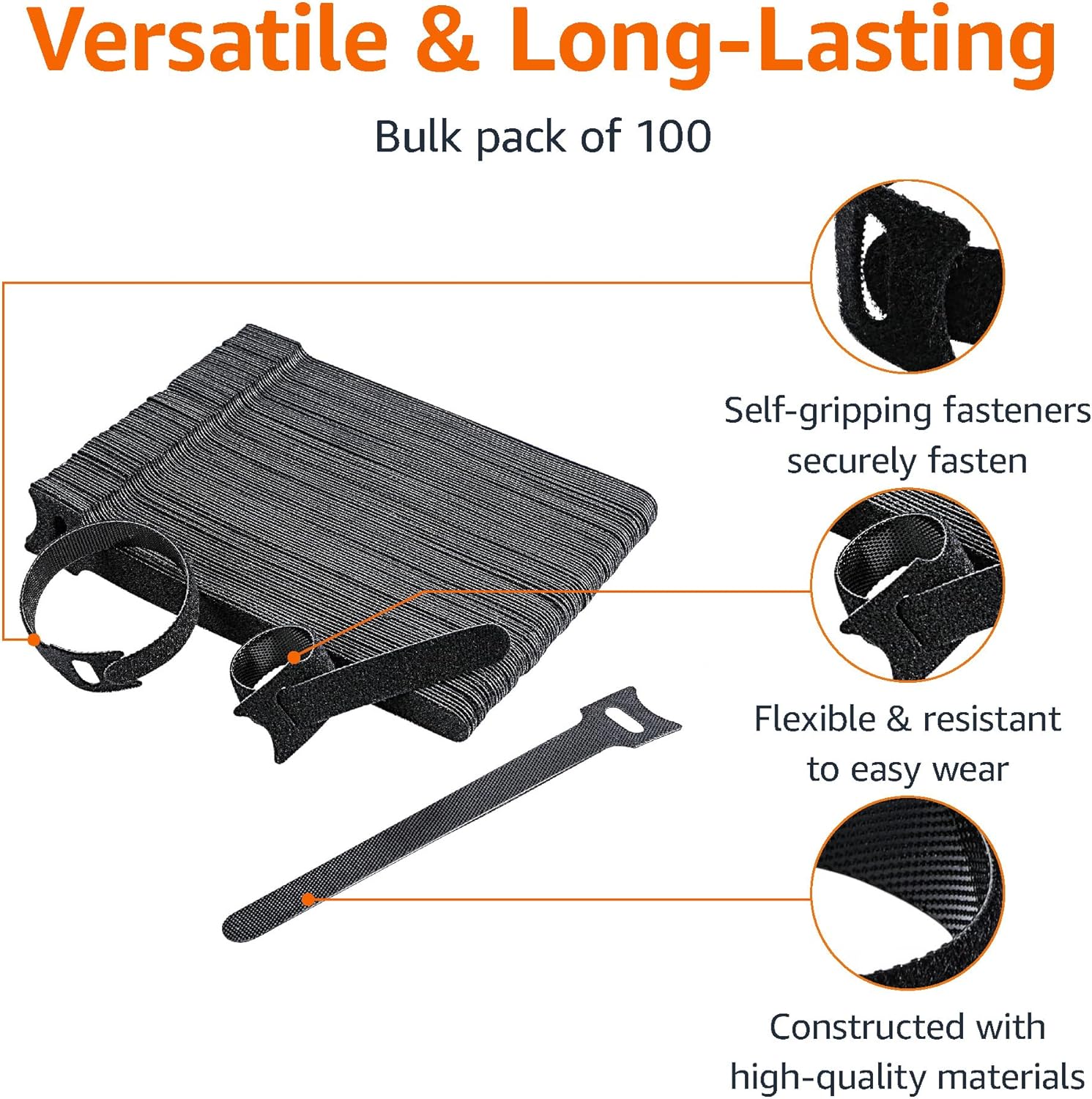 Amazon Basics Adjustable Cable Straps, Ties, Cord Organiser, 100 Count, Black