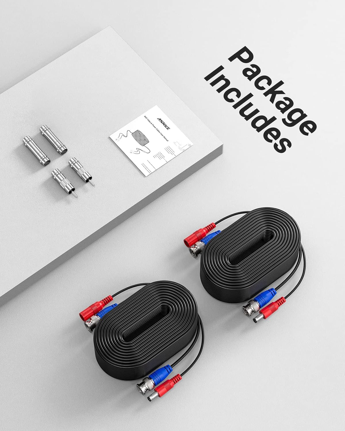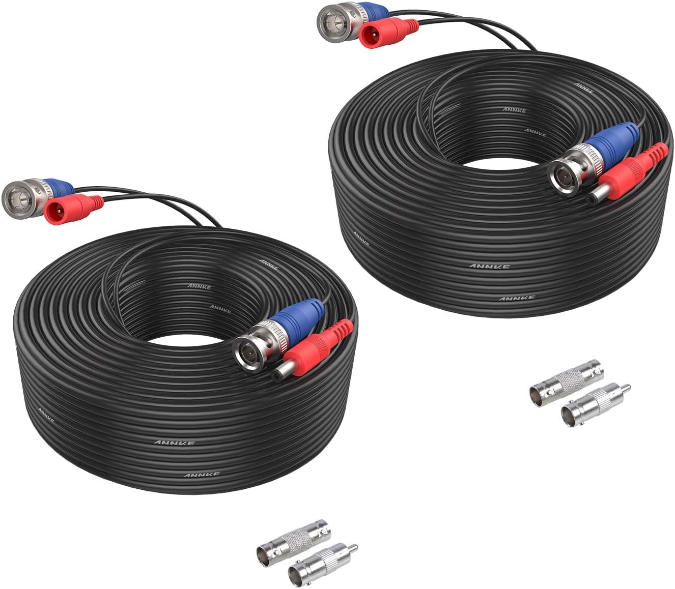 ANNKE 2 Pack 30M/100 Feet CCTV Cable, 2-in-1 Video Power Extension Cable with BNC Connectors and RCA Adapters for Security Camera DVR System (Black)