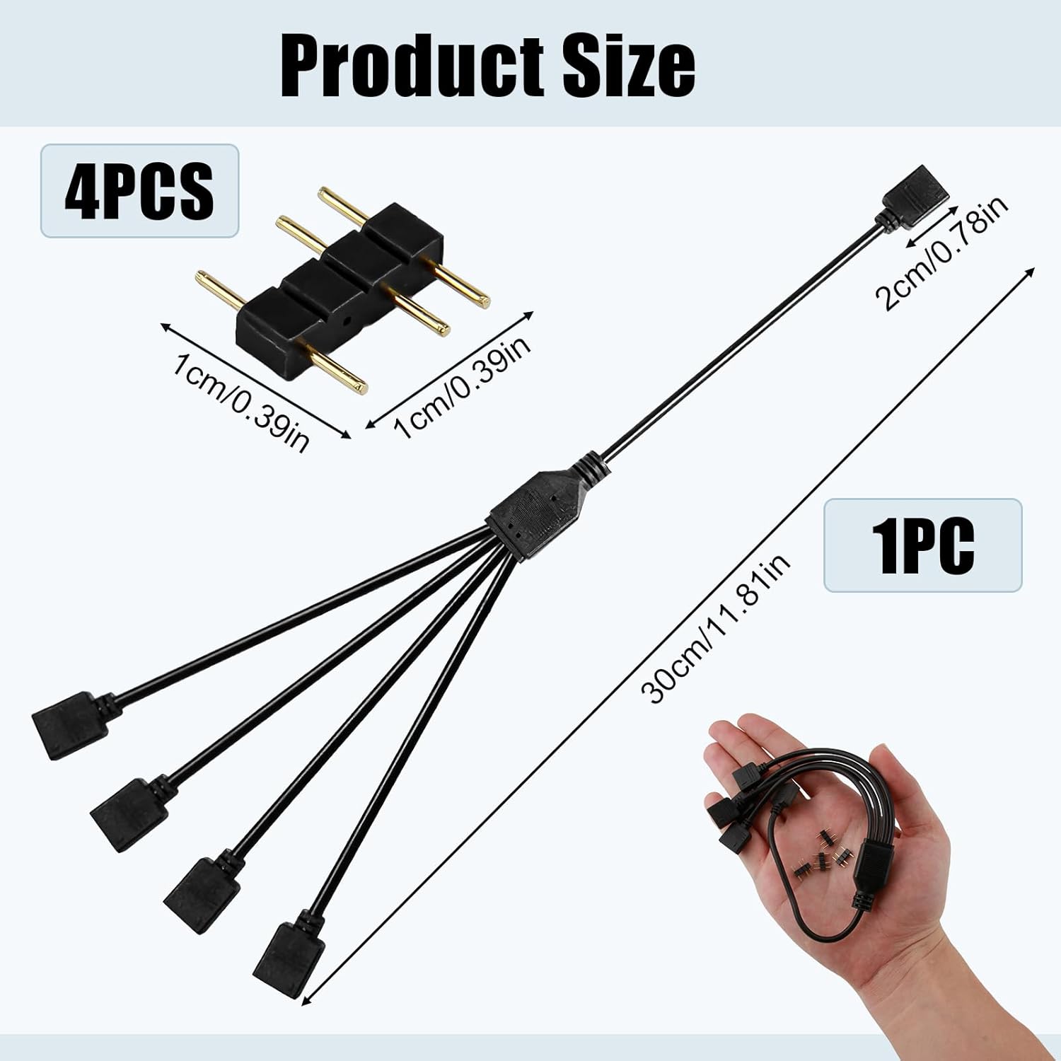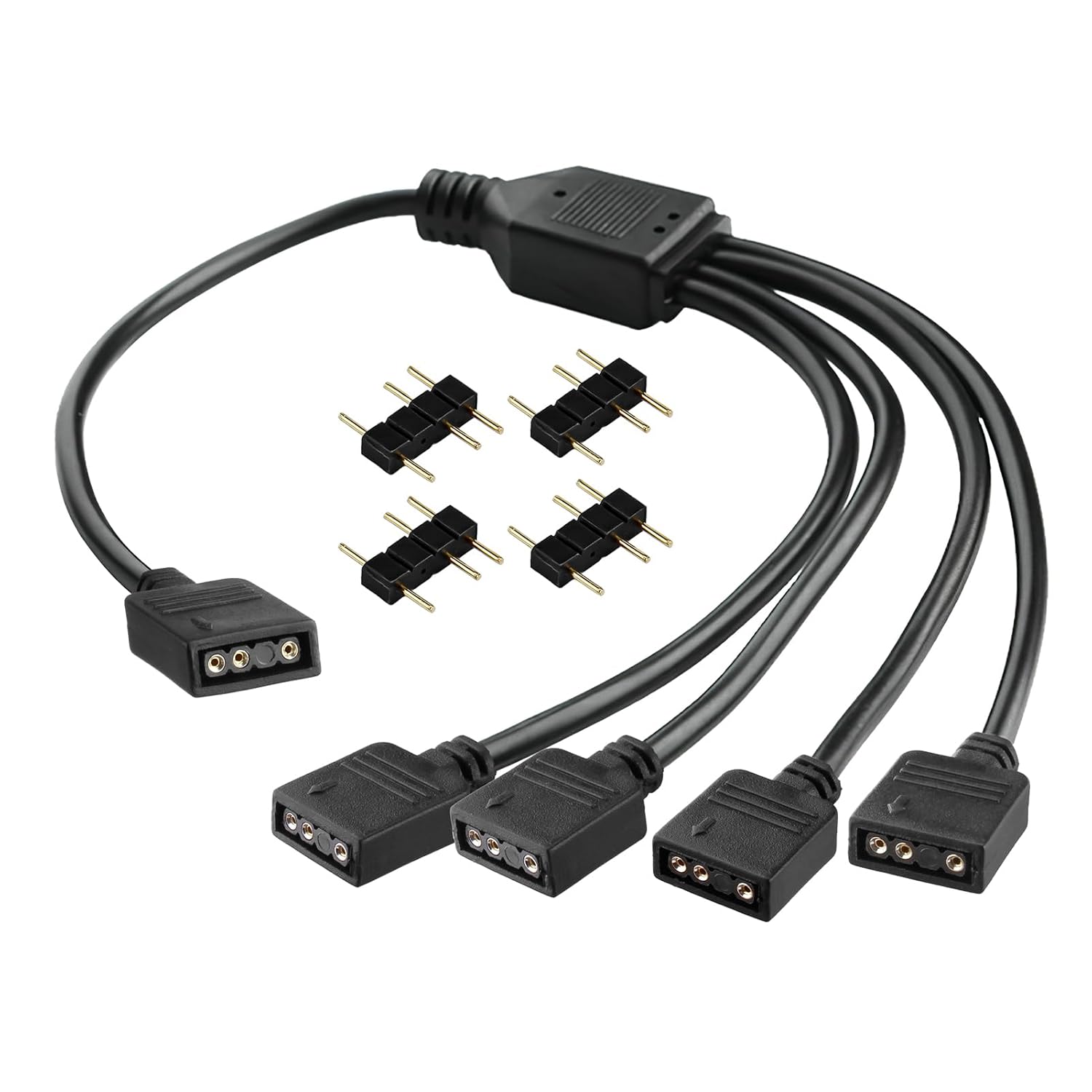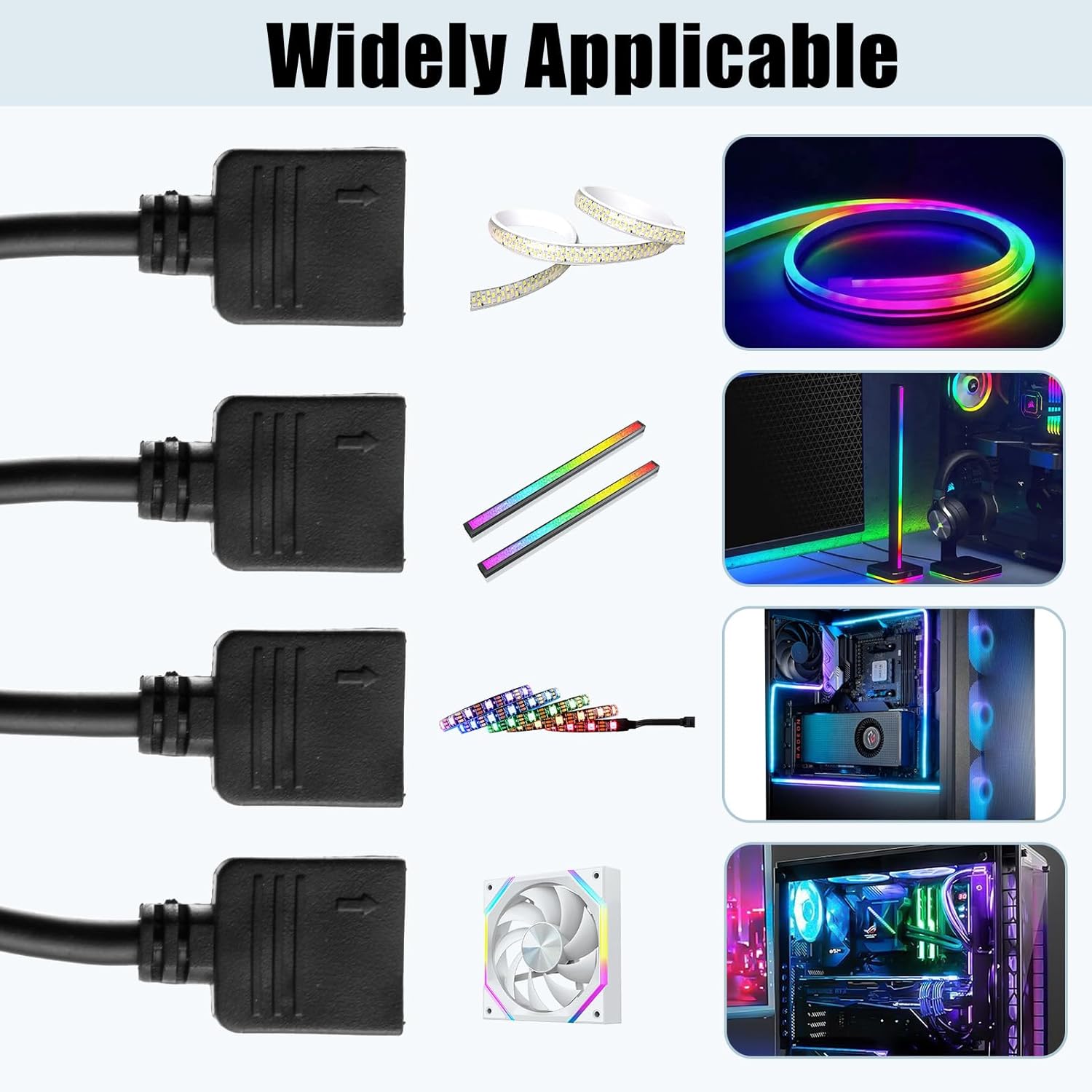 ARGB Splitter Cable 1 to 4 Fan Splitter 5V 3 Pin Addressable RGB LED Sync Cable Extension 30cm LED Strip Connectors for Computer Chassis Expand CPU Cooler and 5V ARGB Fan