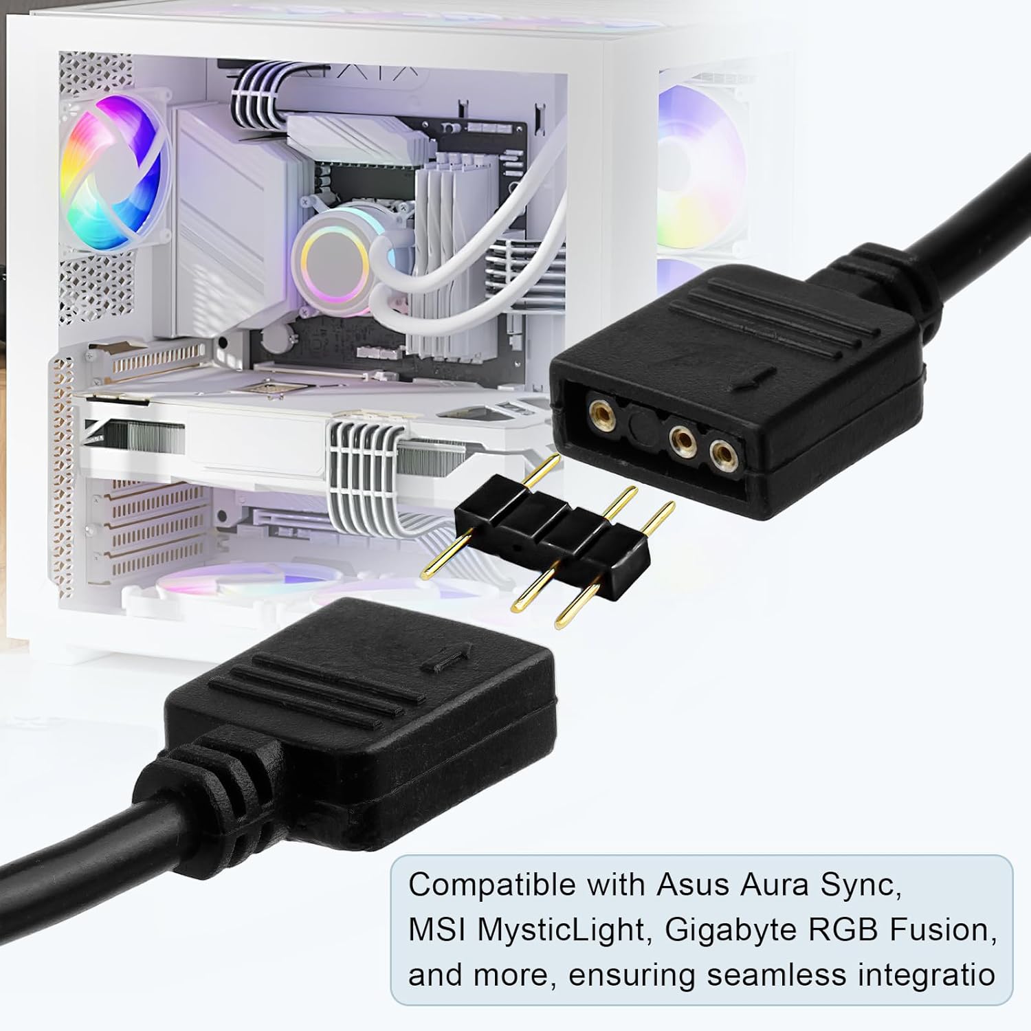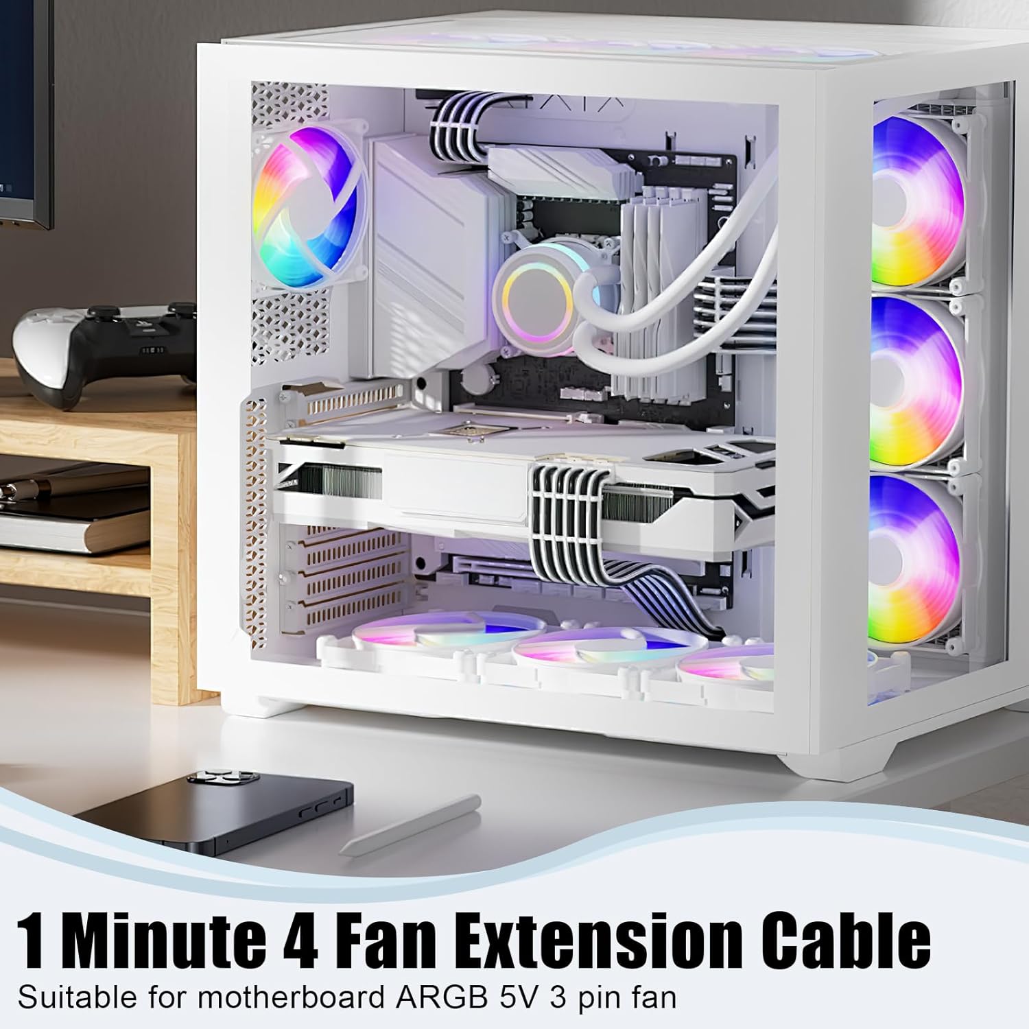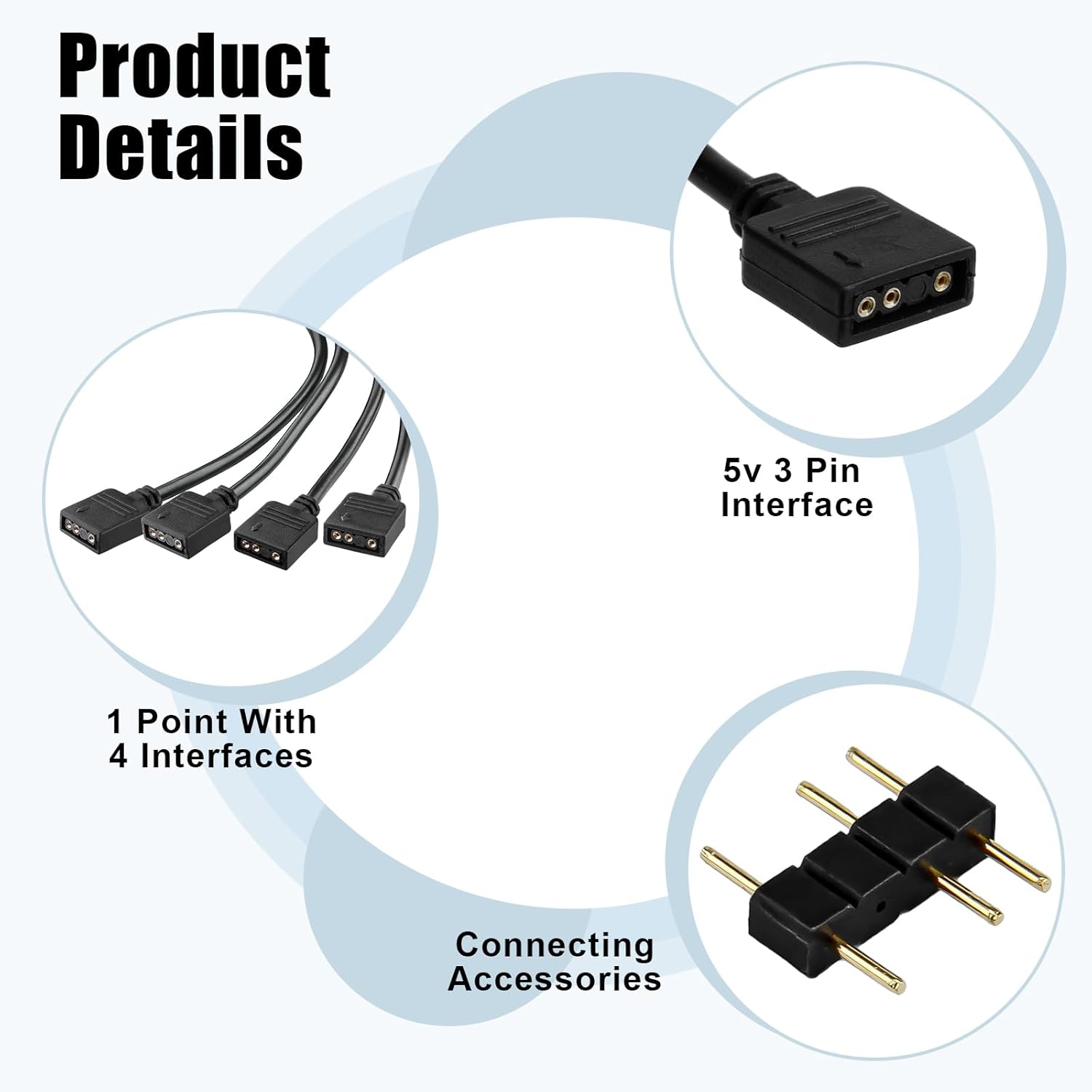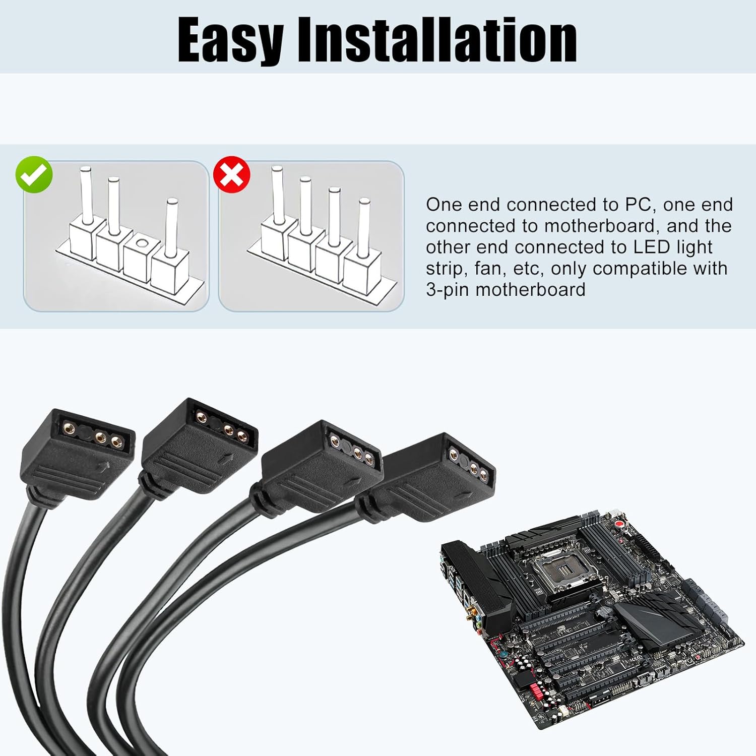 ARGB Splitter Cable 1 to 4 Fan Splitter 5V 3 Pin Addressable RGB LED Sync Cable Extension 30cm LED Strip Connectors for Computer Chassis Expand CPU Cooler and 5V ARGB Fan