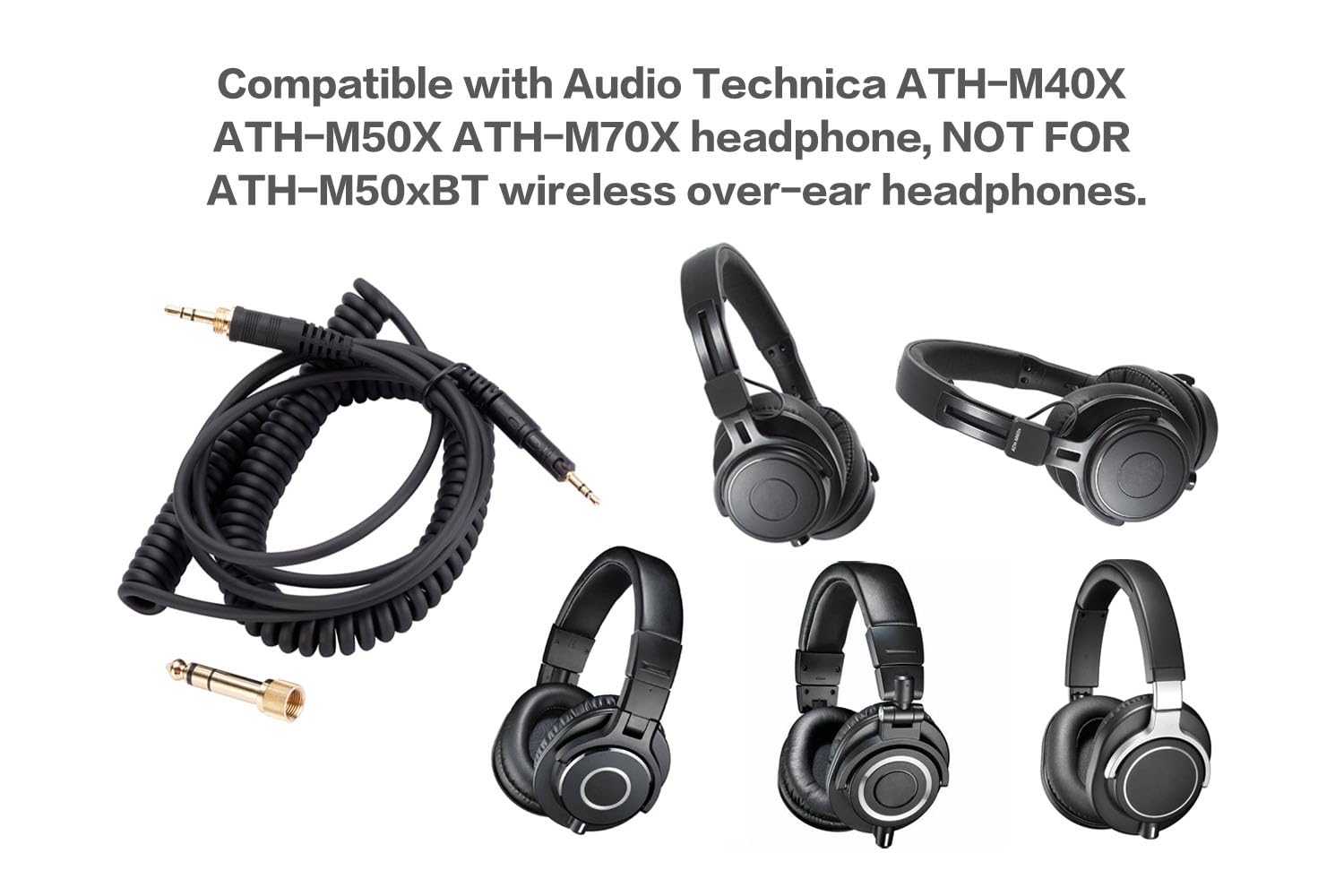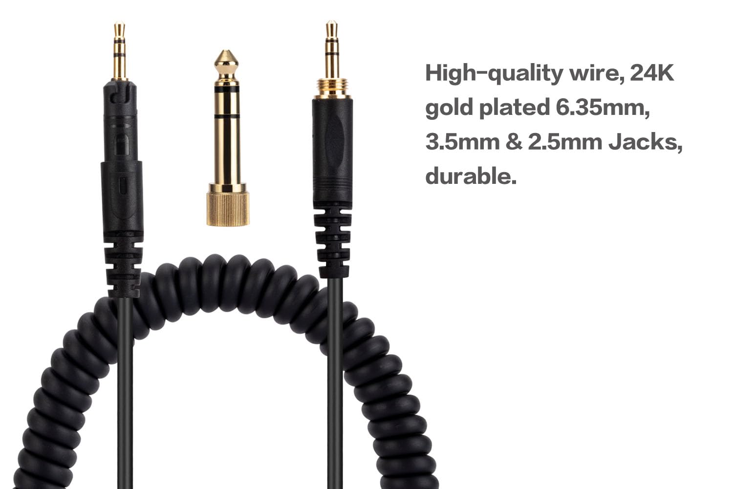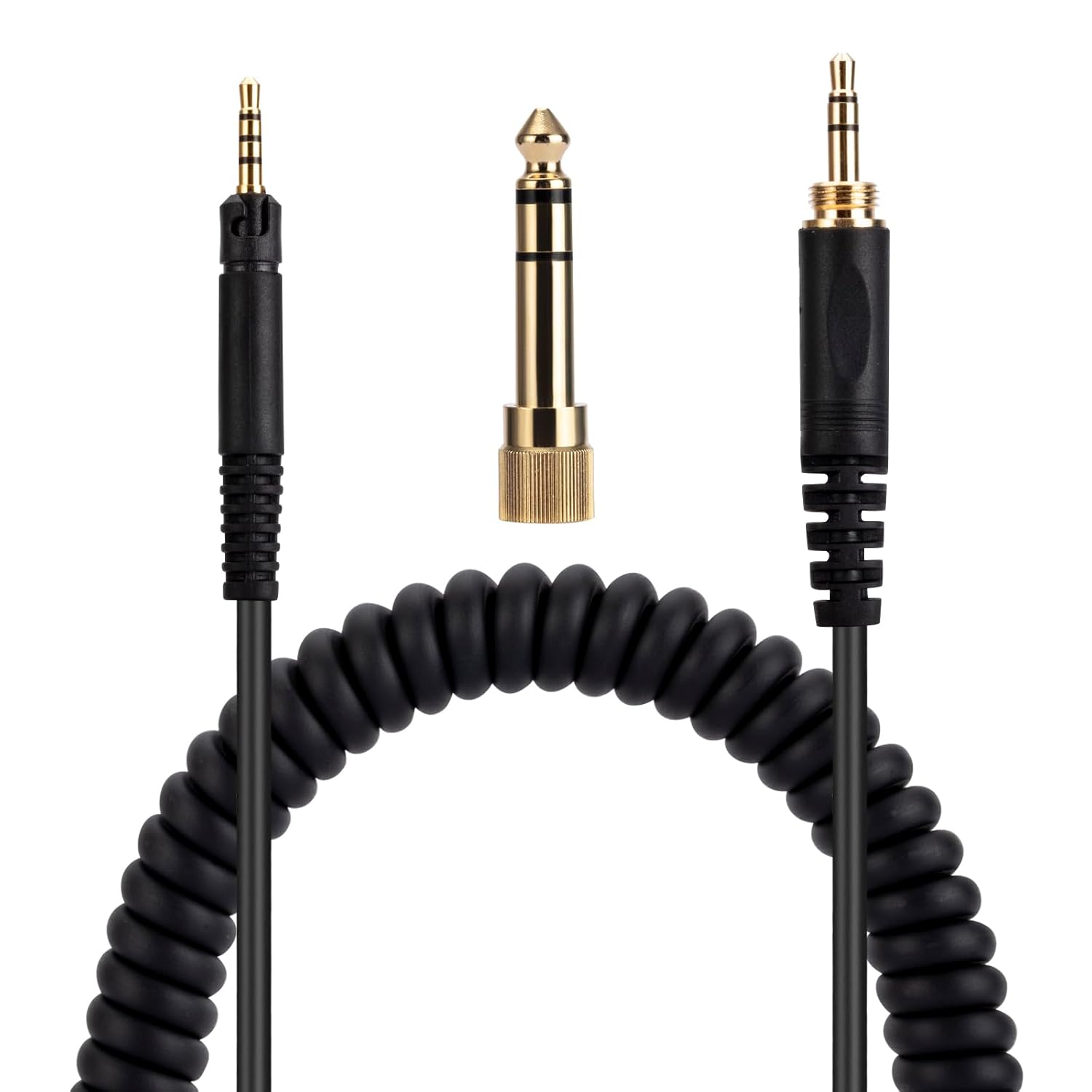 ATH-M40X M50X M70X Replacement Audio Cable, Compatible with Audio Technica Headphones, 3.5mm (6.35mm) to 2.5mm Male Stereo Jack Cord, coiled cable, 4.6 Ft (1.4 meters), Black