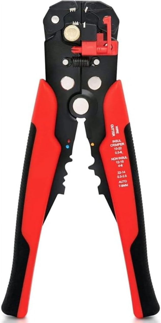 Automatic Wire Stripper, 3 in 1 Self-Adjusting Wire Cutter For Electrical Wire Stripping, Cable Cutting, Crimping Tool from 10-24 AWG Red