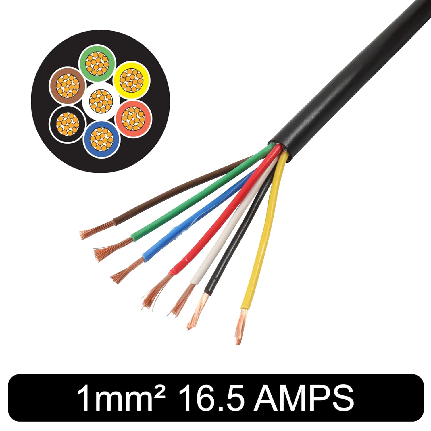 Automotive 7 Core Cable 12v 24v Trailer Caravan Wire (16.5 AMP Rated 1mm²) 5/10/30/50/100 Metre (10 Metre Coil)
