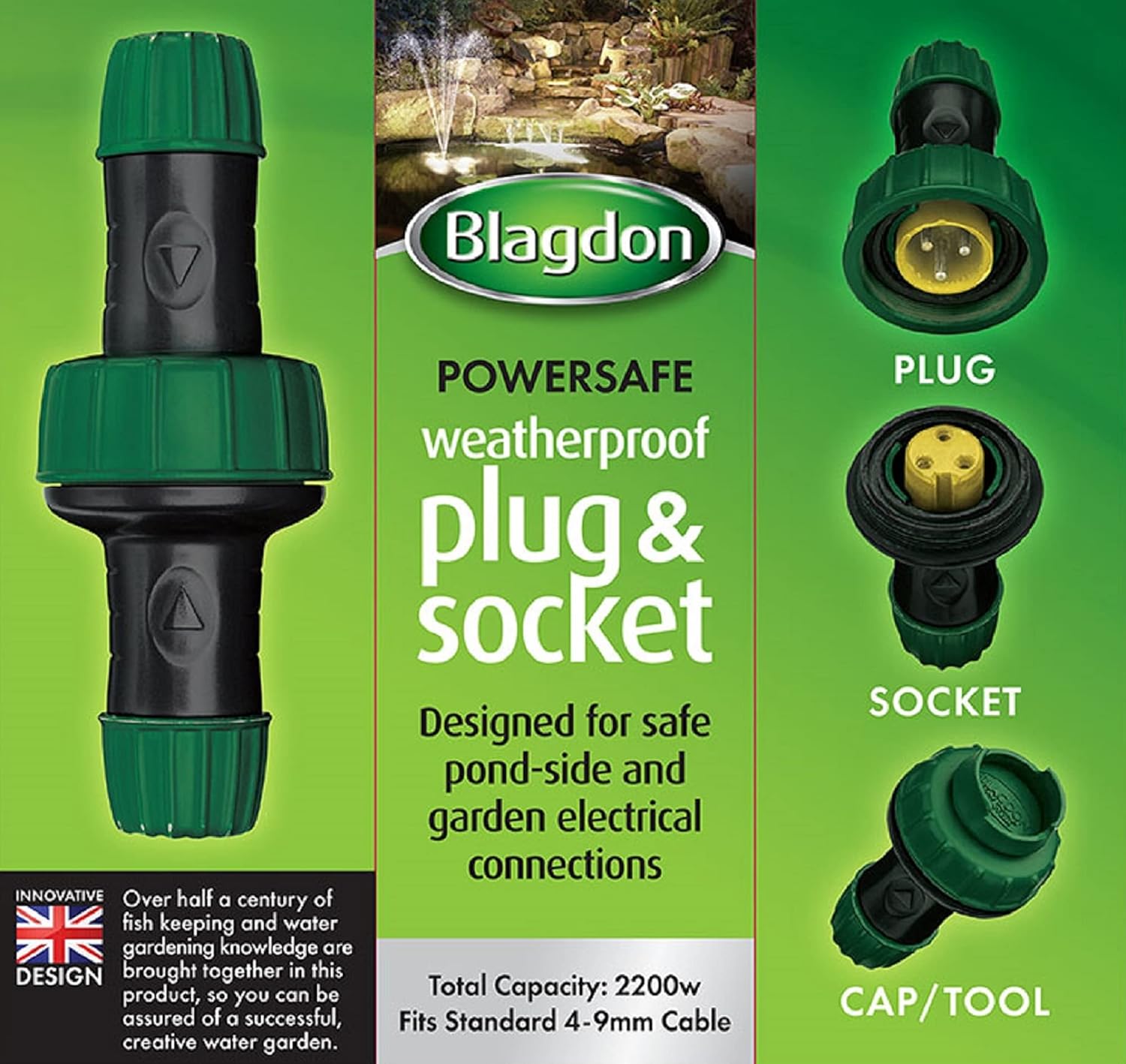 Blagdon 1040198 Powersafe Garden & Pond Weatherproof IP56 Outdoor Electrical Safety Plug & Socket Cable Connector, Capacity 2200 Watt, 4mm-9mm diameter,Black