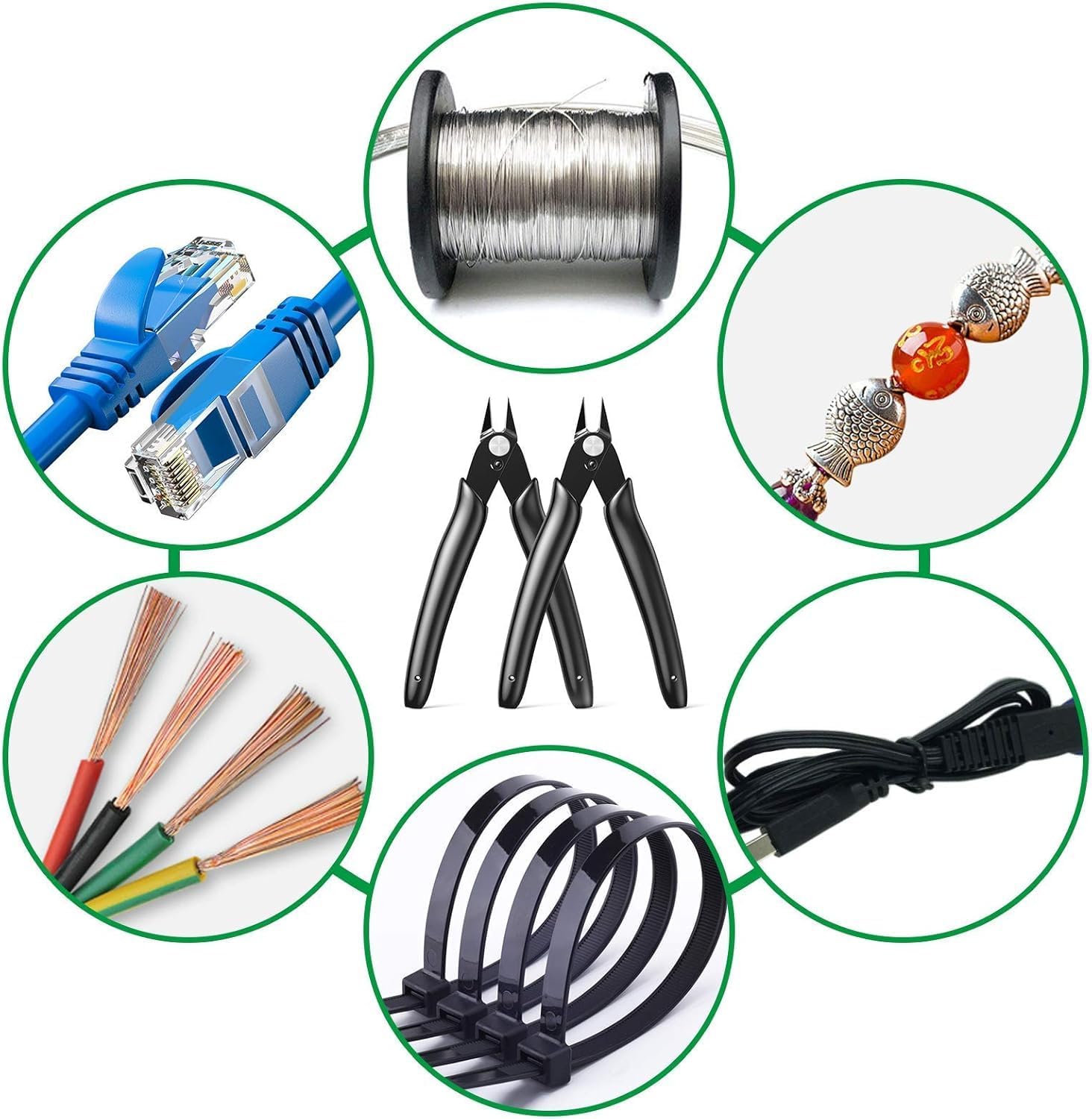 BOENFU Wire Cutter 2 Pack Precision Flush Cutters Side Cutter Small Cable Snips Diagonal Pliers for Cable Tie, 3D Print, Plastic Models, Jewelry, Electronics, Black, 5 Inches