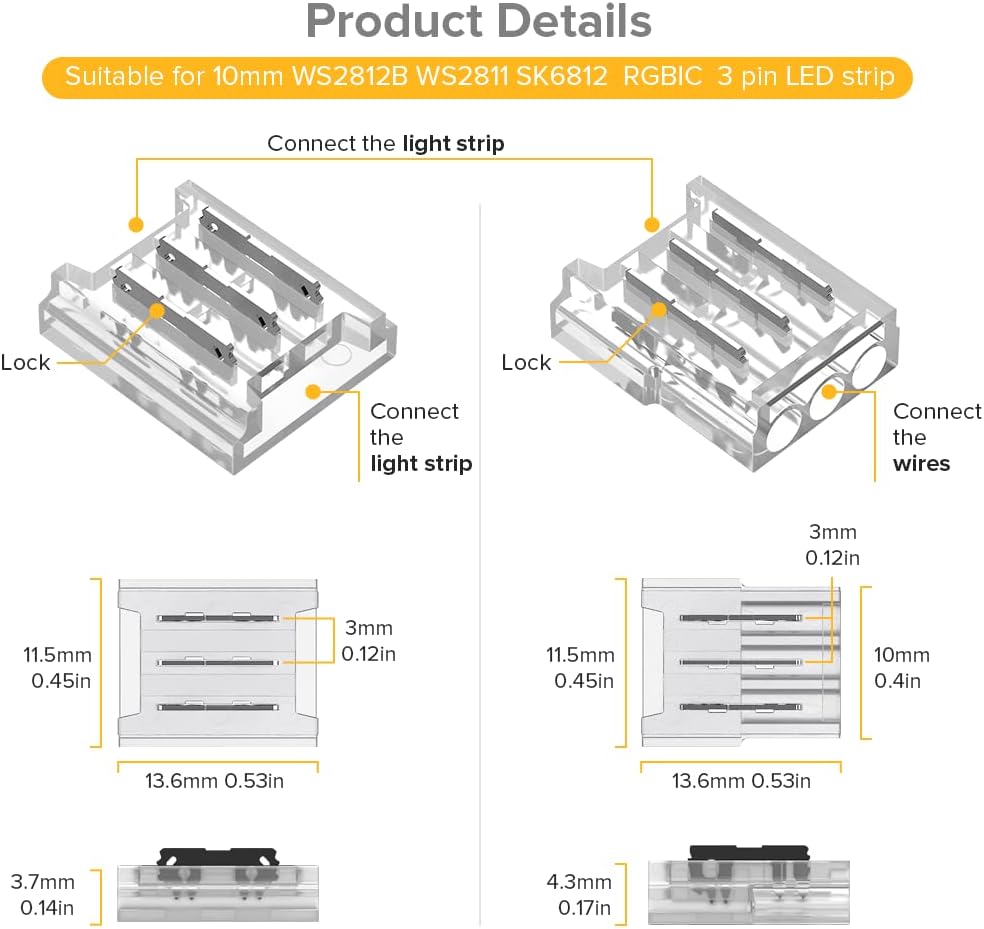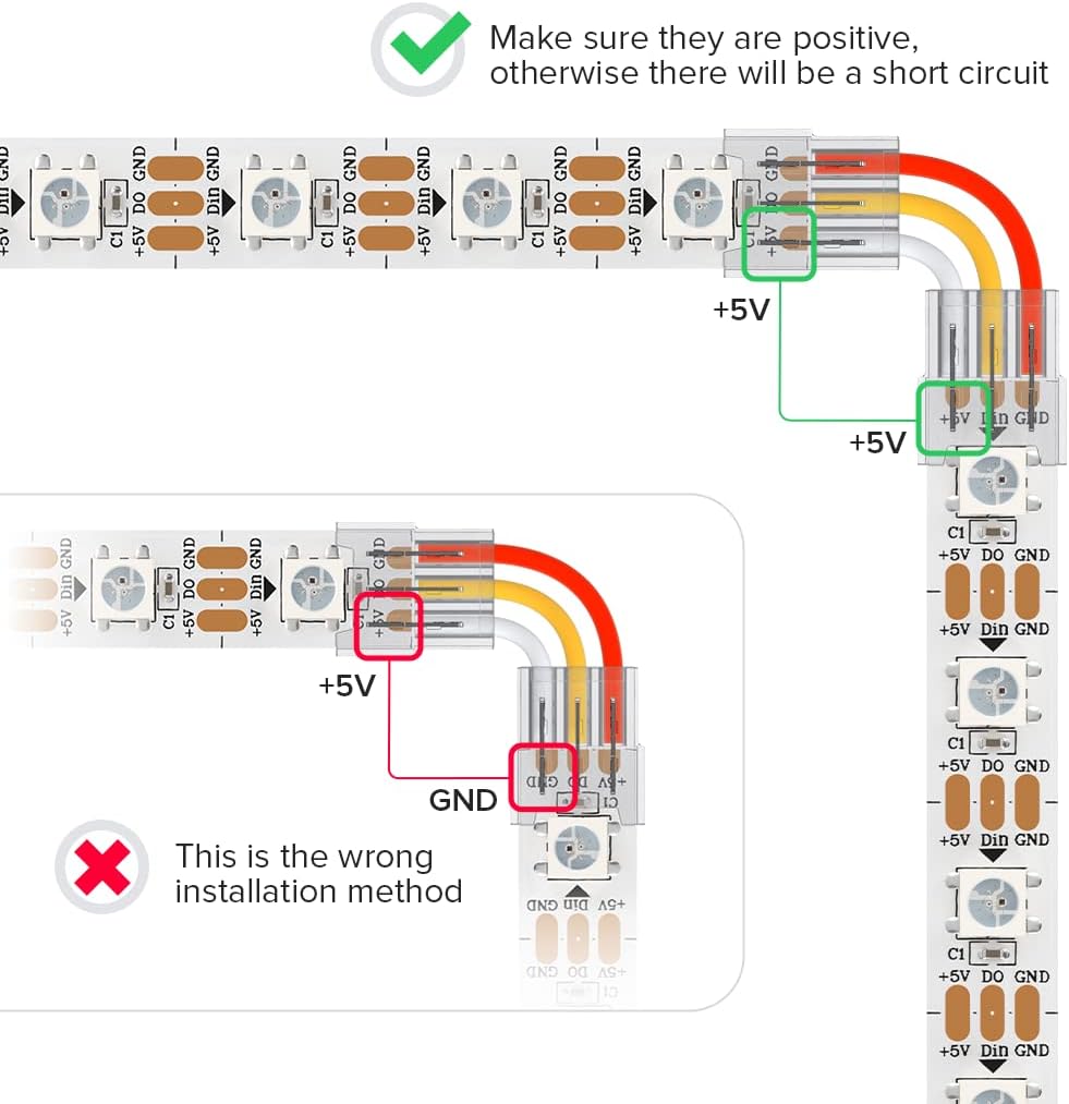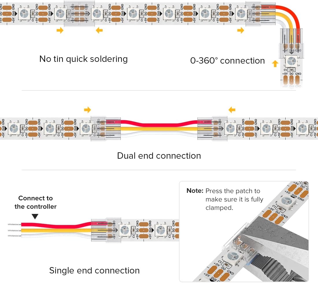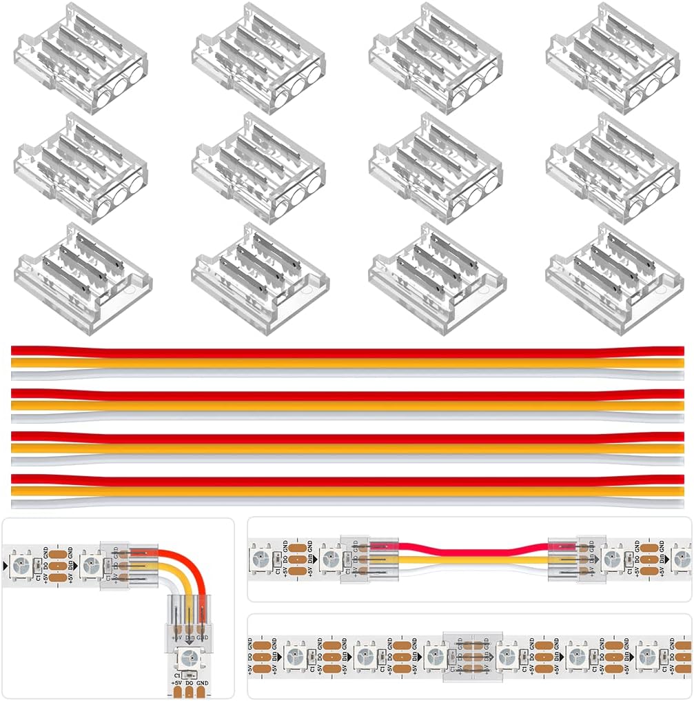 BTF-LIGHTING SMD 3pin 10mm Connector Kit 12pcs Connector Transparent 4pcs 15cm Long 22AWG Extension Cable Board to Cable/Soldering Plate Without Slot and 3pin LED Corner Connection