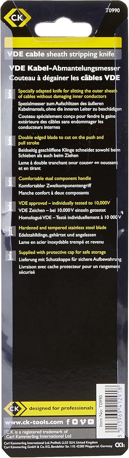 C.K T0990 VDE Cable Sheath Stripping Knife, Yellow/Red