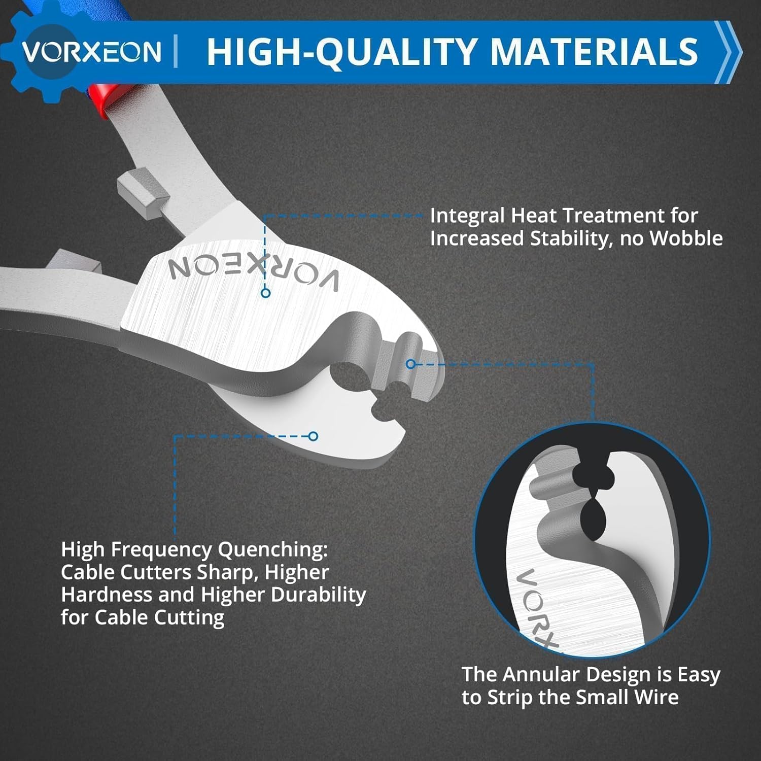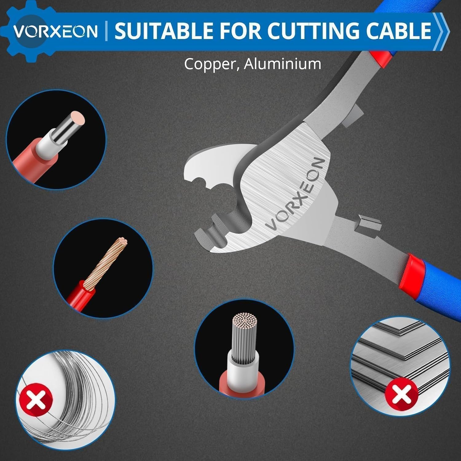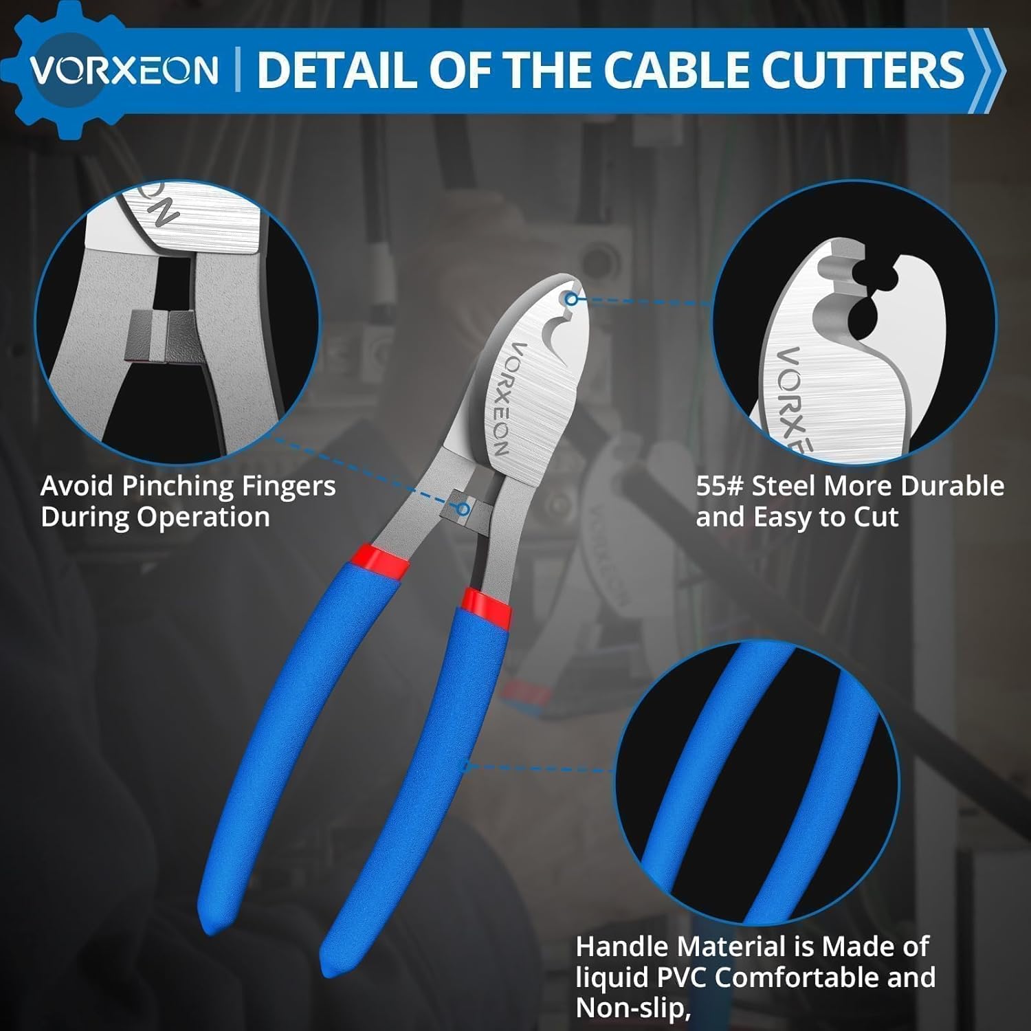 The VORXEON 6-inch cable cutter is designed for durability and precision, making it an essential tool for various cutting tasks. Made from 55 # steel, it offers high hardness and toughness, ensuring reliable performance. The cutter features a frosted anti-slip long handle for better grip, reducing hand fatigue during use.