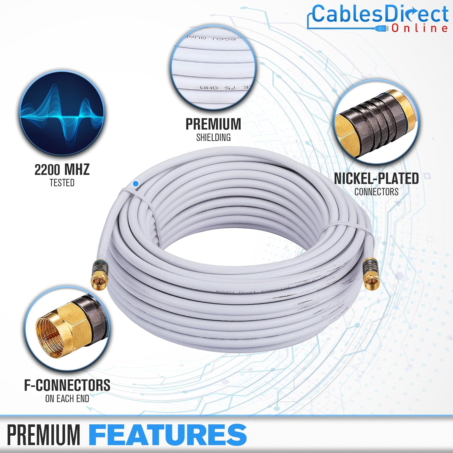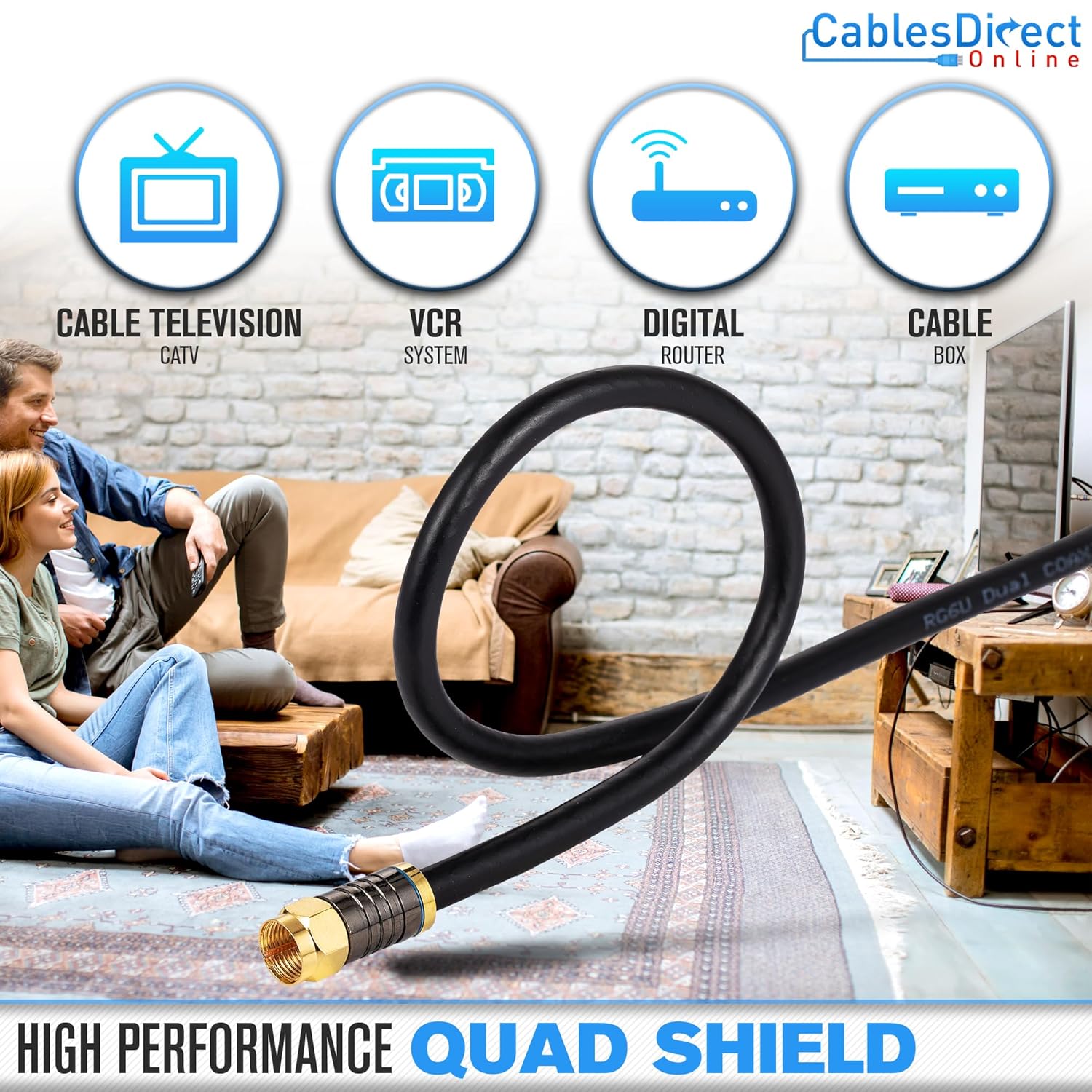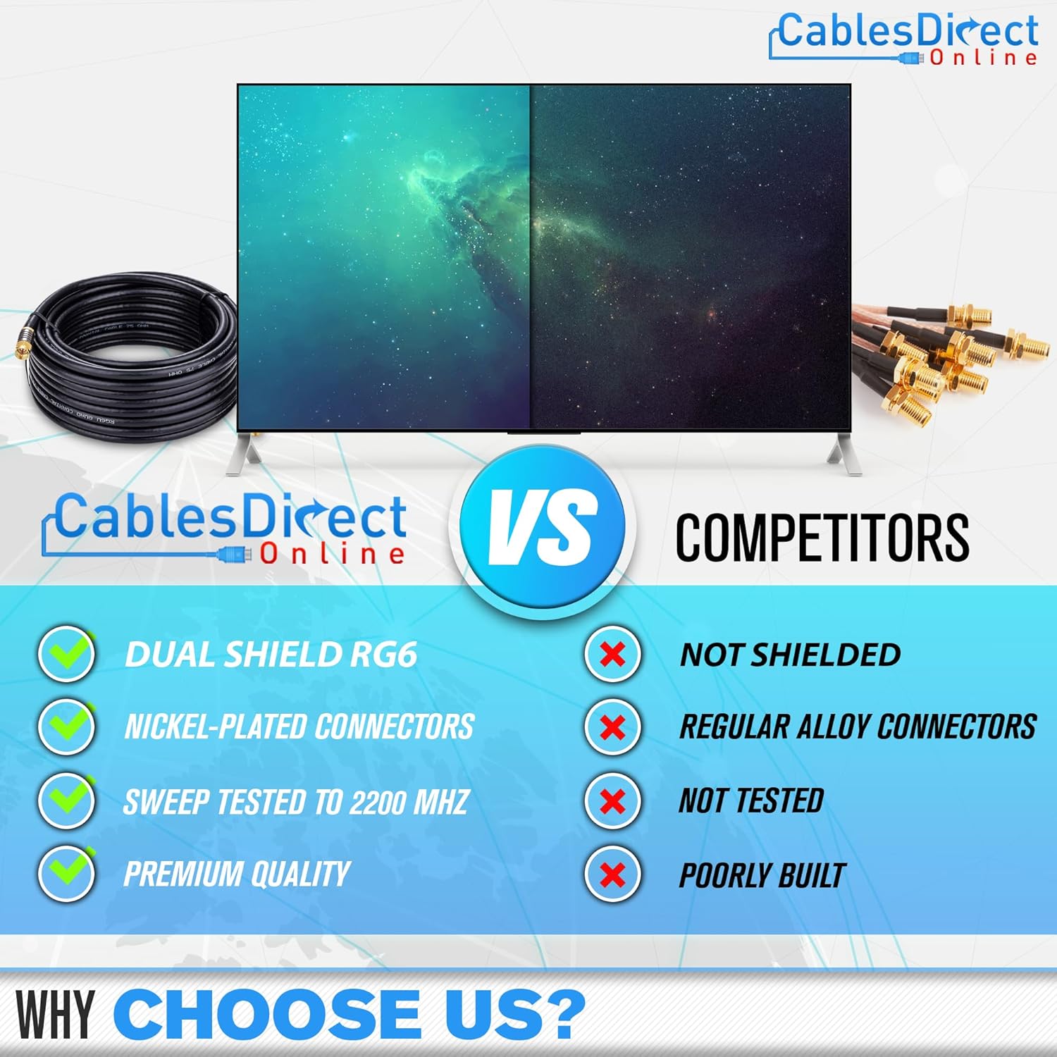 Cables Direct Online 3M Black RG6 Coax Cable Dual Shield Outdoor/Indoor Coaxial BNC Extension Wire For Satellite Dish Cable TV Antenna