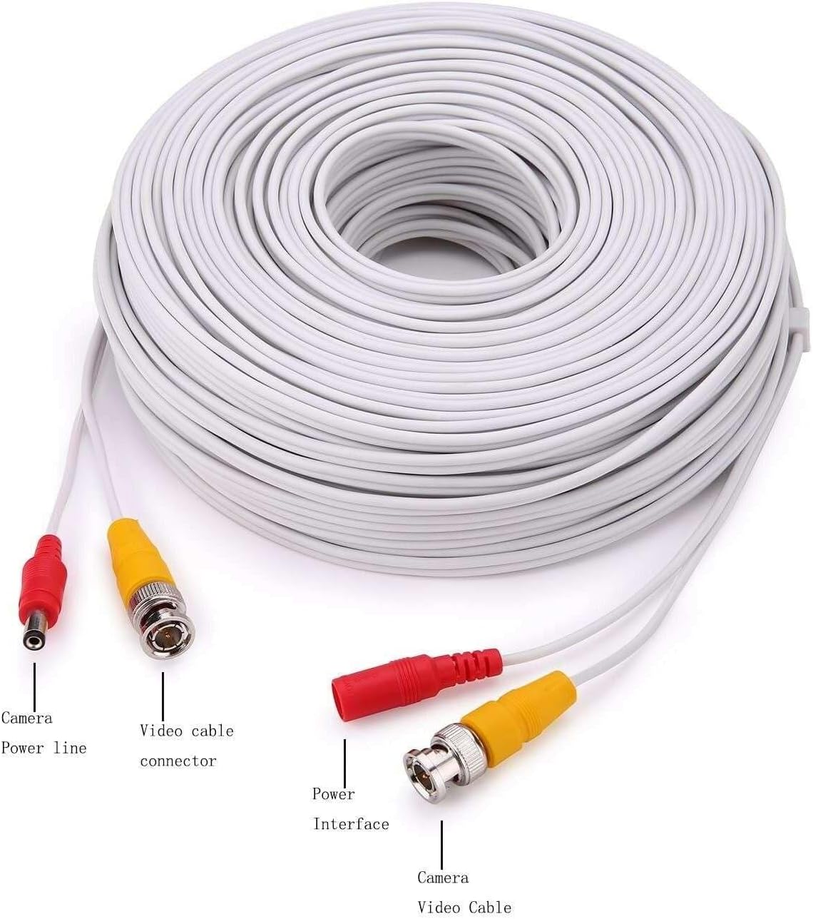 Cables Direct Online 3M White Premade BNC Video Power Cable/Wire for Security Camera, CCTV, DVR, Surveillance System, Plug & Play