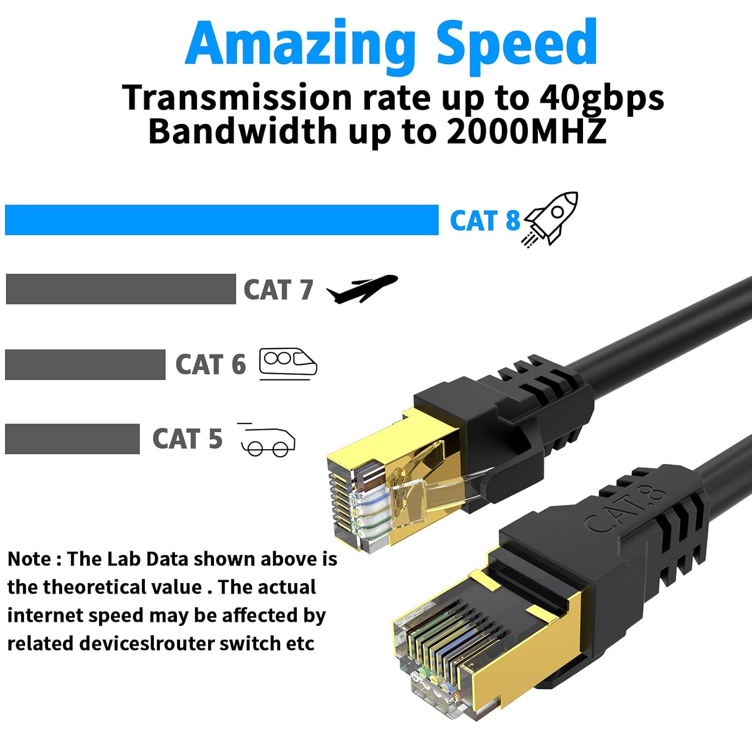 This cable is faster than previous versions such as Cat7, Cat6, and Cat5, making it a great choice for high-demand applications.