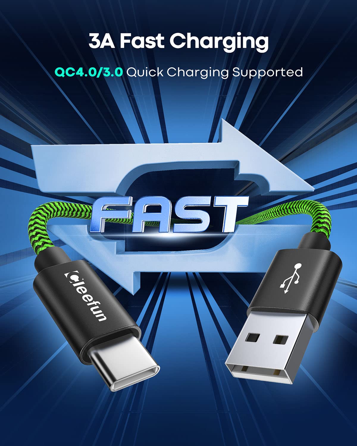 CLEEFUN 5m/16ft Durable Extra Long USB C Cable, USB A to Type C Fast Charging Nylon Charger Lead for Galaxy S25 S24 S23 S22 S21 S20 S10 S9 S8 S21,PS5, Pixel, Switch,Laptops, Tablets