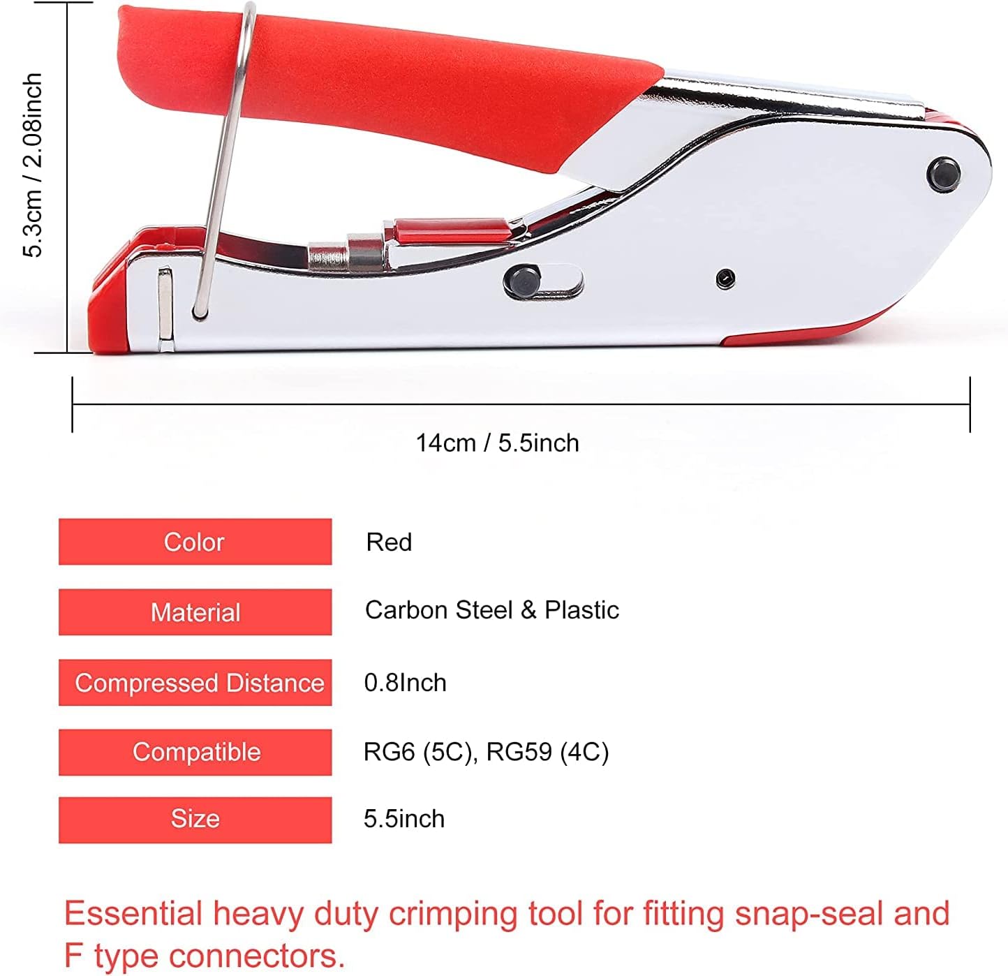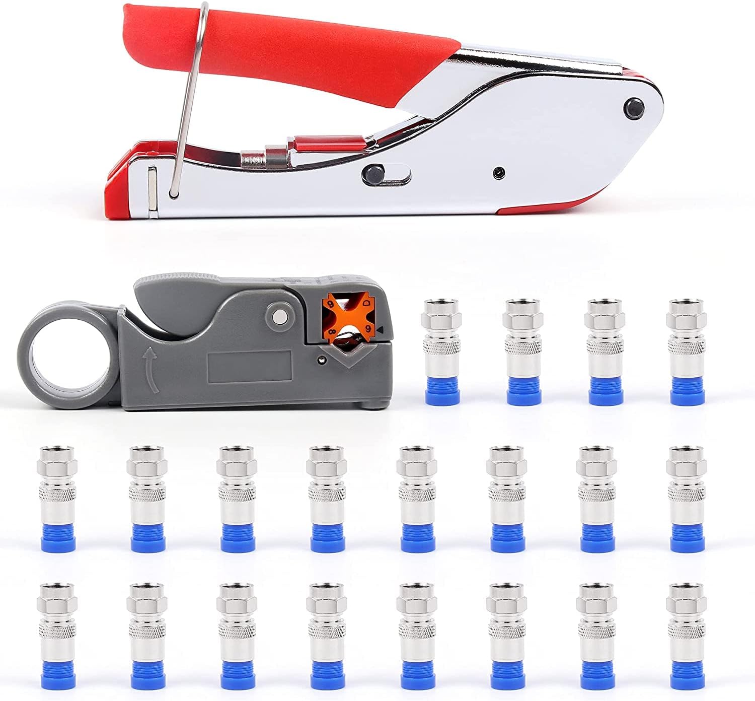 Coaxial Cable Crimping Set, F-Type Compression Crimp Pliers with 20 Crimp Connector Tool and Rotating Coaxial Cable Cutter for RG-58, RG-59, RG-62