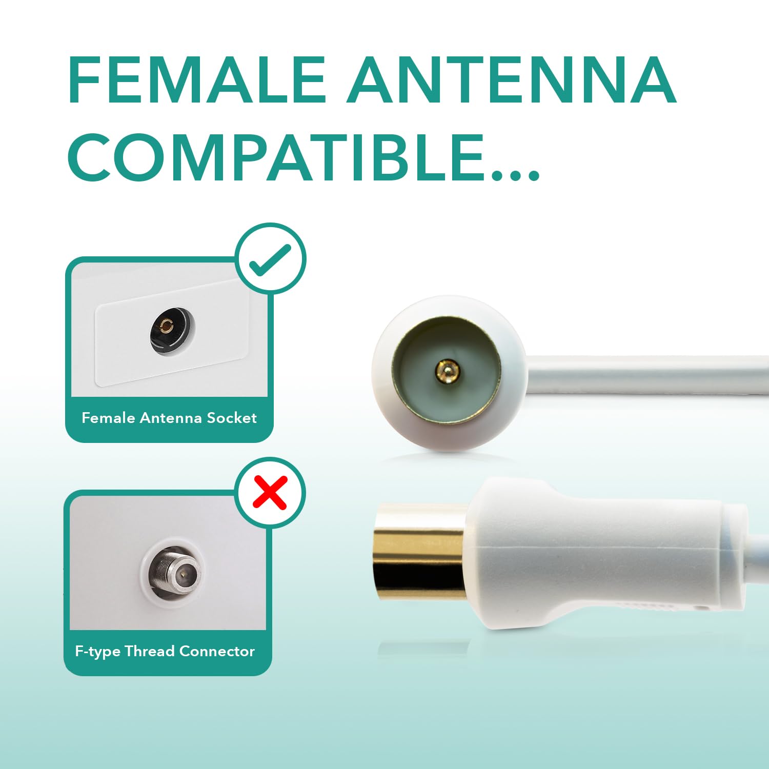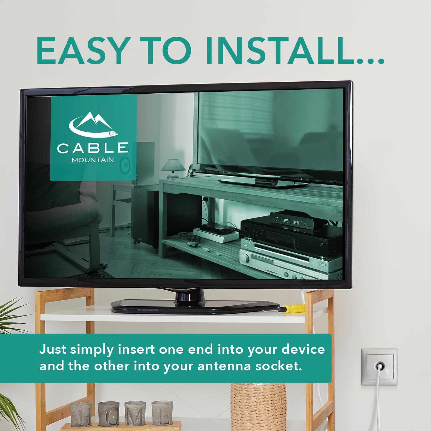 Coaxial TV Aerial Cable 1m – Male To Male Gold Plated RF Tv Cable with Adapter – Antenna AV Lead for Freeview, Freesat, Tv Antenna Extension – White Straight Connection