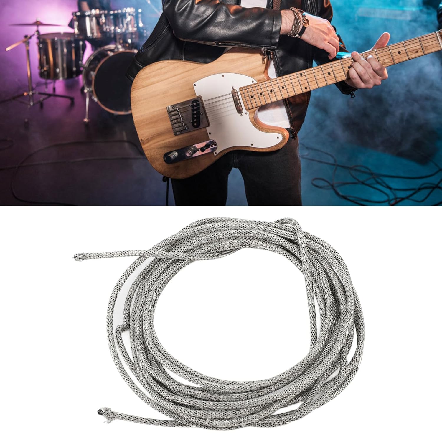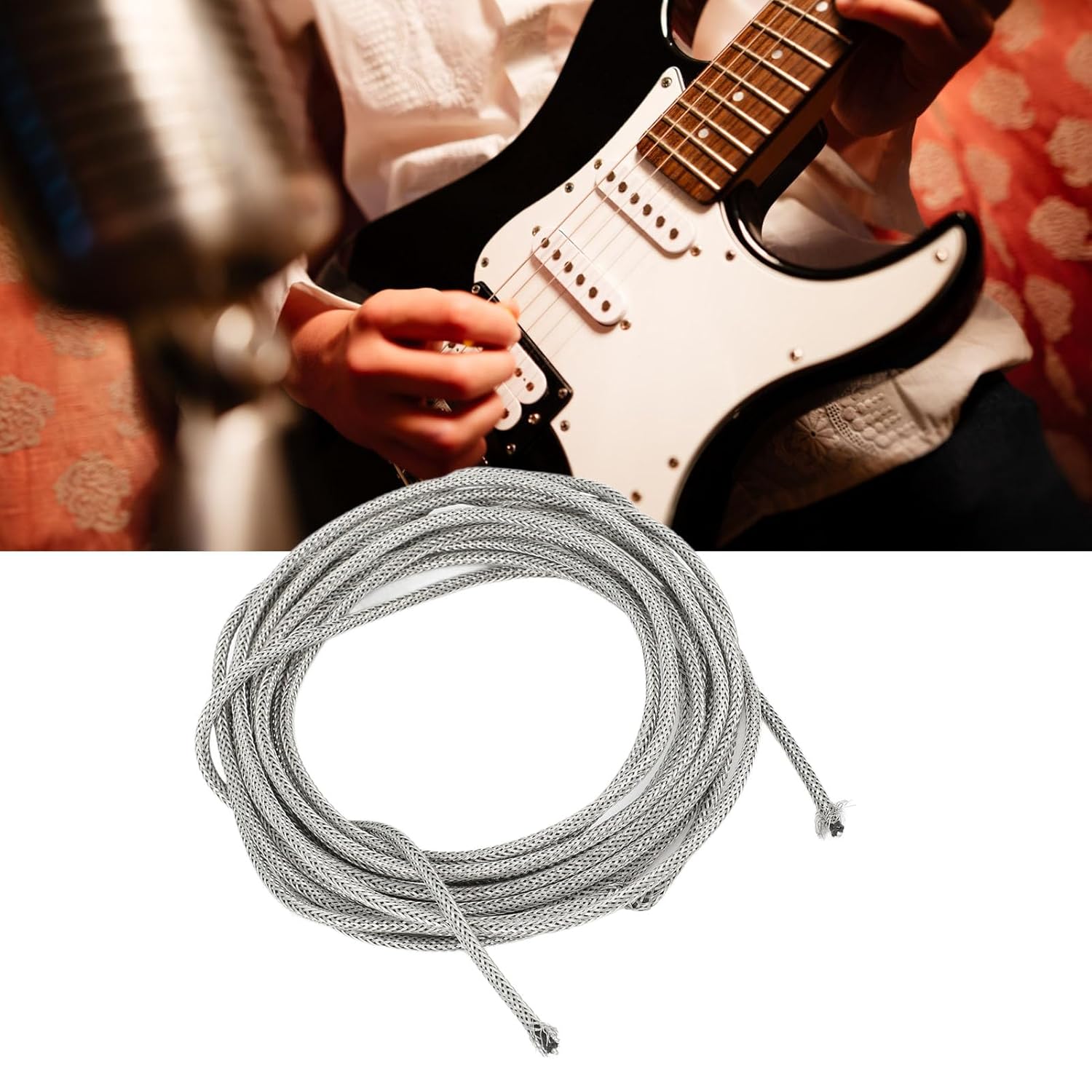 Cocoarm 22 AWG Braided Shield Cable Guitar Shield Wire, Tinned Copper, 3 meters, for Guitars and Musical Instruments, with Effective Noise Shielding, Long Service Life