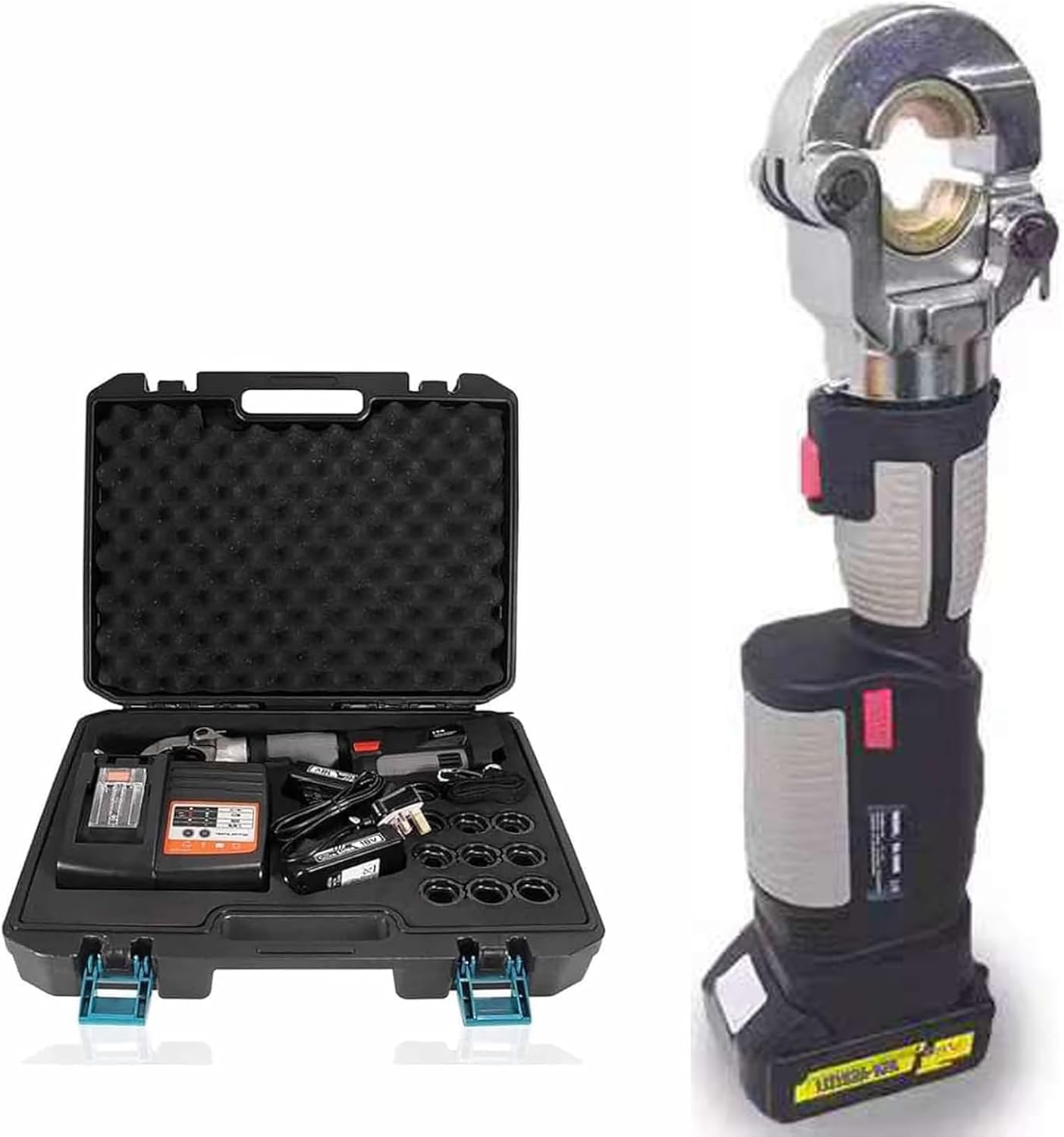 Cordless Cable Crimper & Crimping Set – Professional Electric Hydraulic Tool Kit for 16-300mm² Cable Lugs & Wires, Grey Cast Steel