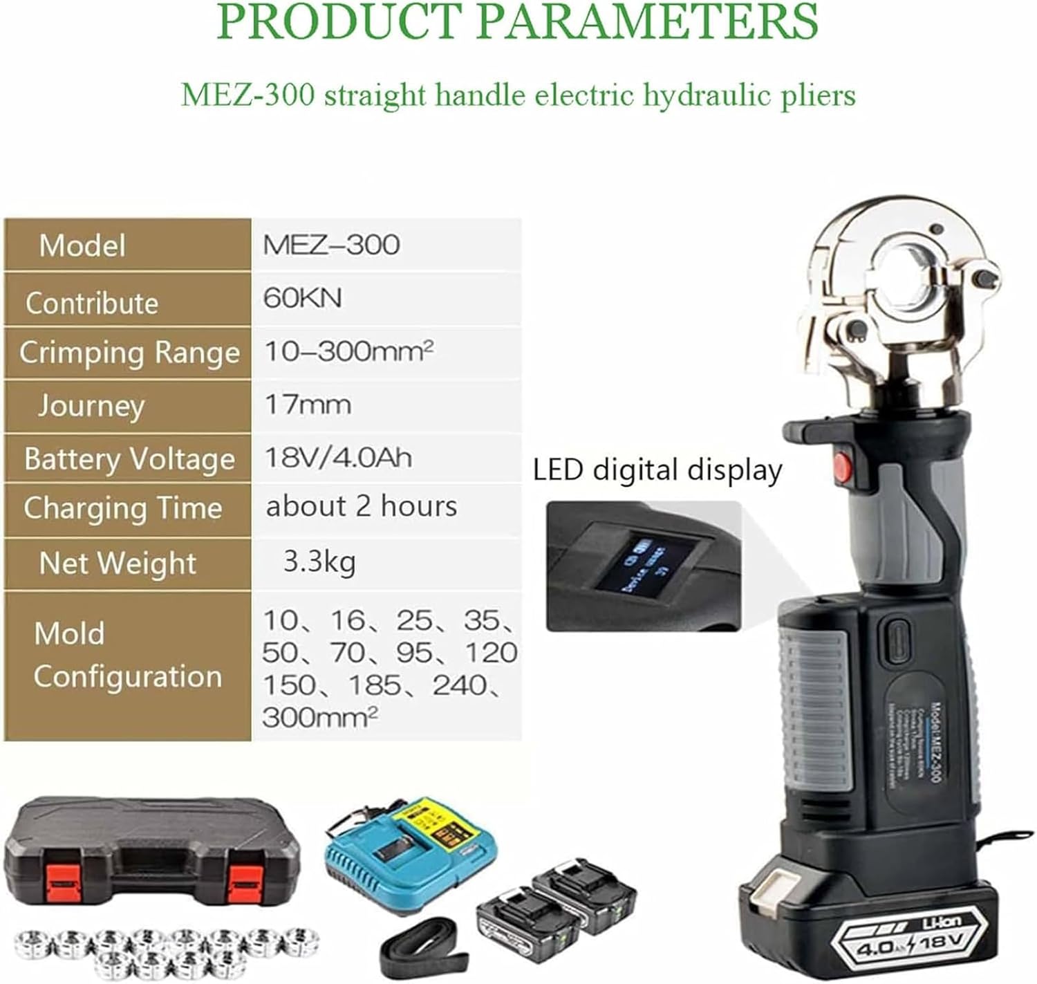 - Crimping range of 16-300 mm²