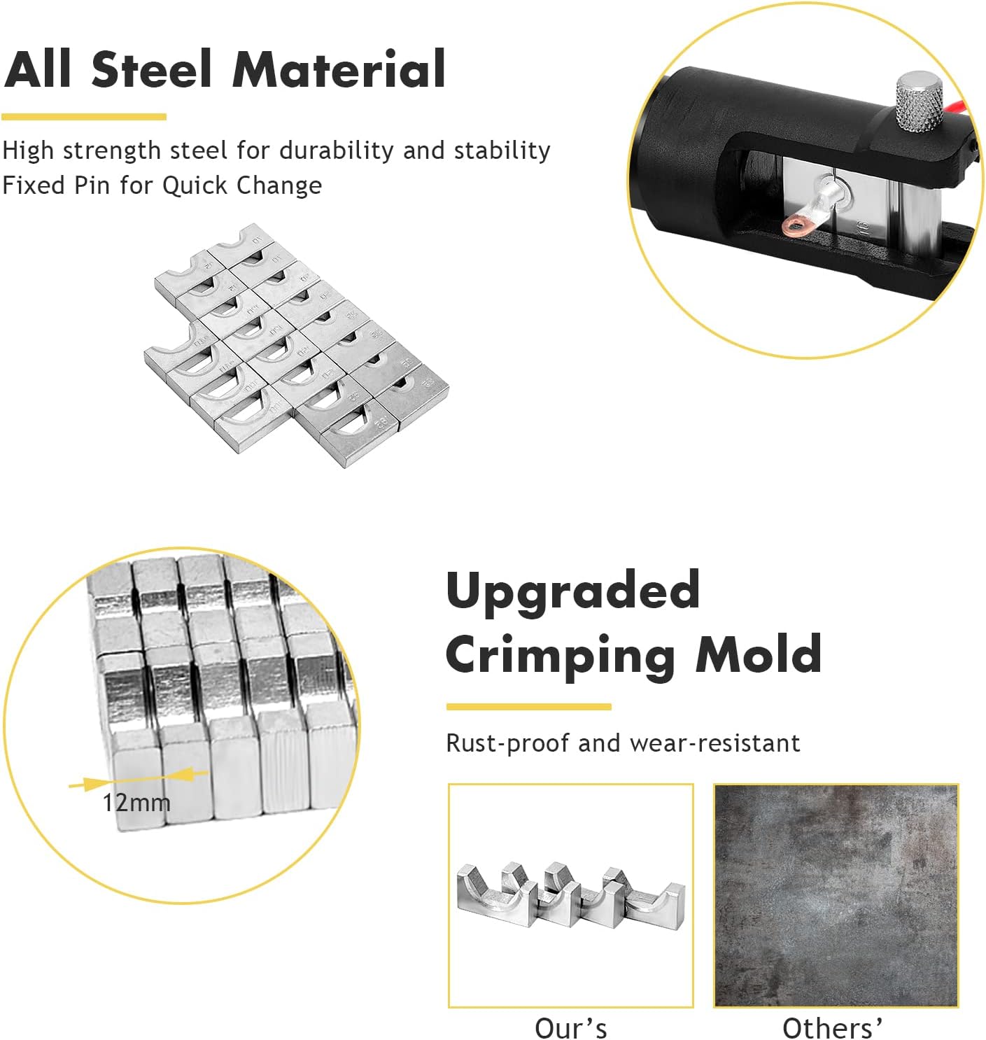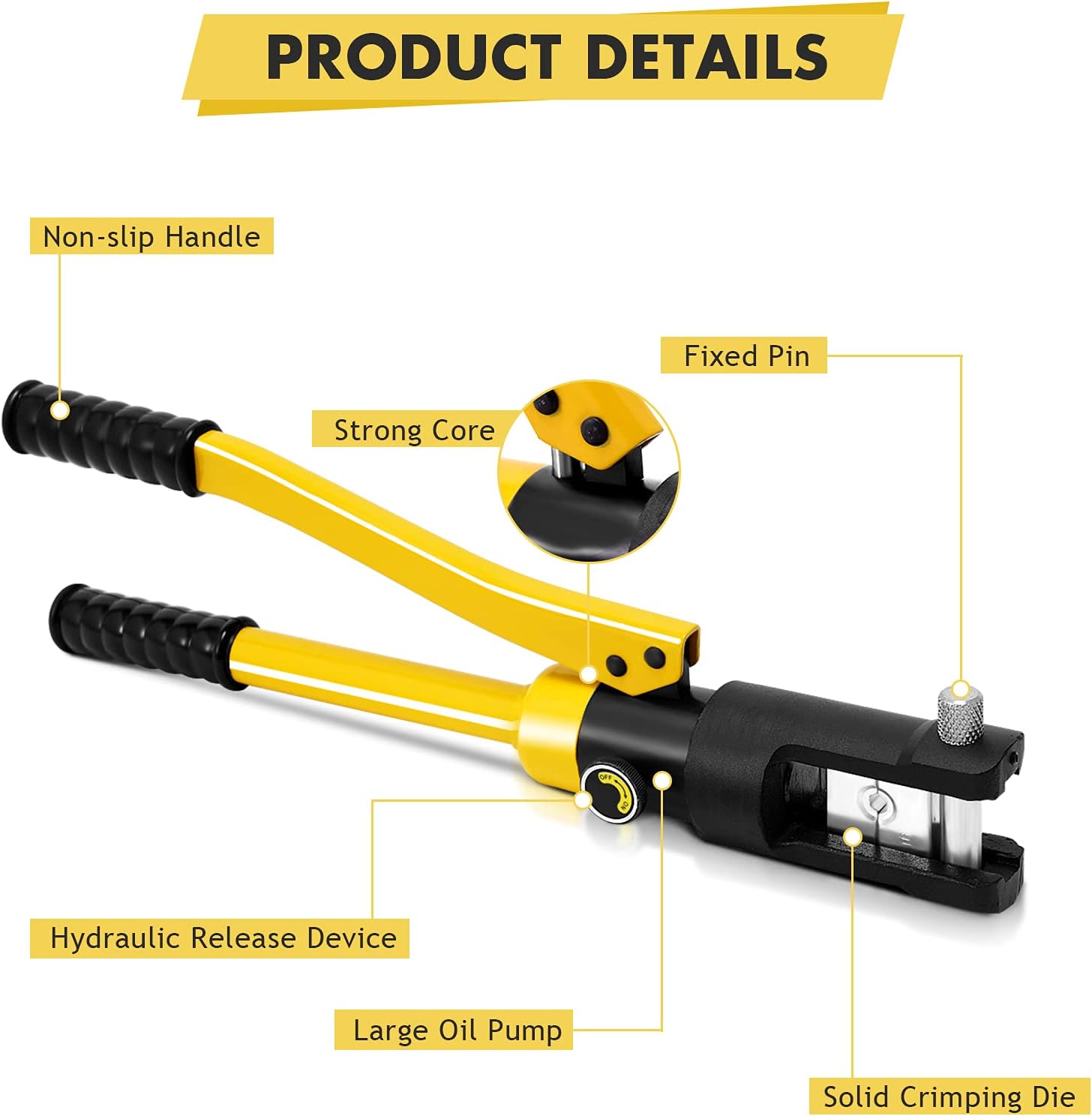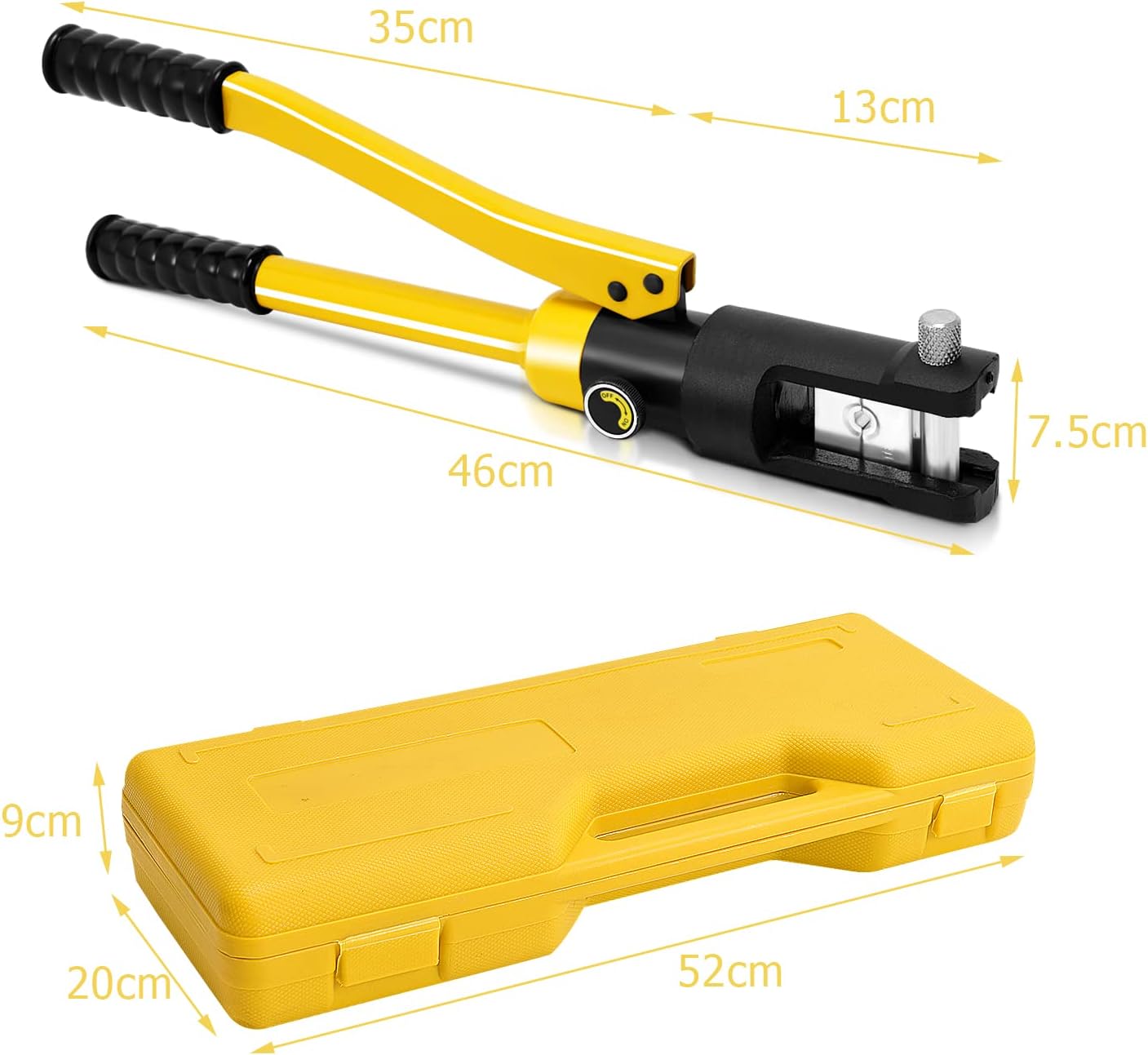The COSTWAY 16 Tons 11 Dies Hydraulic Crimper is designed for efficient crimping of electric battery cable lug terminals. This tool is suitable for various applications, making it a versatile addition to your toolkit.