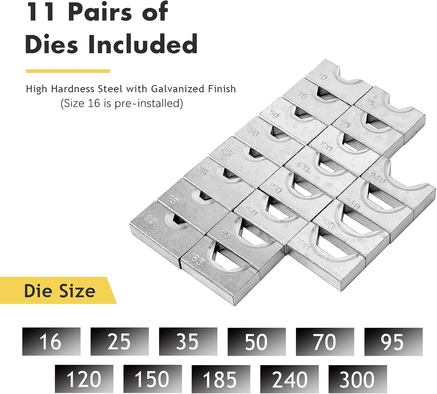 COSTWAY 16 Tons 11 Dies Hydraulic Crimper, 16-300mm² Electric Battery Cable Lug Terminal Hydraulic Crimper Tool with Carry Case
