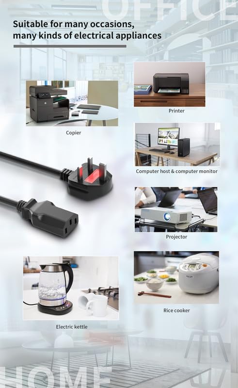 CYD 6FT IEC320 C13 to NEMA 5-15P Power Cord, 18AWG 10A/250V 3 Prong AC Cable, Universal Replacement Lead for PCs, Monitors, Printers, Projectors, TVs, Electronics, Black, Durable, Pack of 3